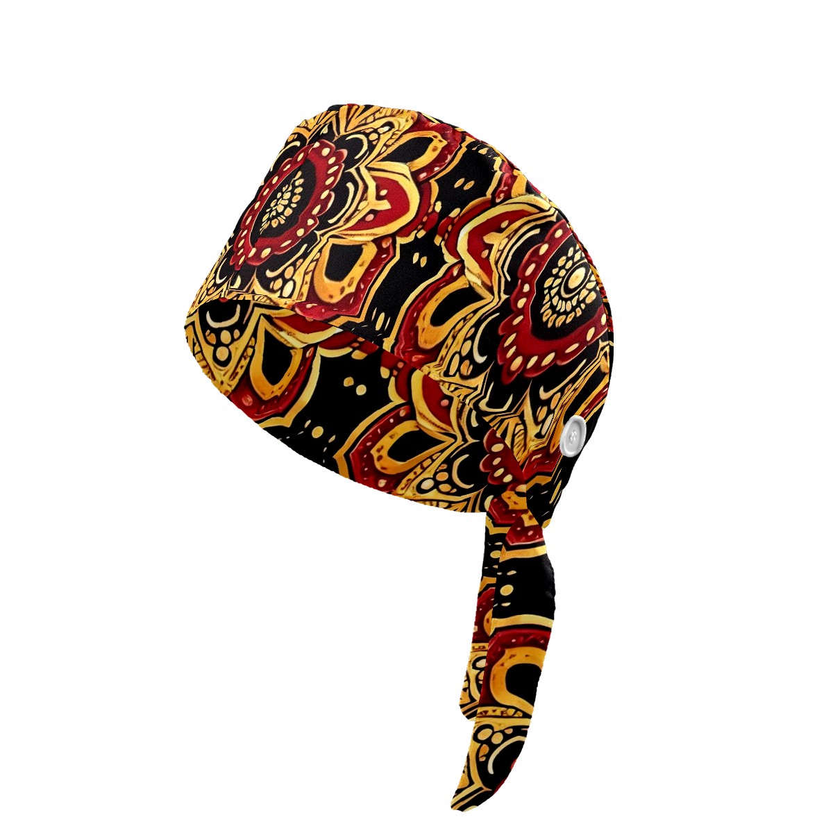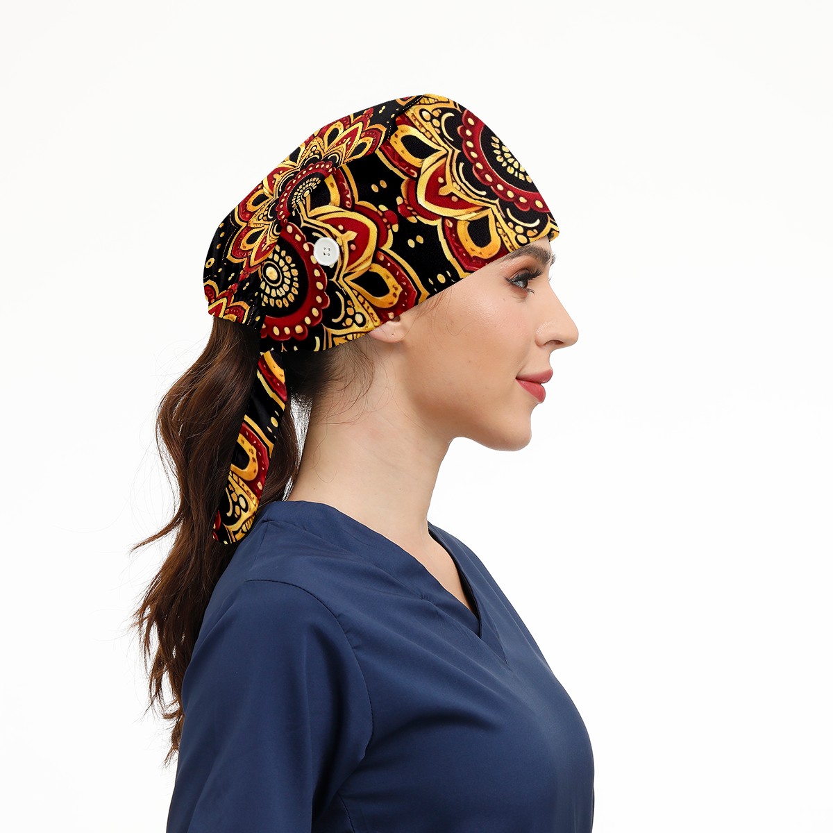 Working Caps with Button & Sweatband Satin Lined Cotton Adjustable Nurse Hats Elastic Band Scrub Cap Surgeon Hat Abstract Mandala