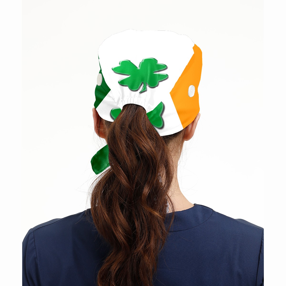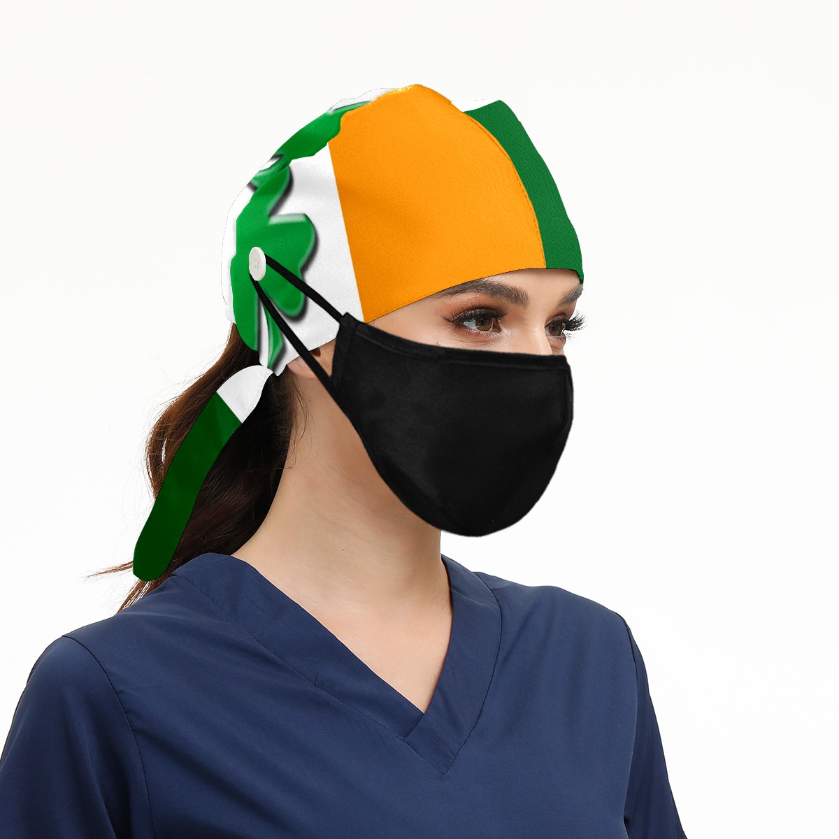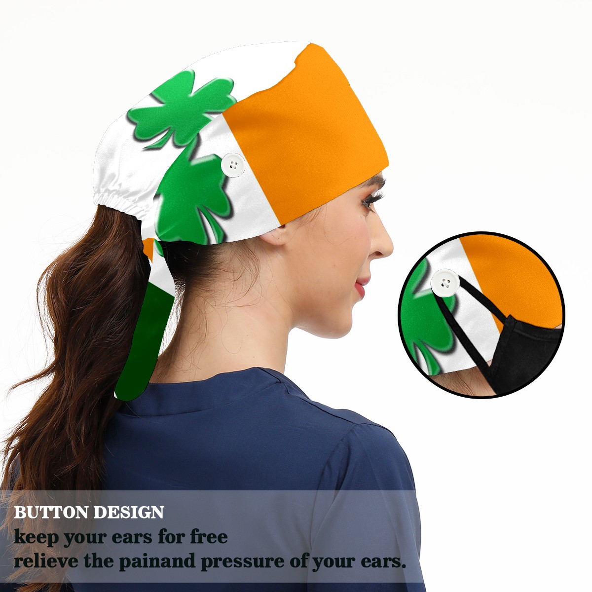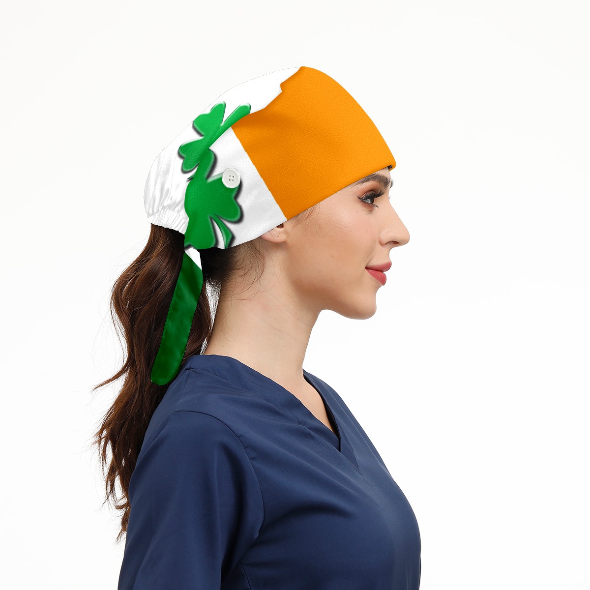 Working Caps with Button & Sweatband Satin Lined Cotton Adjustable Nurse Hats Elastic Band Scrub Cap Surgeon Hat Irish Flag