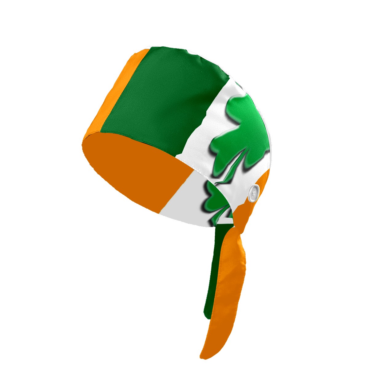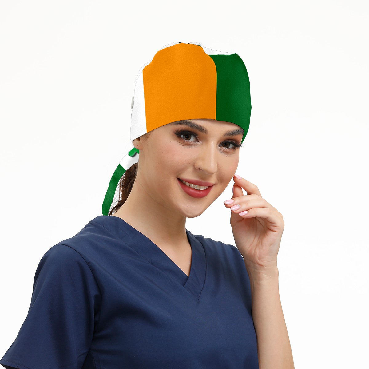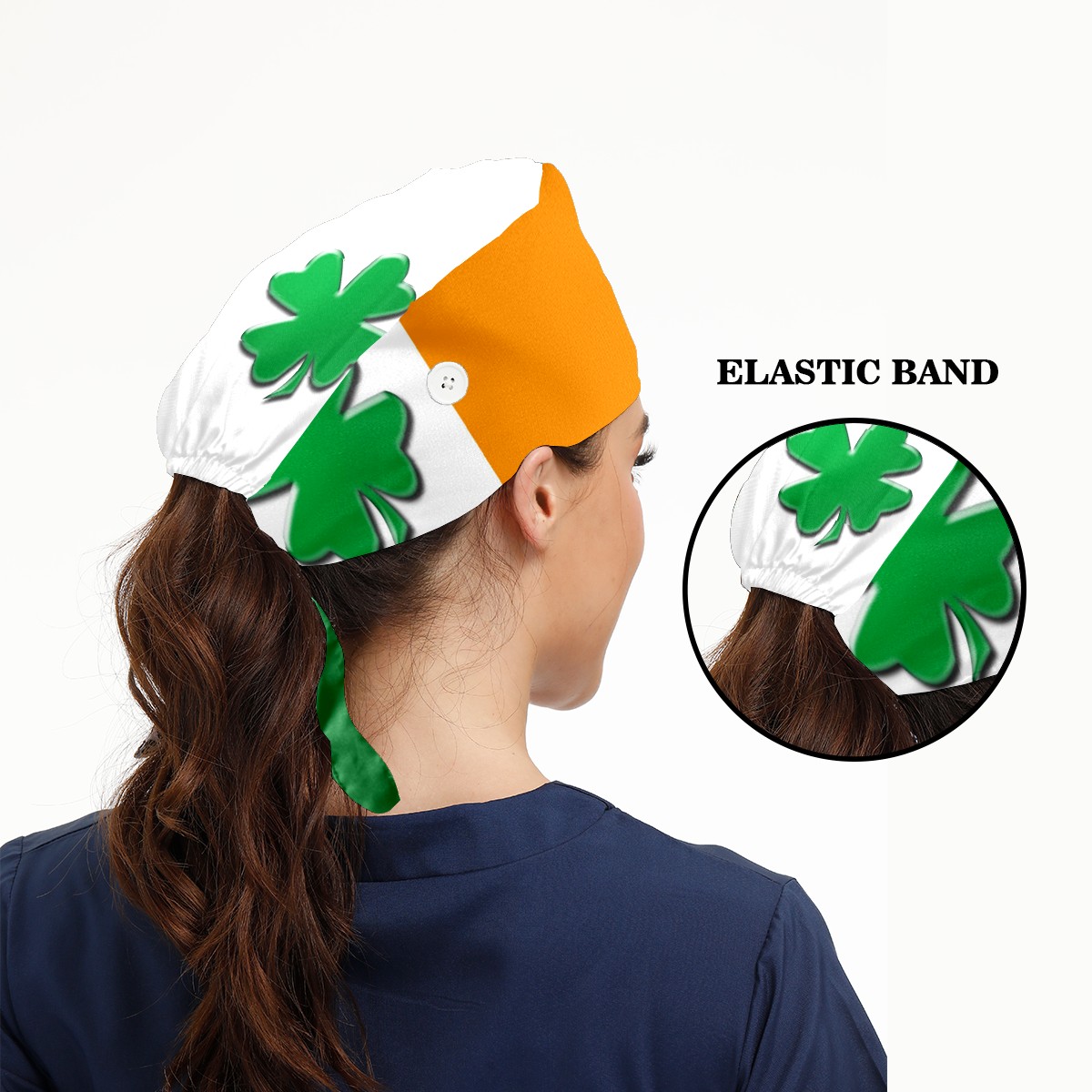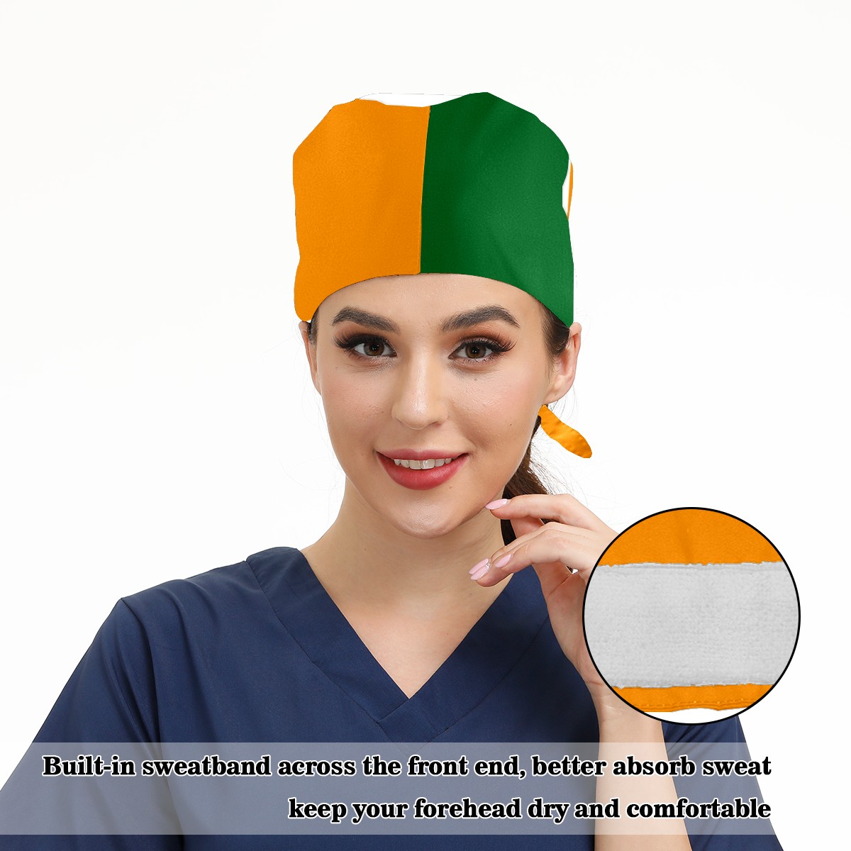 Working Caps with Button & Sweatband Satin Lined Cotton Adjustable Nurse Hats Elastic Band Scrub Cap Surgeon Hat Irish Flag