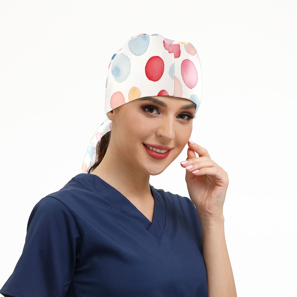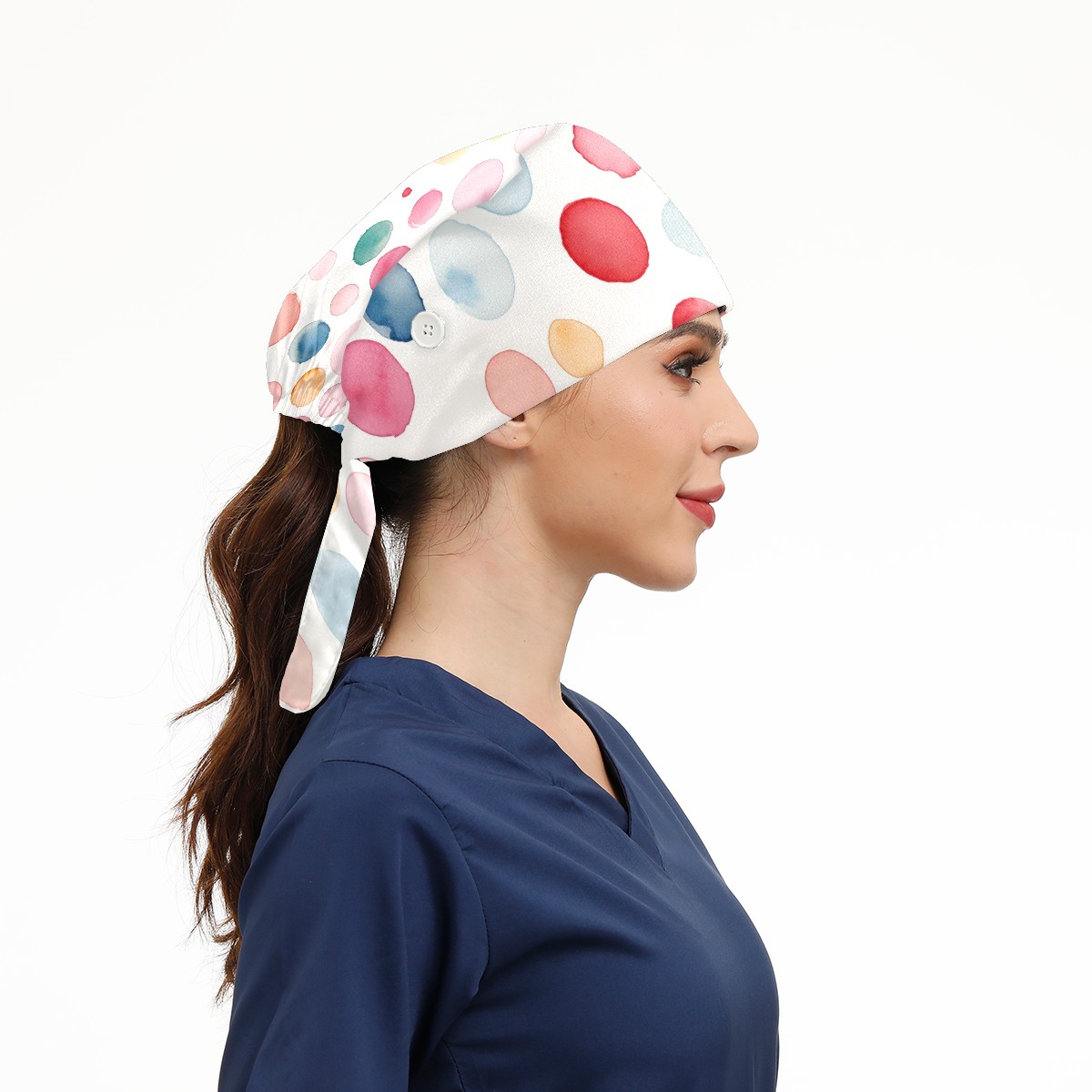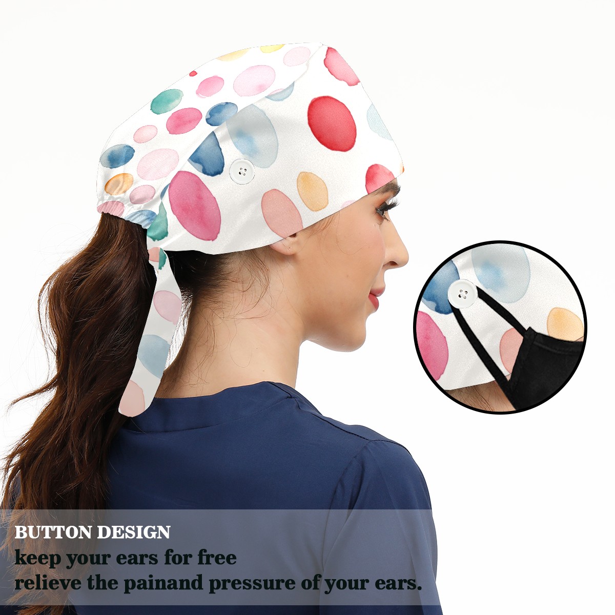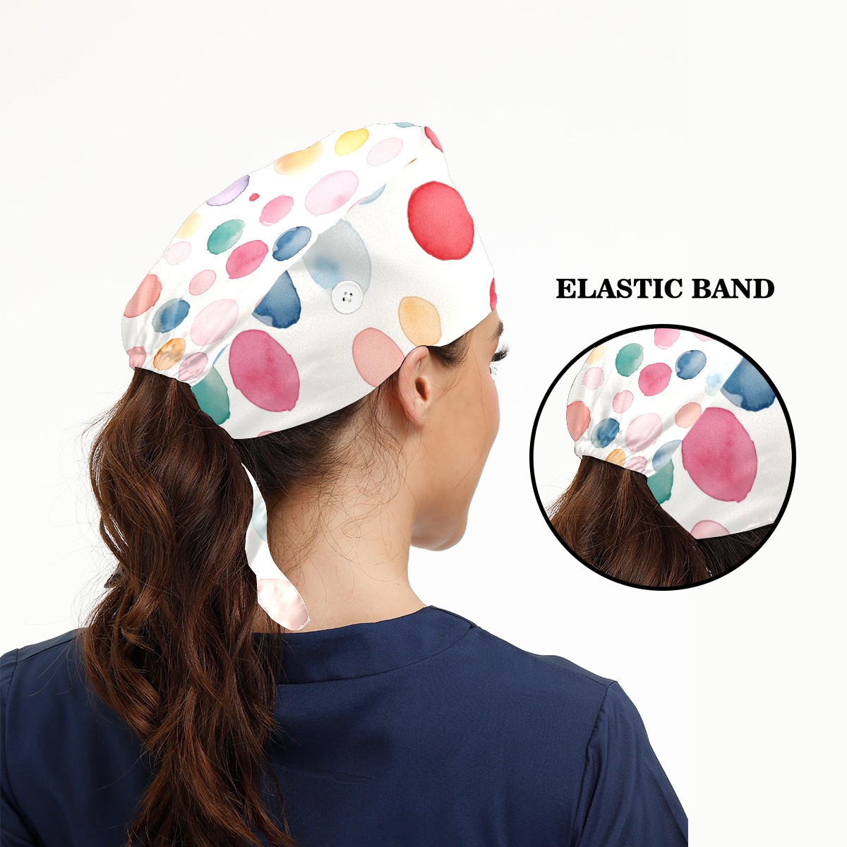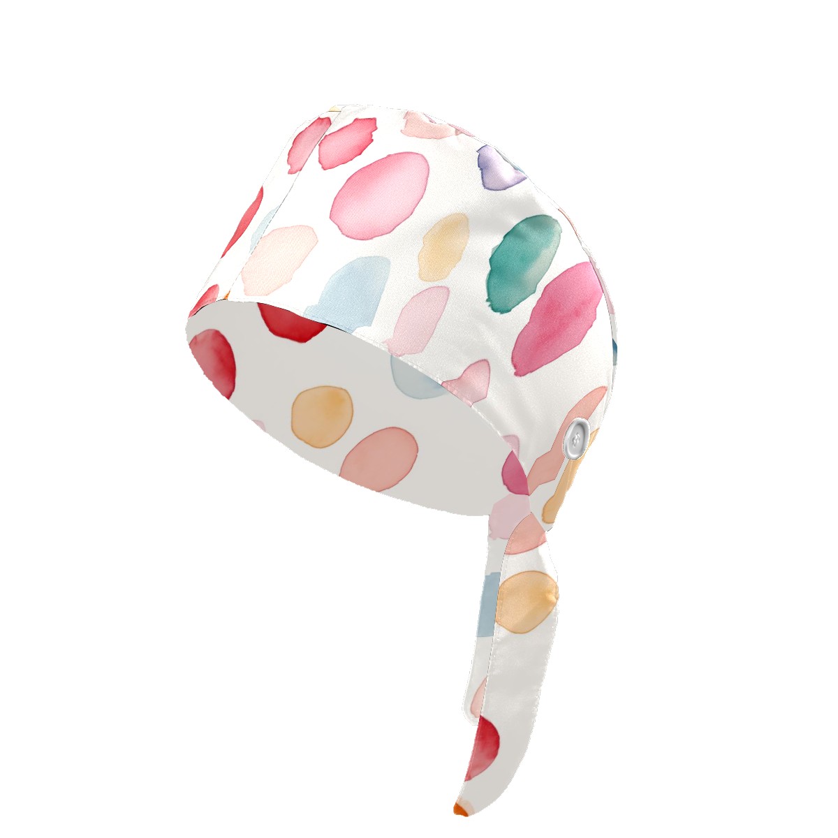 Working Caps with Button & Sweatband Satin Lined Cotton Adjustable Nurse Hats Elastic Band Scrub Cap Surgeon Hat Watercolor Dot