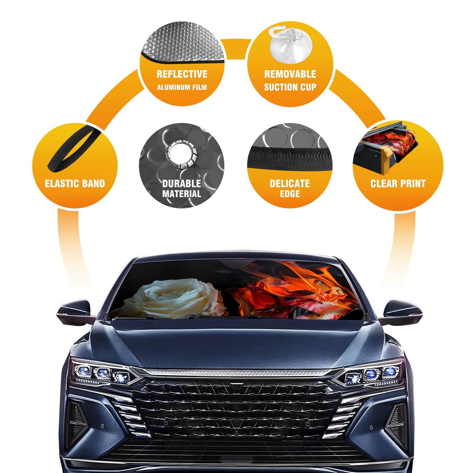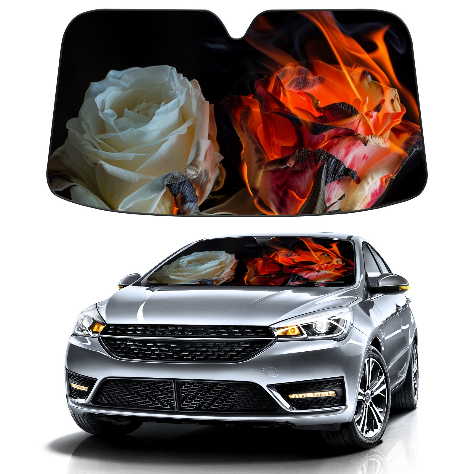 Car Windshield Sun Shade for Front Window Roses (5) Foldable Vehicle Windshield Car Sun Visor Covers Automotive Window Protector Car Privacy Sun Blocker