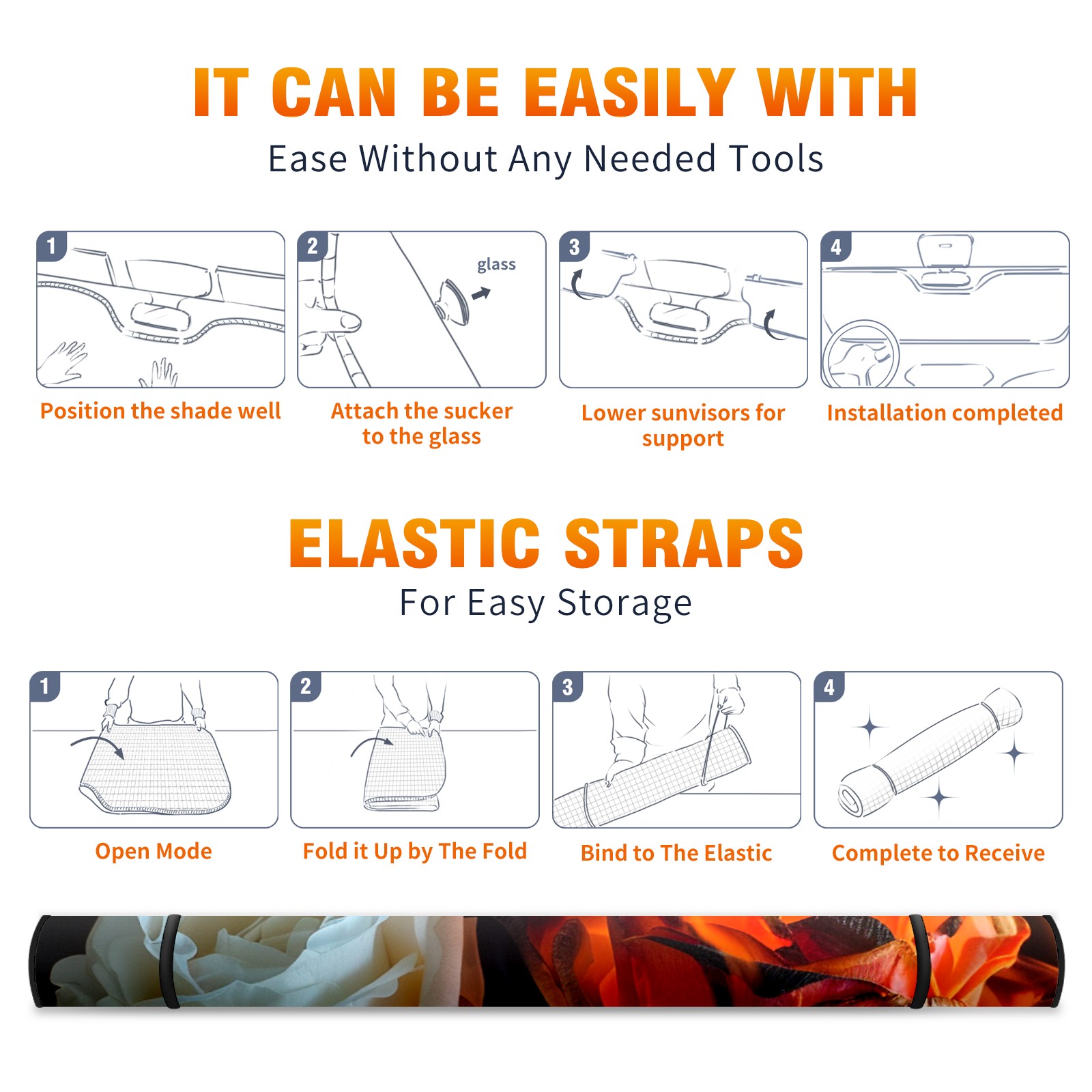 • </b>ZXIVGOQFR Foldable Premium Car Windshield Sunshade is your great solution to reduce your car’s interior temperature dramatically! This is definitely a must-have item for your summer travel! </b> <br> </b>Size: 63"L x 33.5"W </b> <br> </b>Blocking Uv Rays & Heat Insulation</b><br> Our vehicle sunshade provides effective UV, sun, and summer heat protection .Maintains dashboards by preventing fading and cracking <br> </b>Easy-To-Store Folding Design Makes Storage Convenient </b><br> ZXIVGOQFR car sunshades come with removable suction cups and elastic bands that you can install easily and quickly, and the removable suction cups will not leave any marks on your windows when removed. Within seconds, windshield visor can be installed and removed. When not in use,the front windshield can be easily and effectively placed on the door pocket or the dashboard, which is beautiful and does not take up space in the car.<br> <br> </b>PUT UP A 'PROTECTIVE UMBRELLA' FOR YOUR BELOVED CAR!</b>