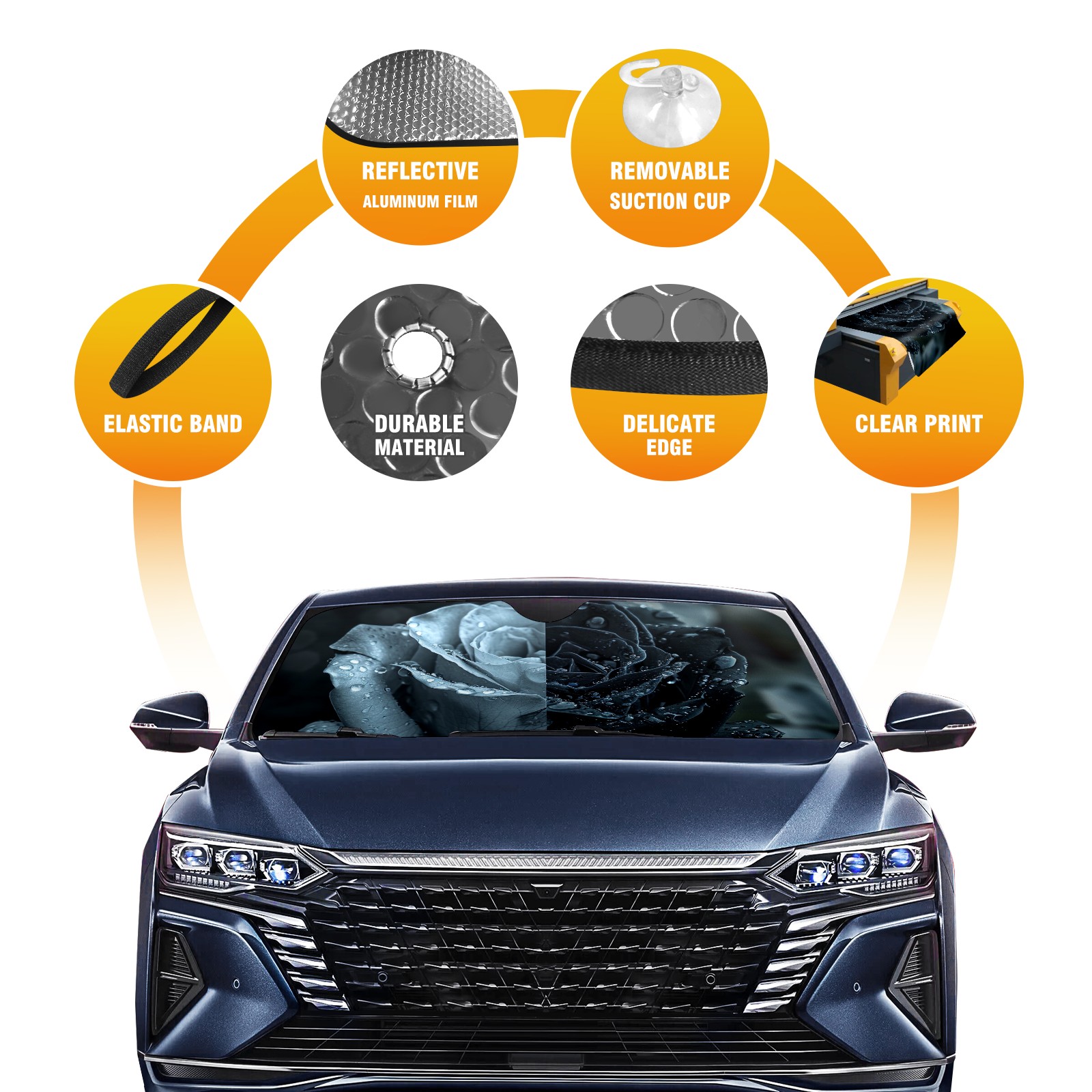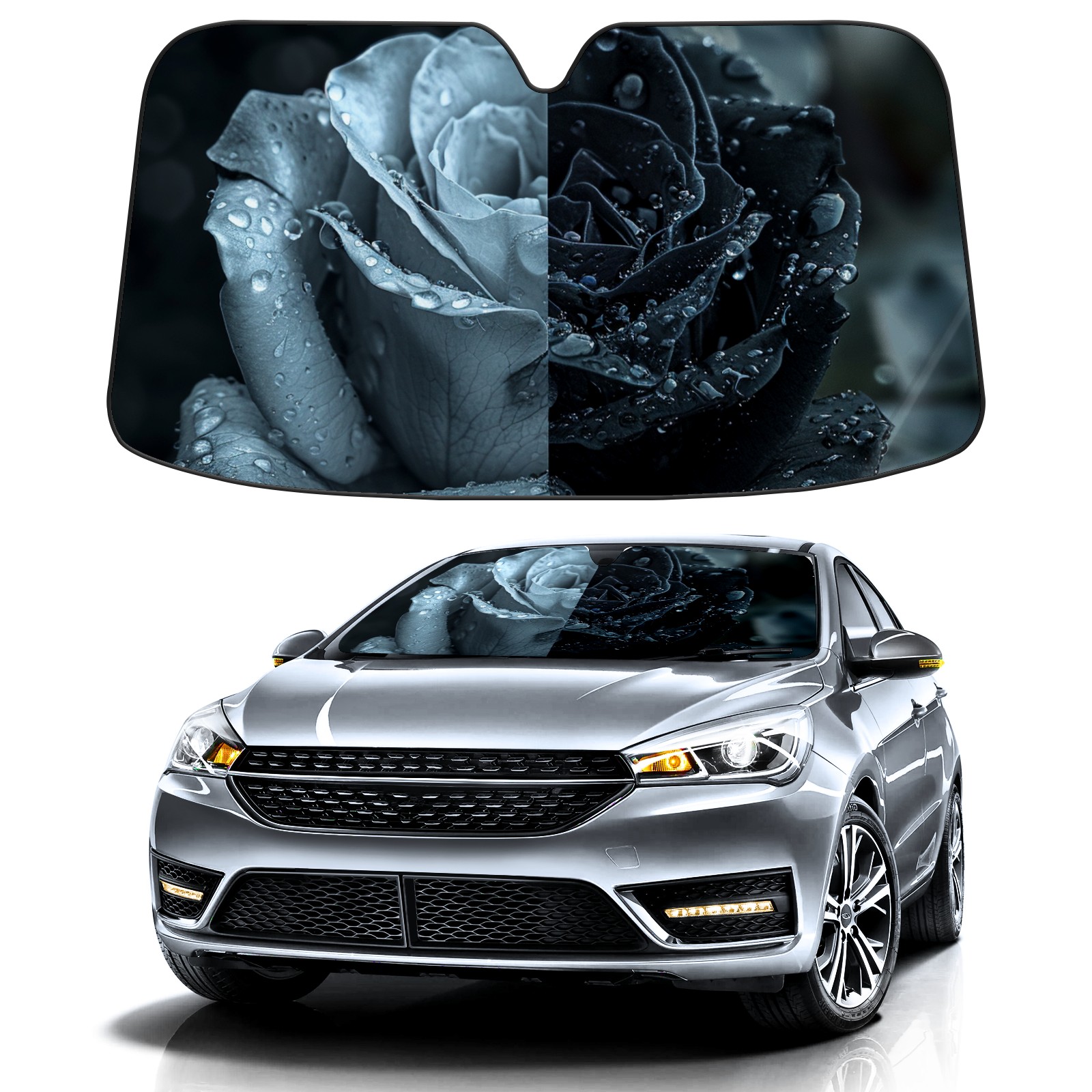 Car Windshield Sun Shade for Front Window Roses (4) Foldable Vehicle Windshield Car Sun Visor Covers Automotive Window Protector Car Privacy Sun Blocker