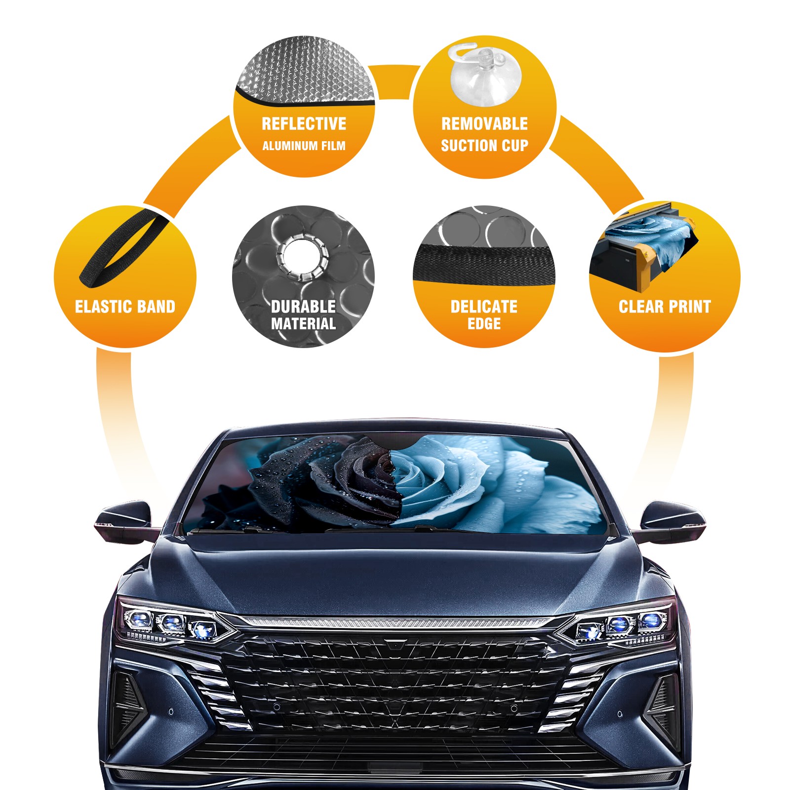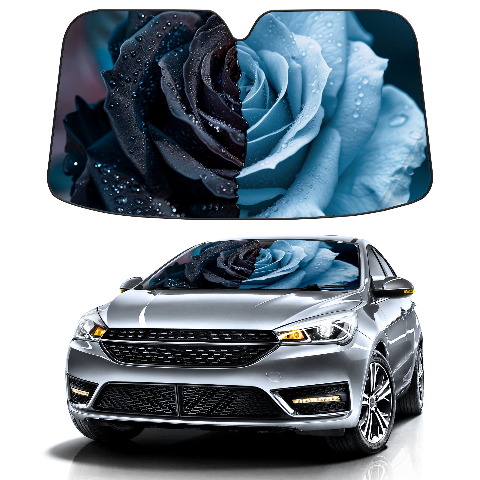 Car Windshield Sun Shade for Front Window Roses (2) Foldable Vehicle Windshield Car Sun Visor Covers Automotive Window Protector Car Privacy Sun Blocker