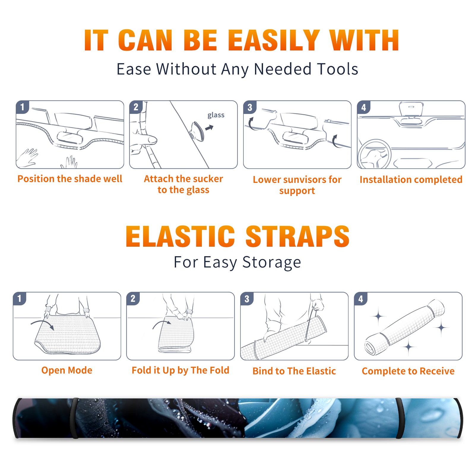 • </b>ZXIVGOQFR Foldable Premium Car Windshield Sunshade is your great solution to reduce your car’s interior temperature dramatically! This is definitely a must-have item for your summer travel! </b> <br> </b>Size: 63"L x 33.5"W </b> <br> </b>Blocking Uv Rays & Heat Insulation</b><br> Our vehicle sunshade provides effective UV, sun, and summer heat protection .Maintains dashboards by preventing fading and cracking <br> </b>Easy-To-Store Folding Design Makes Storage Convenient </b><br> ZXIVGOQFR car sunshades come with removable suction cups and elastic bands that you can install easily and quickly, and the removable suction cups will not leave any marks on your windows when removed. Within seconds, windshield visor can be installed and removed. When not in use,the front windshield can be easily and effectively placed on the door pocket or the dashboard, which is beautiful and does not take up space in the car.<br> <br> </b>PUT UP A 'PROTECTIVE UMBRELLA' FOR YOUR BELOVED CAR!</b>
