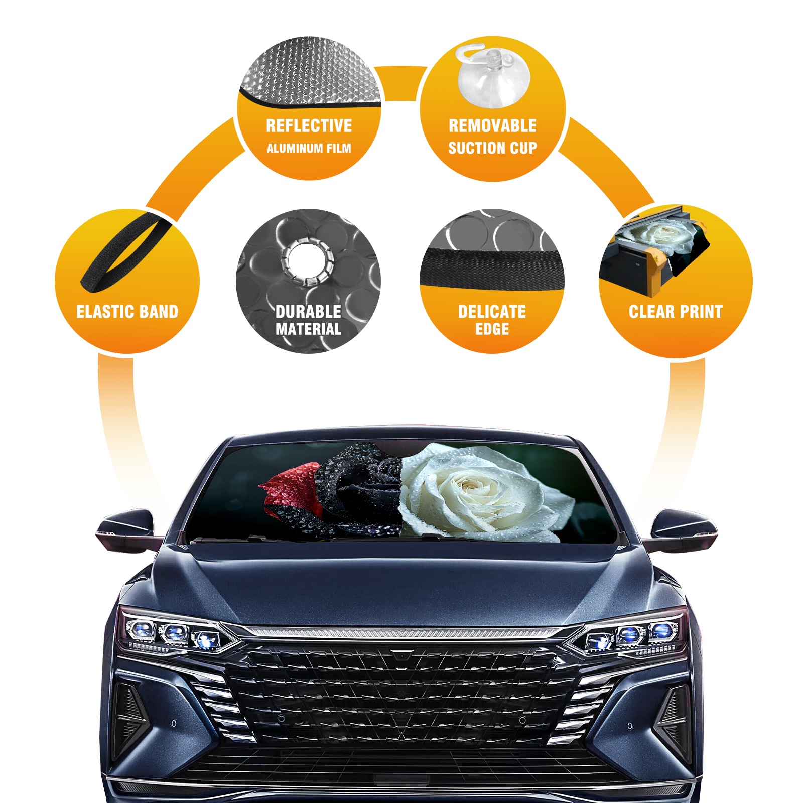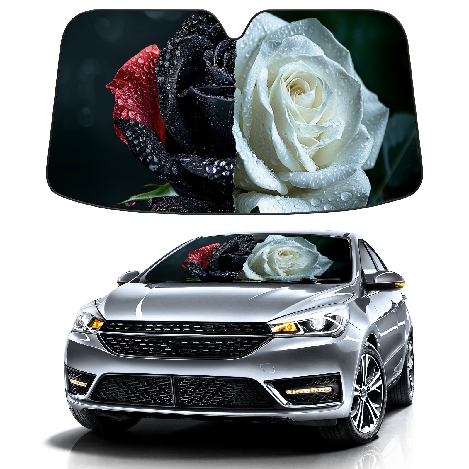 Car Windshield Sun Shade for Front Window Rose White (1) Foldable Vehicle Windshield Car Sun Visor Covers Automotive Window Protector Car Privacy Sun Blocker
