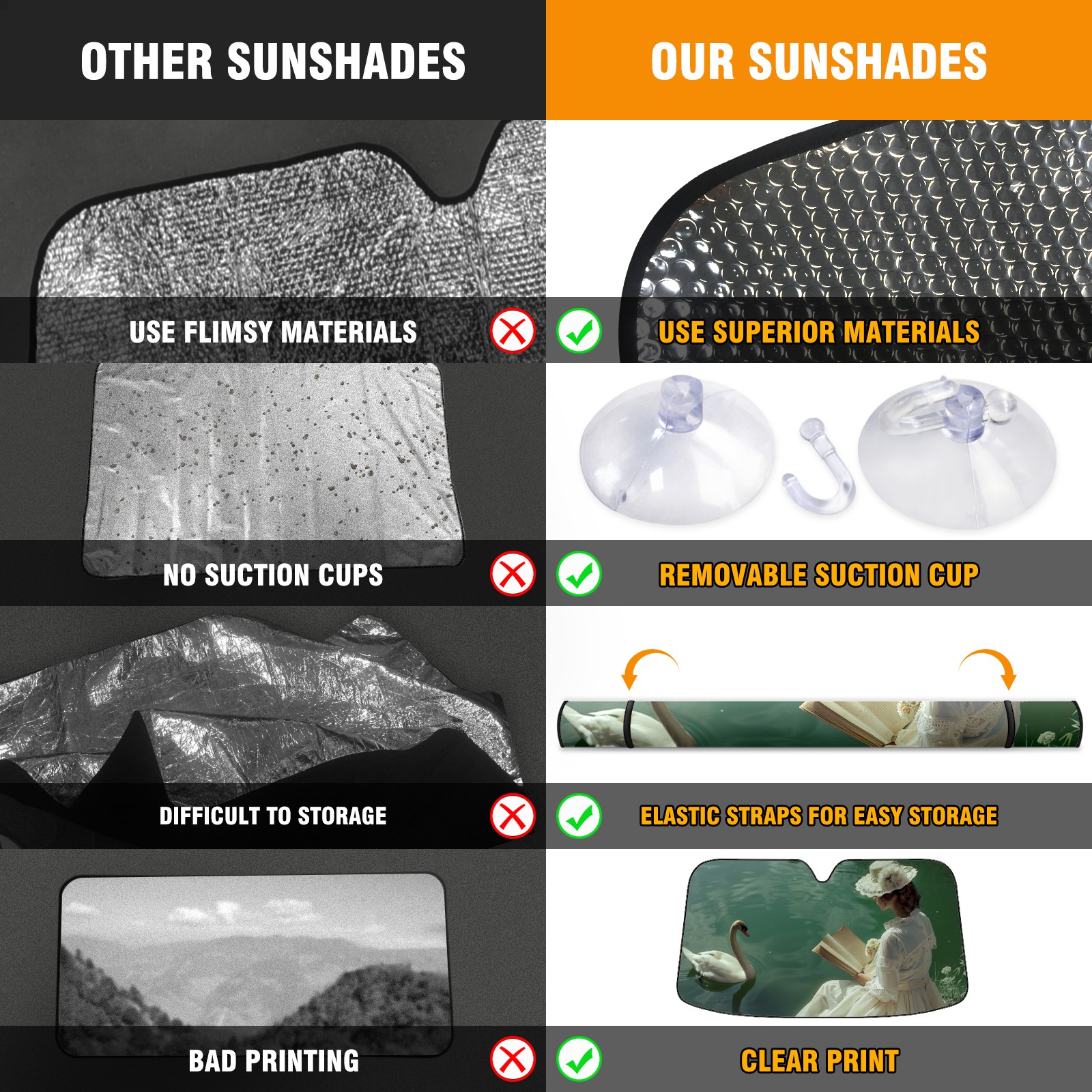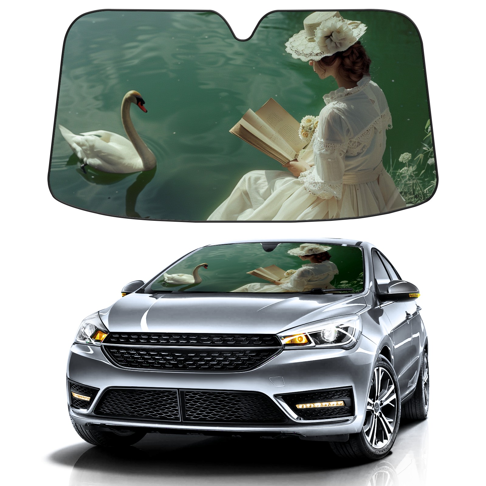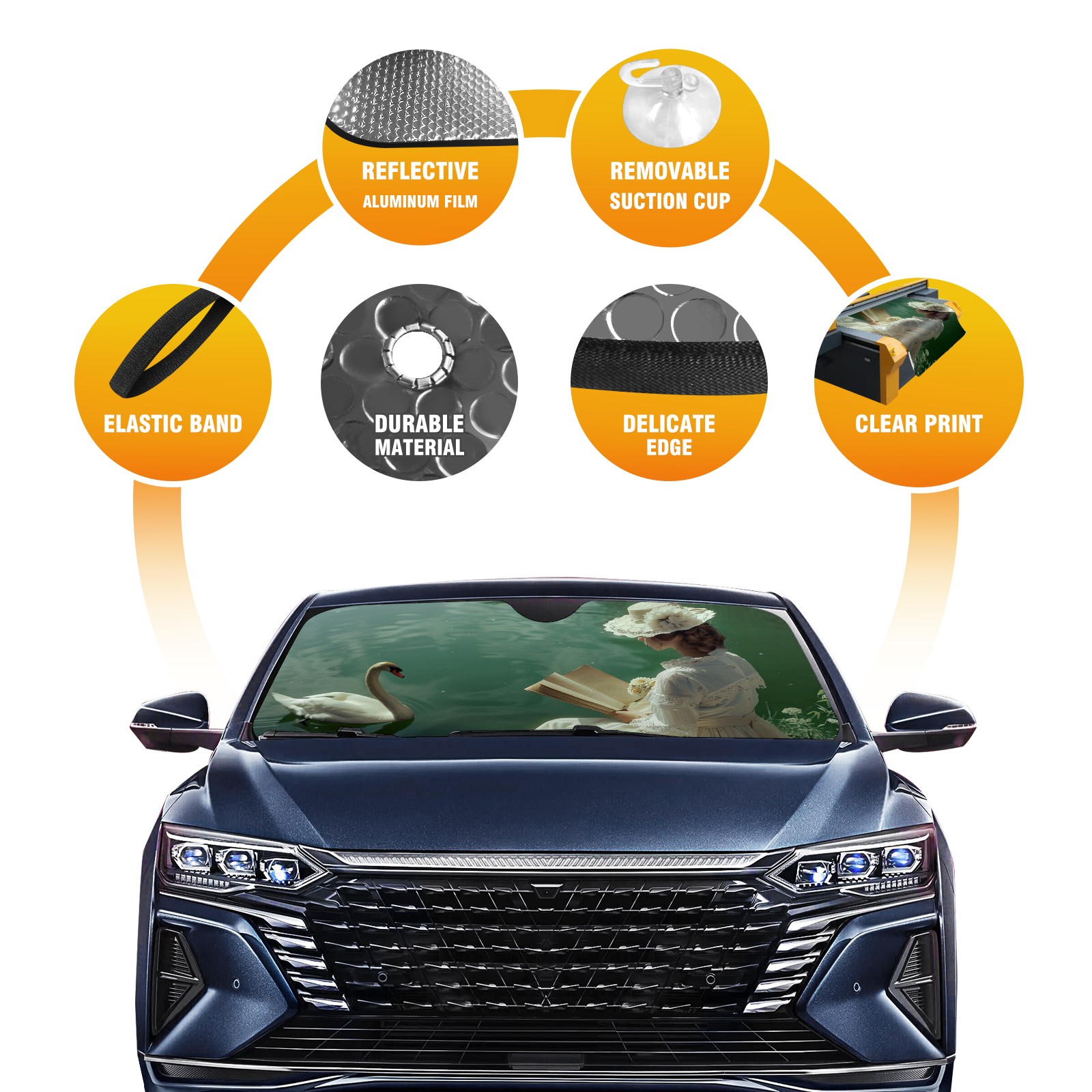 </b>ZXIVGOQFR Foldable Premium Car Windshield Sunshade is your great solution to reduce your car’s interior temperature dramatically! This is definitely a must-have item for your summer travel! </b> <br> </b>Size: 63"L x 33.5"W </b> <br> </b>Blocking Uv Rays & Heat Insulation</b><br> Our vehicle sunshade provides effective UV, sun, and summer heat protection .Maintains dashboards by preventing fading and cracking <br> </b>Easy-To-Store Folding Design Makes Storage Convenient </b><br> ZXIVGOQFR car sunshades come with removable suction cups and elastic bands that you can install easily and quickly, and the removable suction cups will not leave any marks on your windows when removed. Within seconds, windshield visor can be installed and removed. When not in use,the front windshield can be easily and effectively placed on the door pocket or the dashboard, which is beautiful and does not take up space in the car.<br> <br> </b>PUT UP A 'PROTECTIVE UMBRELLA' FOR YOUR BELOVED CAR!</b>