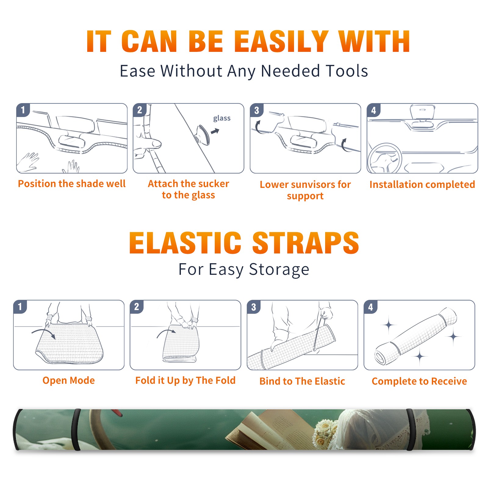 • </b>ZXIVGOQFR Foldable Premium Car Windshield Sunshade is your great solution to reduce your car’s interior temperature dramatically! This is definitely a must-have item for your summer travel! </b> <br> </b>Size: 63"L x 33.5"W </b> <br> </b>Blocking Uv Rays & Heat Insulation</b><br> Our vehicle sunshade provides effective UV, sun, and summer heat protection .Maintains dashboards by preventing fading and cracking <br> </b>Easy-To-Store Folding Design Makes Storage Convenient </b><br> ZXIVGOQFR car sunshades come with removable suction cups and elastic bands that you can install easily and quickly, and the removable suction cups will not leave any marks on your windows when removed. Within seconds, windshield visor can be installed and removed. When not in use,the front windshield can be easily and effectively placed on the door pocket or the dashboard, which is beautiful and does not take up space in the car.<br> <br> </b>PUT UP A 'PROTECTIVE UMBRELLA' FOR YOUR BELOVED CAR!</b>