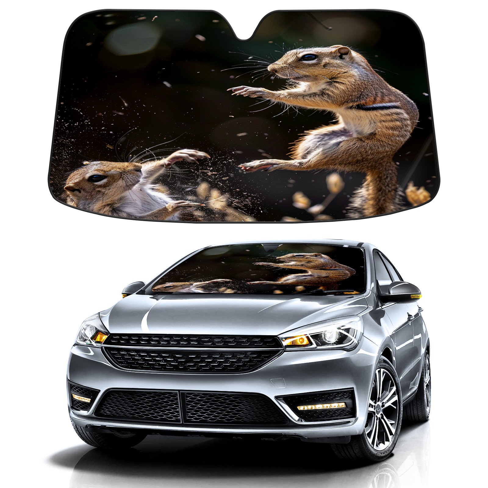 Car Windshield Sun Shade for Front Window Squirrels Fighting Animals (2) Foldable Vehicle Windshield Car Sun Visor Covers Automotive Window Protector Car Privacy Sun Blocker