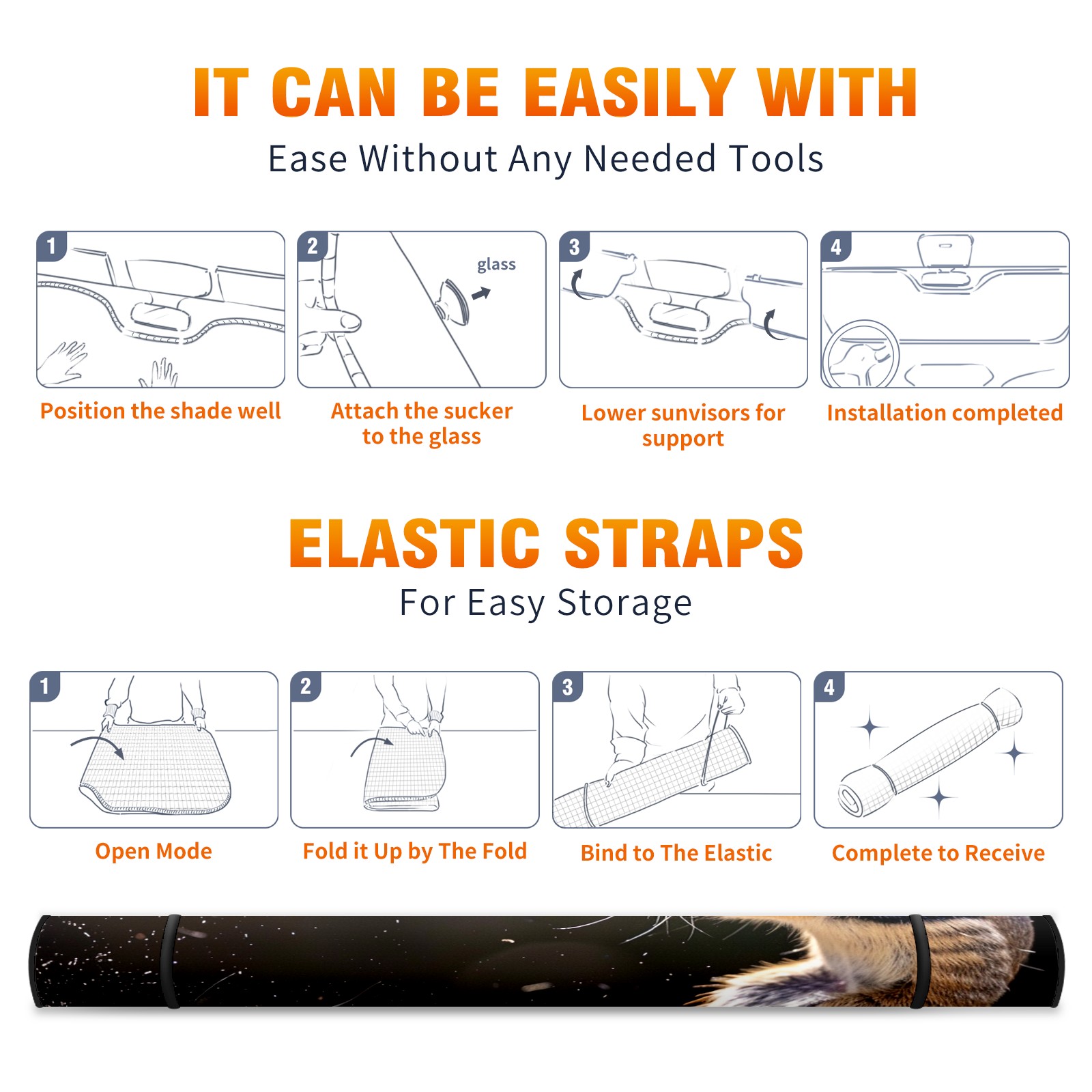• </b>ZXIVGOQFR Foldable Premium Car Windshield Sunshade is your great solution to reduce your car’s interior temperature dramatically! This is definitely a must-have item for your summer travel! </b> <br> </b>Size: 63"L x 33.5"W </b> <br> </b>Blocking Uv Rays & Heat Insulation</b><br> Our vehicle sunshade provides effective UV, sun, and summer heat protection .Maintains dashboards by preventing fading and cracking <br> </b>Easy-To-Store Folding Design Makes Storage Convenient </b><br> ZXIVGOQFR car sunshades come with removable suction cups and elastic bands that you can install easily and quickly, and the removable suction cups will not leave any marks on your windows when removed. Within seconds, windshield visor can be installed and removed. When not in use,the front windshield can be easily and effectively placed on the door pocket or the dashboard, which is beautiful and does not take up space in the car.<br> <br> </b>PUT UP A 'PROTECTIVE UMBRELLA' FOR YOUR BELOVED CAR!</b>