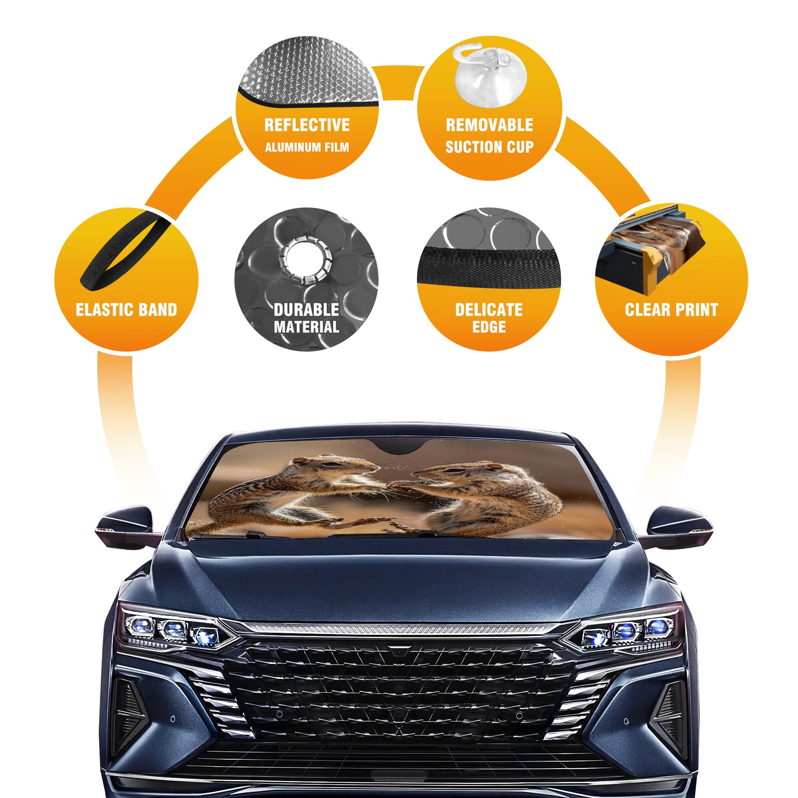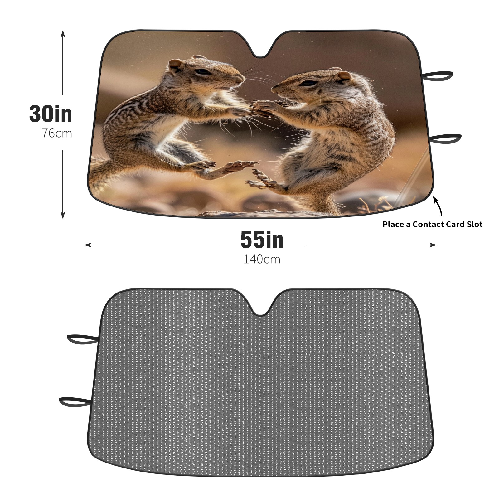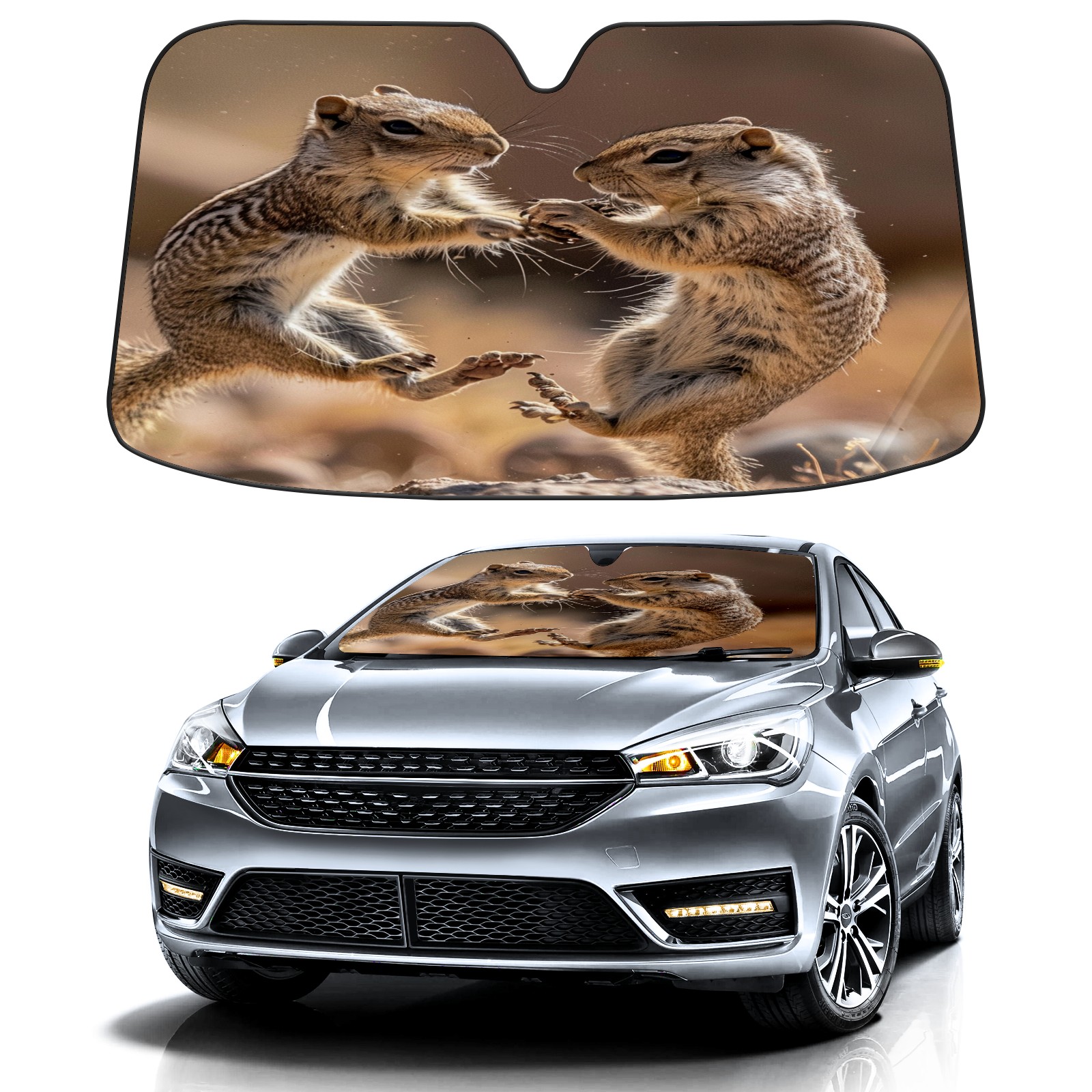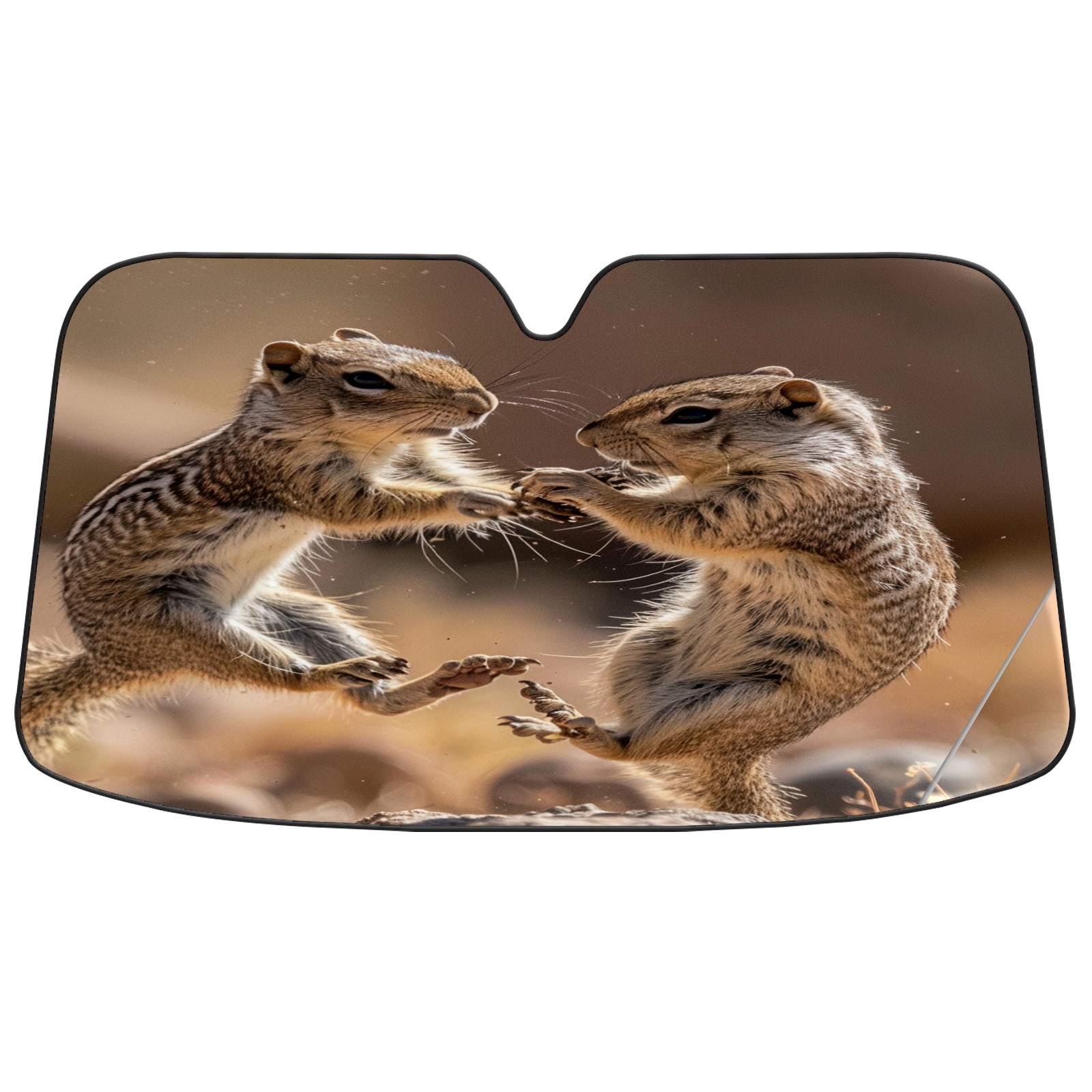 Car Windshield Sun Shade for Front Window Squirrels Fighting Animals (3) Foldable Vehicle Windshield Car Sun Visor Covers Automotive Window Protector Car Privacy Sun Blocker