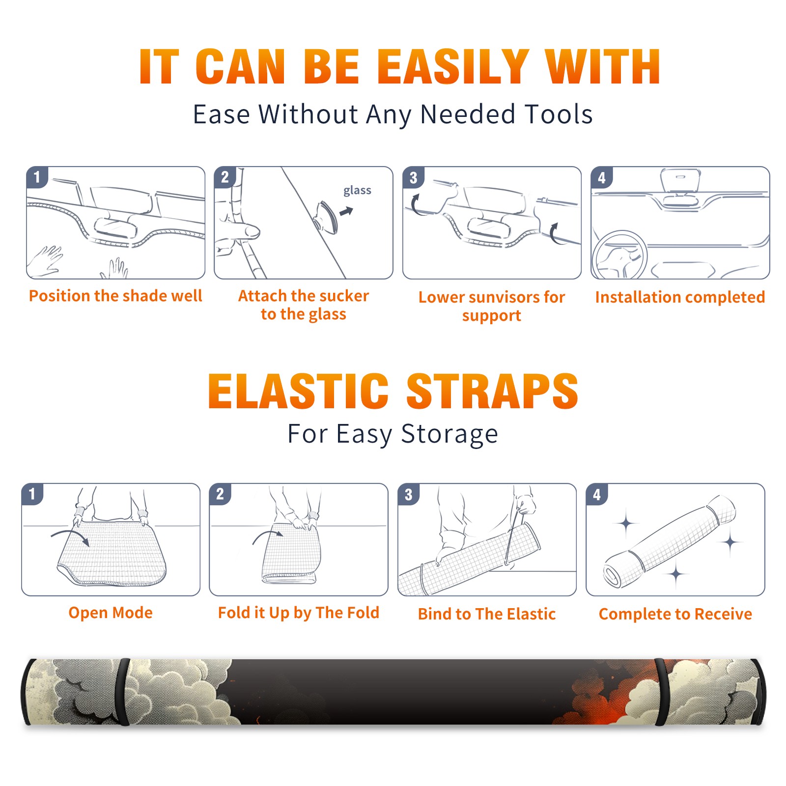 • </b>ZXIVGOQFR Foldable Premium Car Windshield Sunshade is your great solution to reduce your car’s interior temperature dramatically! This is definitely a must-have item for your summer travel! </b> <br> </b>Size: 63"L x 33.5"W </b> <br> </b>Blocking Uv Rays & Heat Insulation</b><br> Our vehicle sunshade provides effective UV, sun, and summer heat protection .Maintains dashboards by preventing fading and cracking <br> </b>Easy-To-Store Folding Design Makes Storage Convenient </b><br> ZXIVGOQFR car sunshades come with removable suction cups and elastic bands that you can install easily and quickly, and the removable suction cups will not leave any marks on your windows when removed. Within seconds, windshield visor can be installed and removed. When not in use,the front windshield can be easily and effectively placed on the door pocket or the dashboard, which is beautiful and does not take up space in the car.<br> <br> </b>PUT UP A 'PROTECTIVE UMBRELLA' FOR YOUR BELOVED CAR!</b>