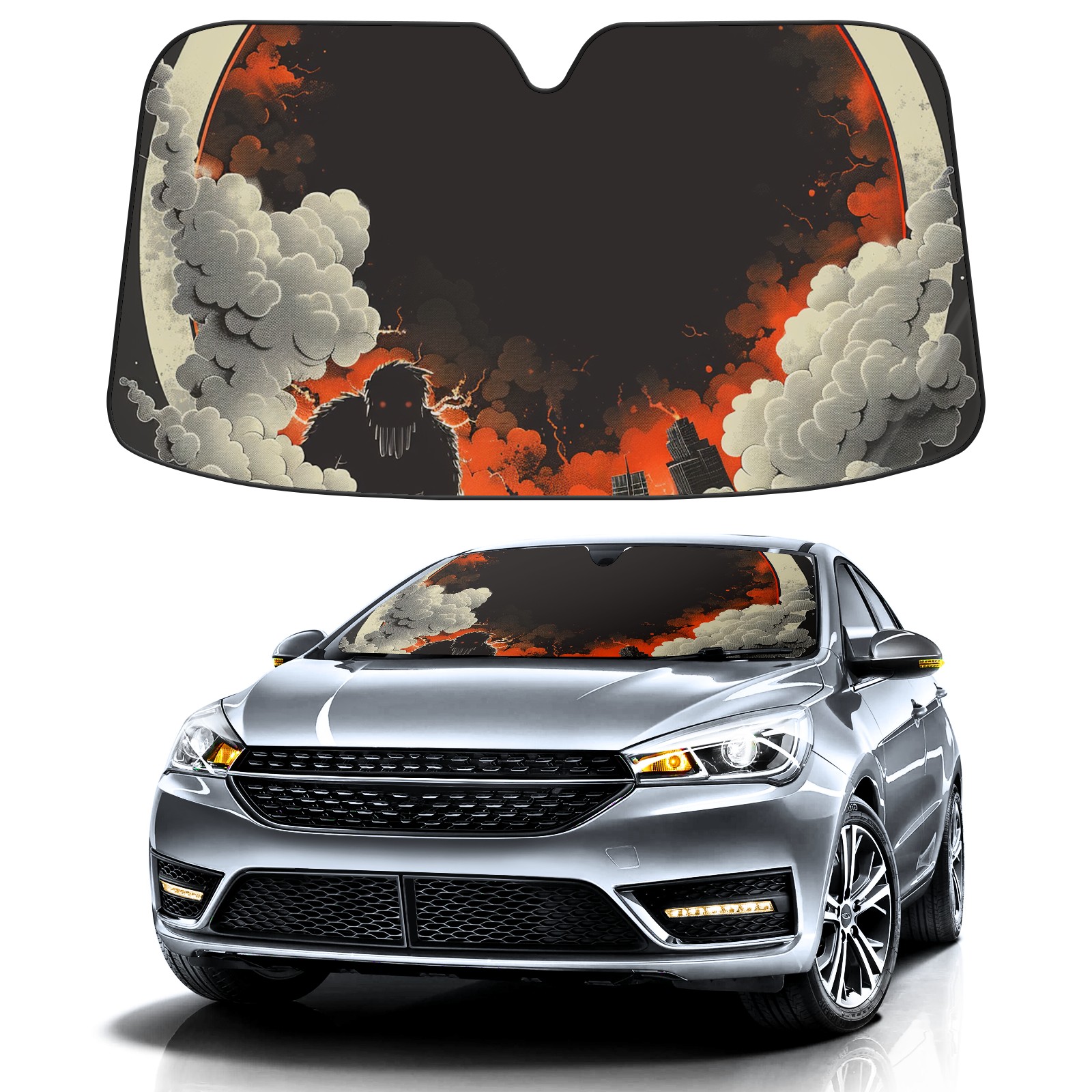 Car Windshield Sun Shade for Front Window Monster Sky (5) Foldable Vehicle Windshield Car Sun Visor Covers Automotive Window Protector Car Privacy Sun Blocker