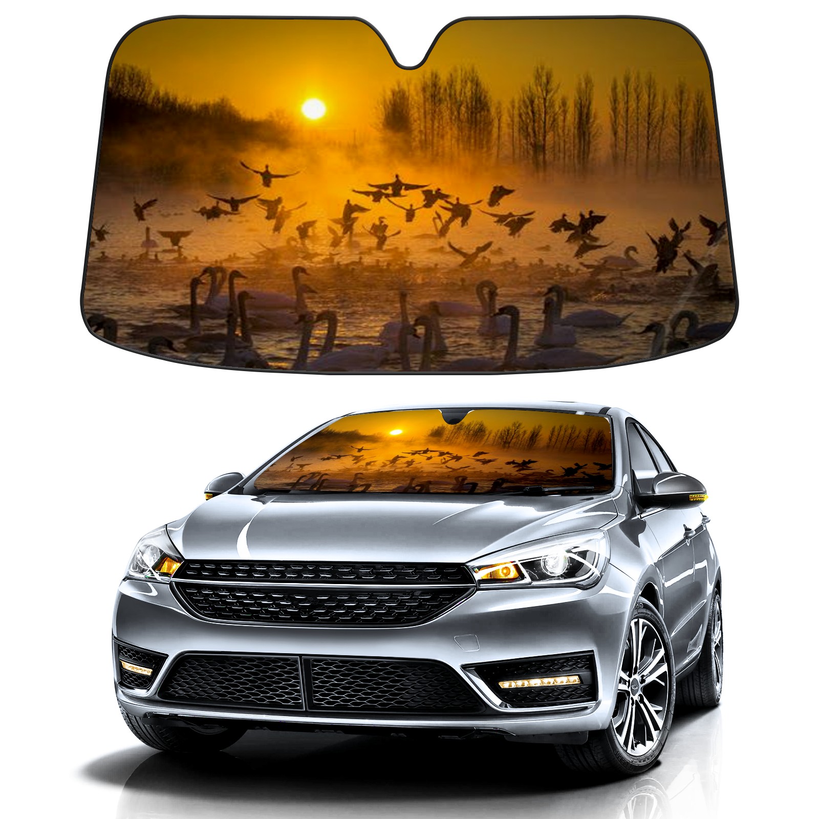 Car Windshield Sun Shade for Front Window Bird Sunset Foldable Vehicle Windshield Car Sun Visor Covers Automotive Window Protector Car Privacy Sun Blocker