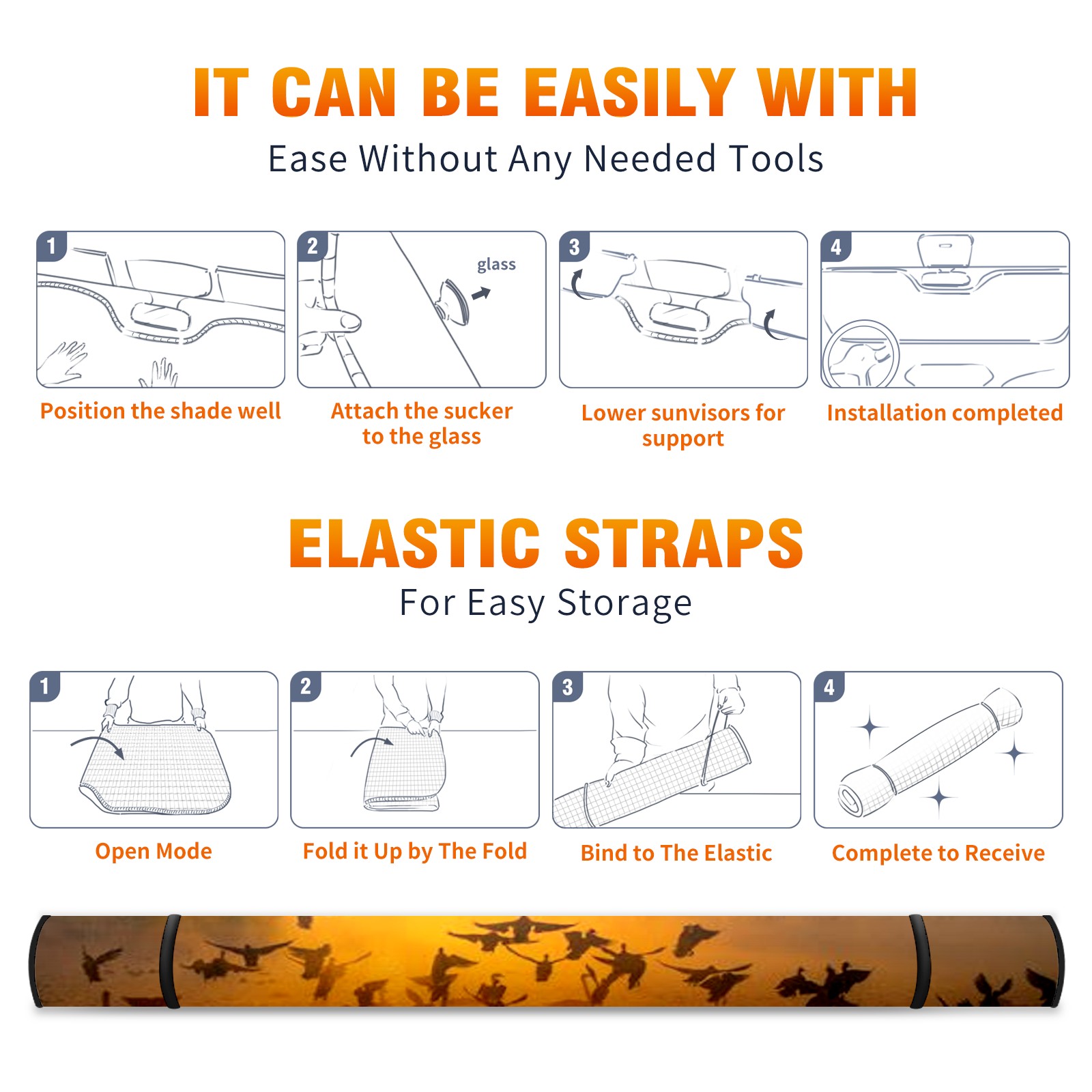 • </b>ZXIVGOQFR Foldable Premium Car Windshield Sunshade is your great solution to reduce your car’s interior temperature dramatically! This is definitely a must-have item for your summer travel! </b> <br> </b>Size: 63"L x 33.5"W </b> <br> </b>Blocking Uv Rays & Heat Insulation</b><br> Our vehicle sunshade provides effective UV, sun, and summer heat protection .Maintains dashboards by preventing fading and cracking <br> </b>Easy-To-Store Folding Design Makes Storage Convenient </b><br> ZXIVGOQFR car sunshades come with removable suction cups and elastic bands that you can install easily and quickly, and the removable suction cups will not leave any marks on your windows when removed. Within seconds, windshield visor can be installed and removed. When not in use,the front windshield can be easily and effectively placed on the door pocket or the dashboard, which is beautiful and does not take up space in the car.<br> <br> </b>PUT UP A 'PROTECTIVE UMBRELLA' FOR YOUR BELOVED CAR!</b>