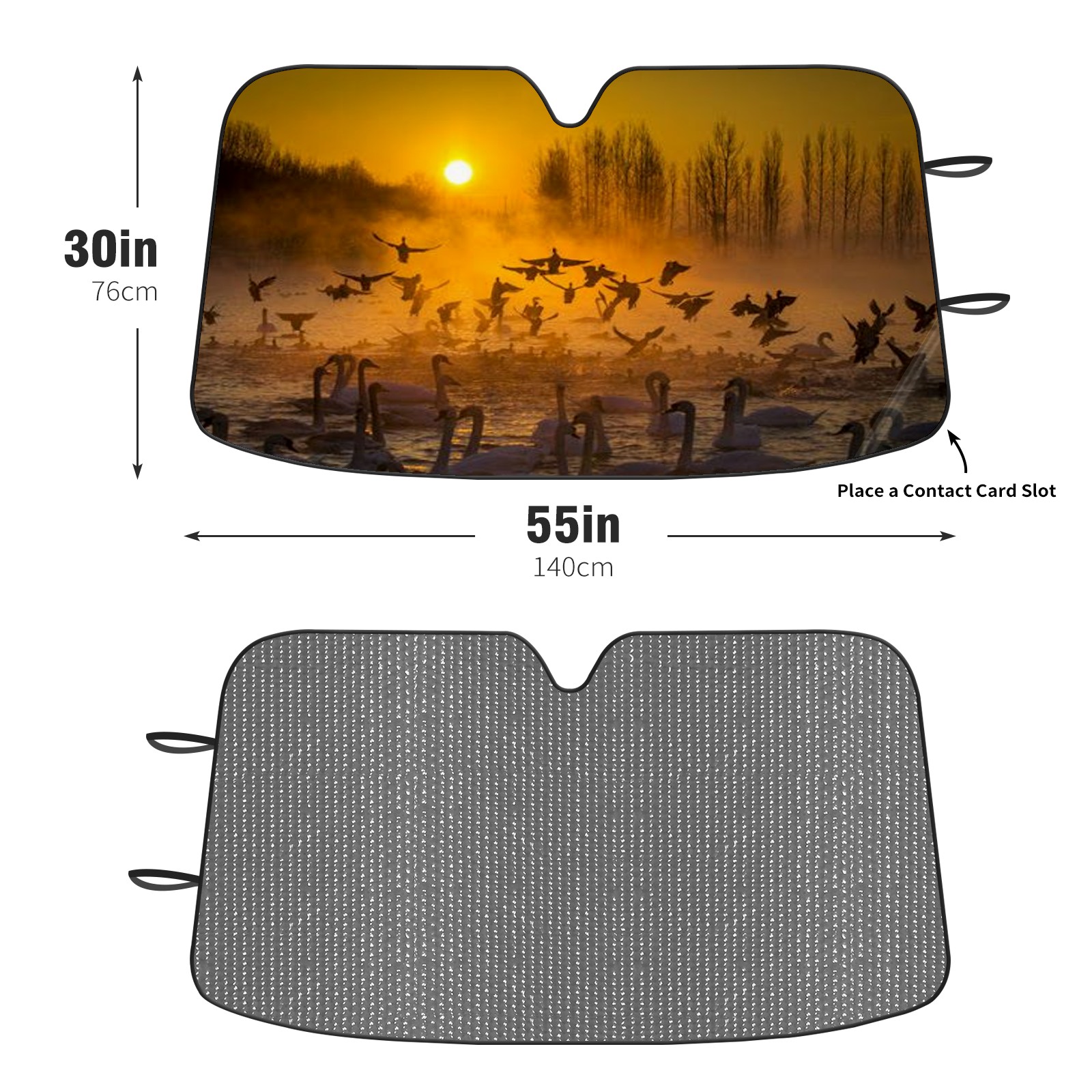 </b>ZXIVGOQFR Foldable Premium Car Windshield Sunshade is your great solution to reduce your car’s interior temperature dramatically! This is definitely a must-have item for your summer travel! </b> <br> </b>Size: 63"L x 33.5"W </b> <br> </b>Blocking Uv Rays & Heat Insulation</b><br> Our vehicle sunshade provides effective UV, sun, and summer heat protection .Maintains dashboards by preventing fading and cracking <br> </b>Easy-To-Store Folding Design Makes Storage Convenient </b><br> ZXIVGOQFR car sunshades come with removable suction cups and elastic bands that you can install easily and quickly, and the removable suction cups will not leave any marks on your windows when removed. Within seconds, windshield visor can be installed and removed. When not in use,the front windshield can be easily and effectively placed on the door pocket or the dashboard, which is beautiful and does not take up space in the car.<br> <br> </b>PUT UP A 'PROTECTIVE UMBRELLA' FOR YOUR BELOVED CAR!</b>