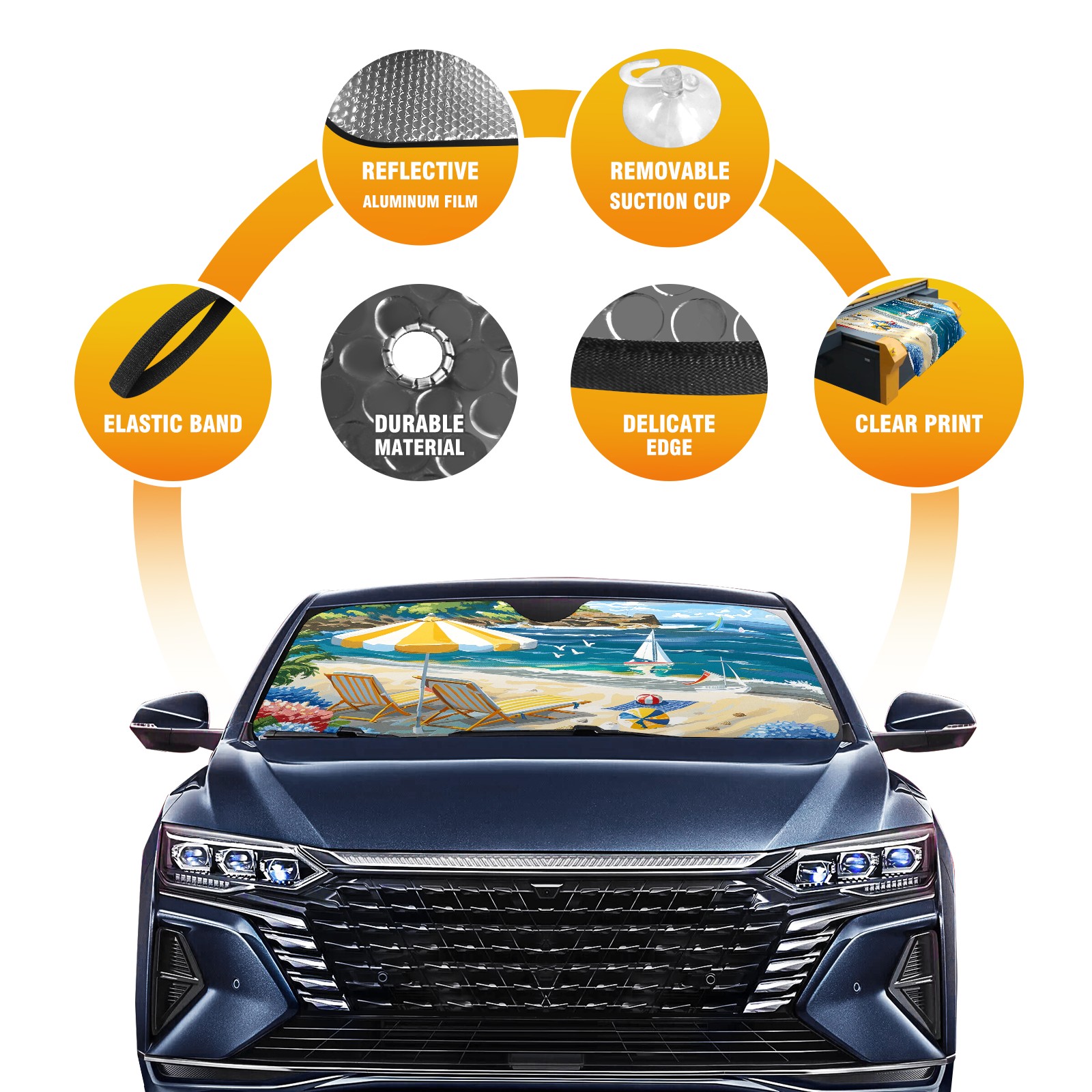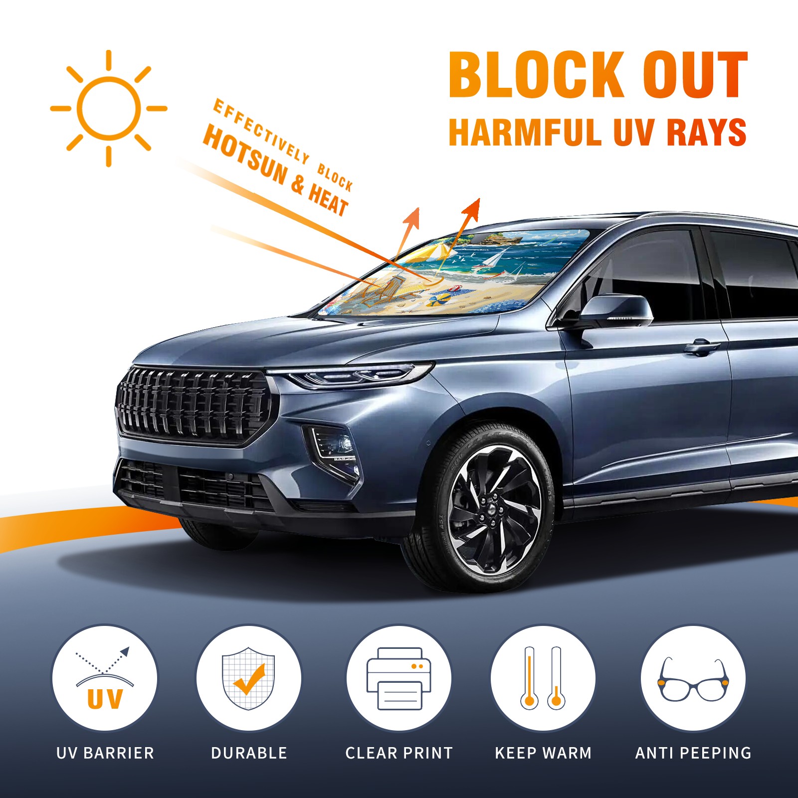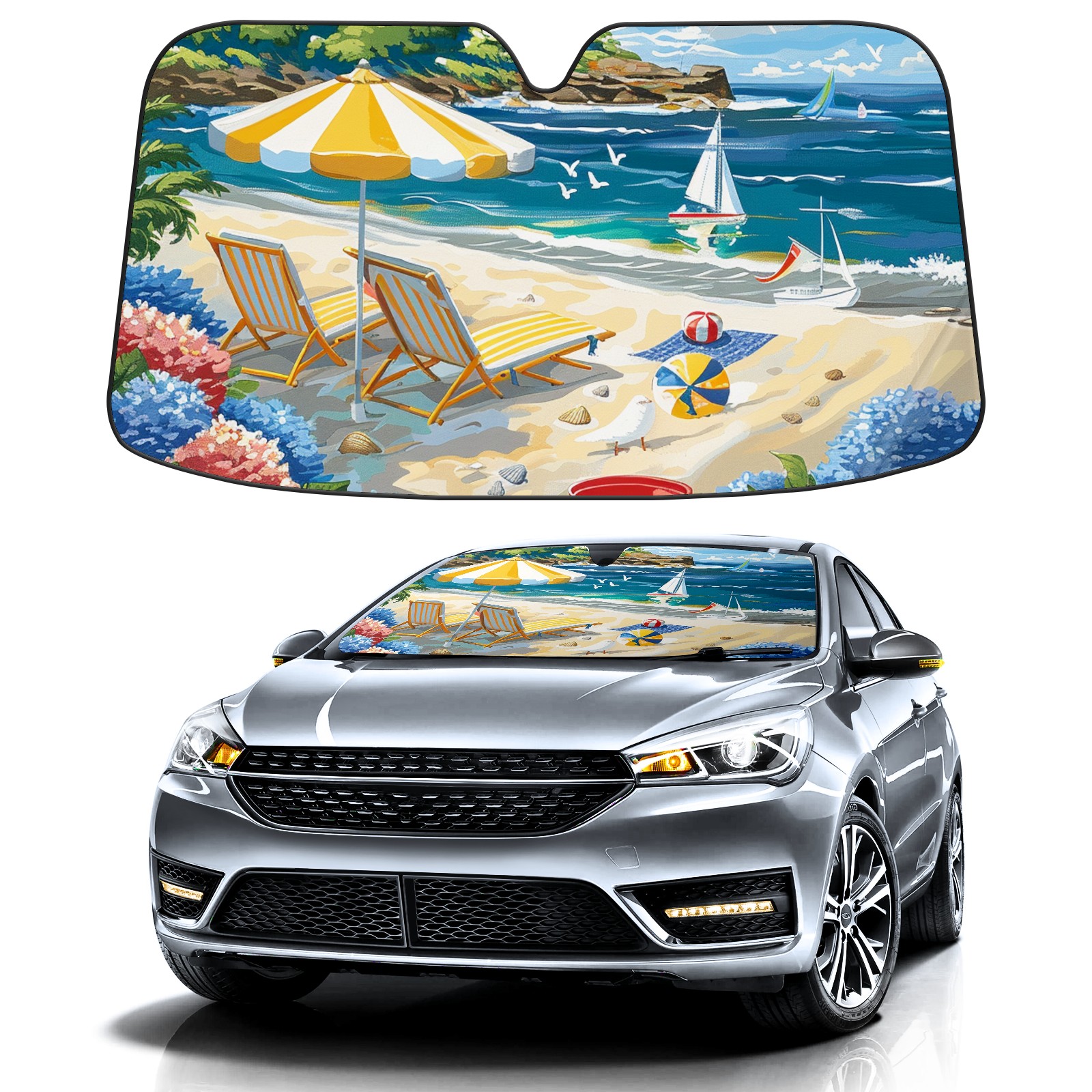 Car Windshield Sun Shade for Front Window Beach Vacation Foldable Vehicle Windshield Car Sun Visor Covers Automotive Window Protector Car Privacy Sun Blocker