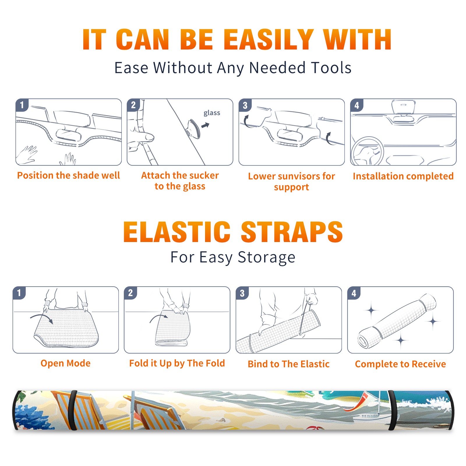 • </b>ZXIVGOQFR Foldable Premium Car Windshield Sunshade is your great solution to reduce your car’s interior temperature dramatically! This is definitely a must-have item for your summer travel! </b> <br> </b>Size: 63"L x 33.5"W </b> <br> </b>Blocking Uv Rays & Heat Insulation</b><br> Our vehicle sunshade provides effective UV, sun, and summer heat protection .Maintains dashboards by preventing fading and cracking <br> </b>Easy-To-Store Folding Design Makes Storage Convenient </b><br> ZXIVGOQFR car sunshades come with removable suction cups and elastic bands that you can install easily and quickly, and the removable suction cups will not leave any marks on your windows when removed. Within seconds, windshield visor can be installed and removed. When not in use,the front windshield can be easily and effectively placed on the door pocket or the dashboard, which is beautiful and does not take up space in the car.<br> <br> </b>PUT UP A 'PROTECTIVE UMBRELLA' FOR YOUR BELOVED CAR!</b>