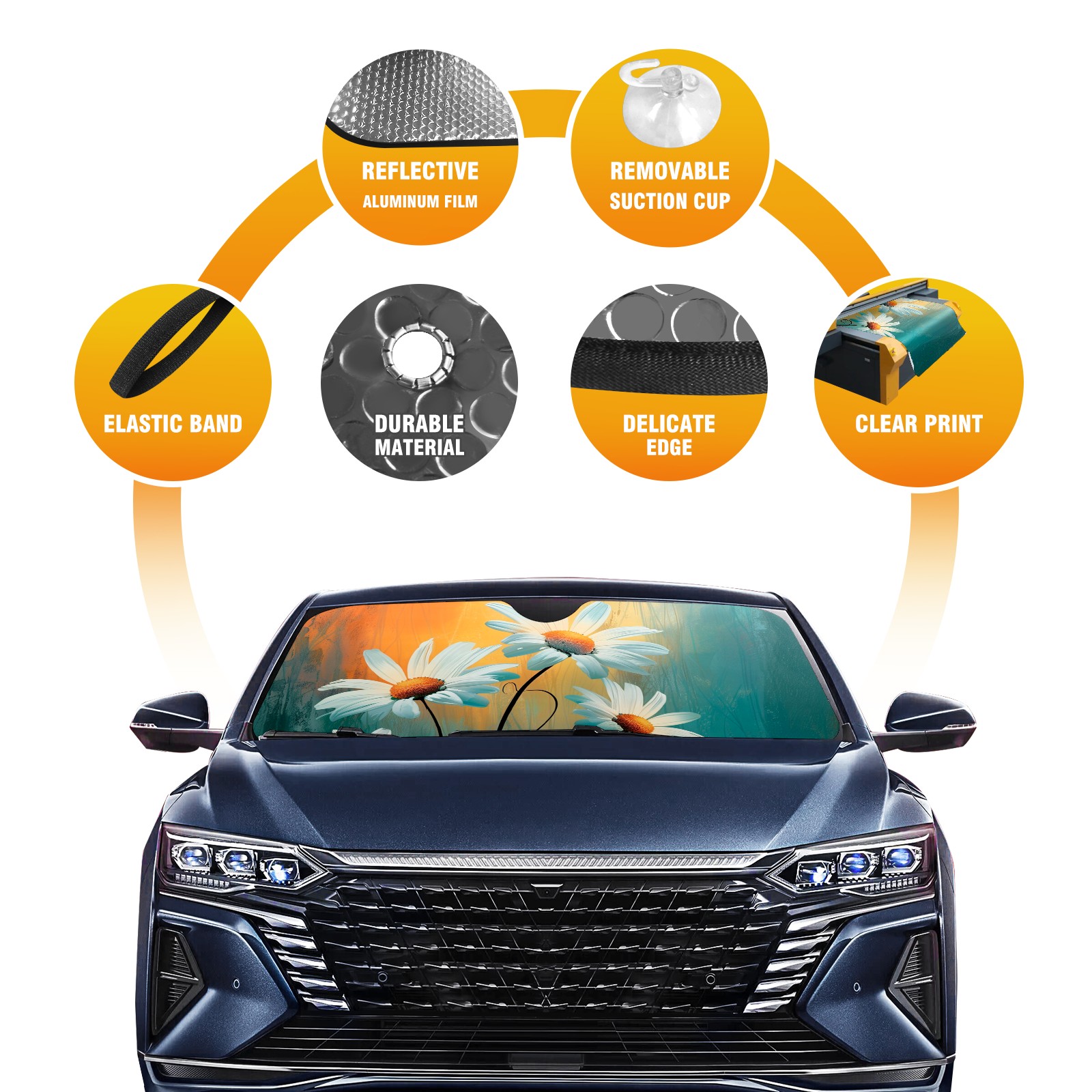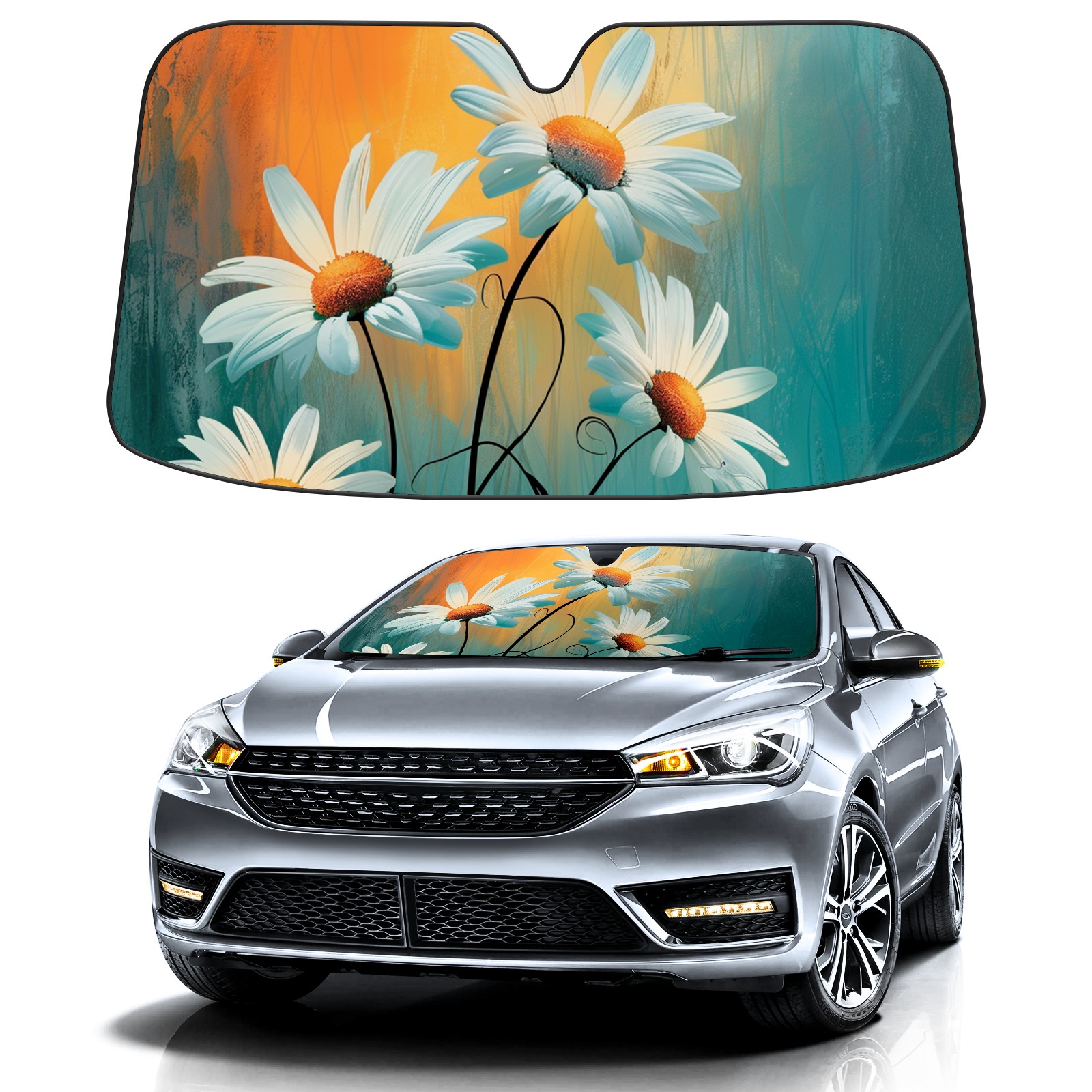 Car Windshield Sun Shade for Front Window Sunflower Foldable Vehicle Windshield Car Sun Visor Covers Automotive Window Protector Car Privacy Sun Blocker