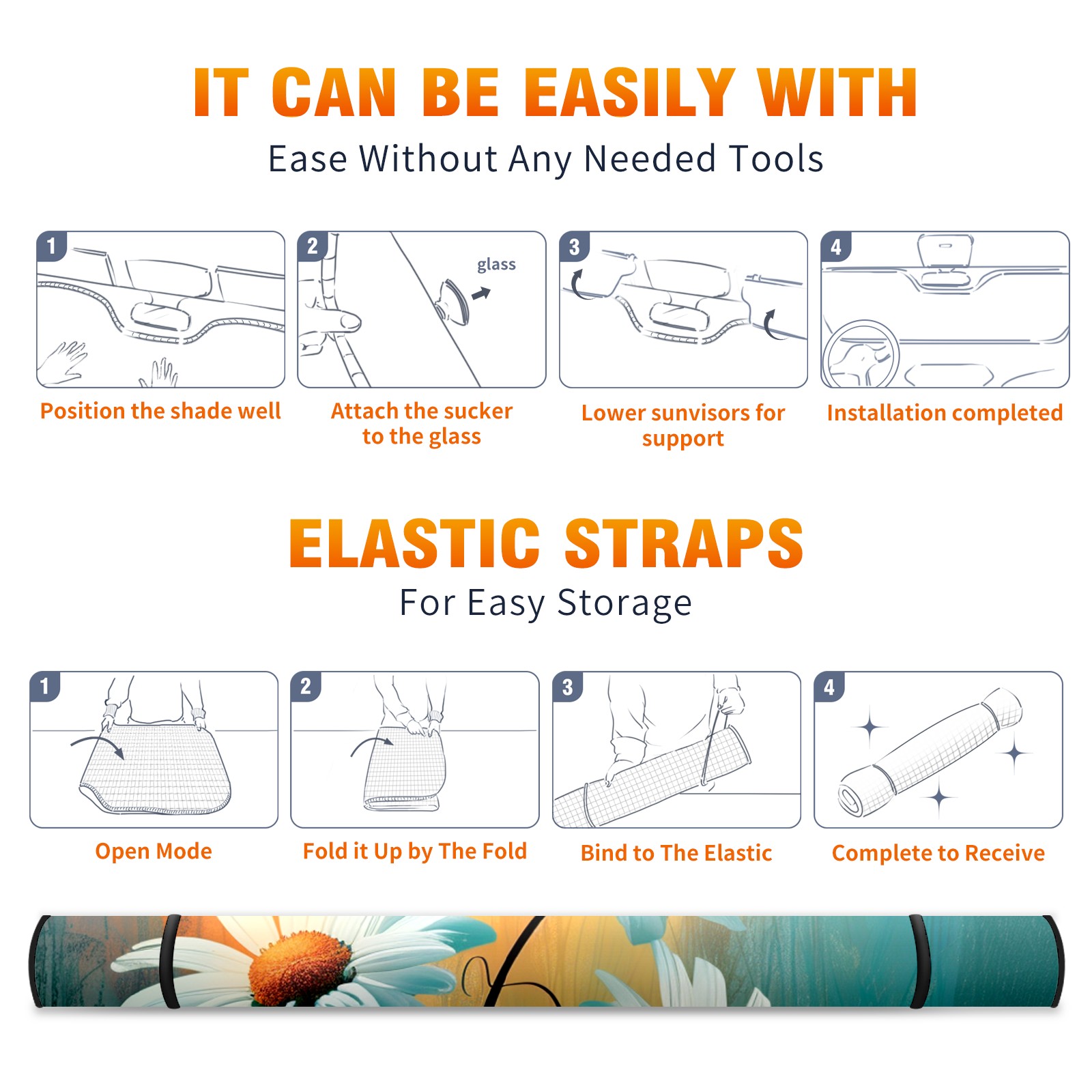 • </b>ZXIVGOQFR Foldable Premium Car Windshield Sunshade is your great solution to reduce your car’s interior temperature dramatically! This is definitely a must-have item for your summer travel! </b> <br> </b>Size: 63"L x 33.5"W </b> <br> </b>Blocking Uv Rays & Heat Insulation</b><br> Our vehicle sunshade provides effective UV, sun, and summer heat protection .Maintains dashboards by preventing fading and cracking <br> </b>Easy-To-Store Folding Design Makes Storage Convenient </b><br> ZXIVGOQFR car sunshades come with removable suction cups and elastic bands that you can install easily and quickly, and the removable suction cups will not leave any marks on your windows when removed. Within seconds, windshield visor can be installed and removed. When not in use,the front windshield can be easily and effectively placed on the door pocket or the dashboard, which is beautiful and does not take up space in the car.<br> <br> </b>PUT UP A 'PROTECTIVE UMBRELLA' FOR YOUR BELOVED CAR!</b>