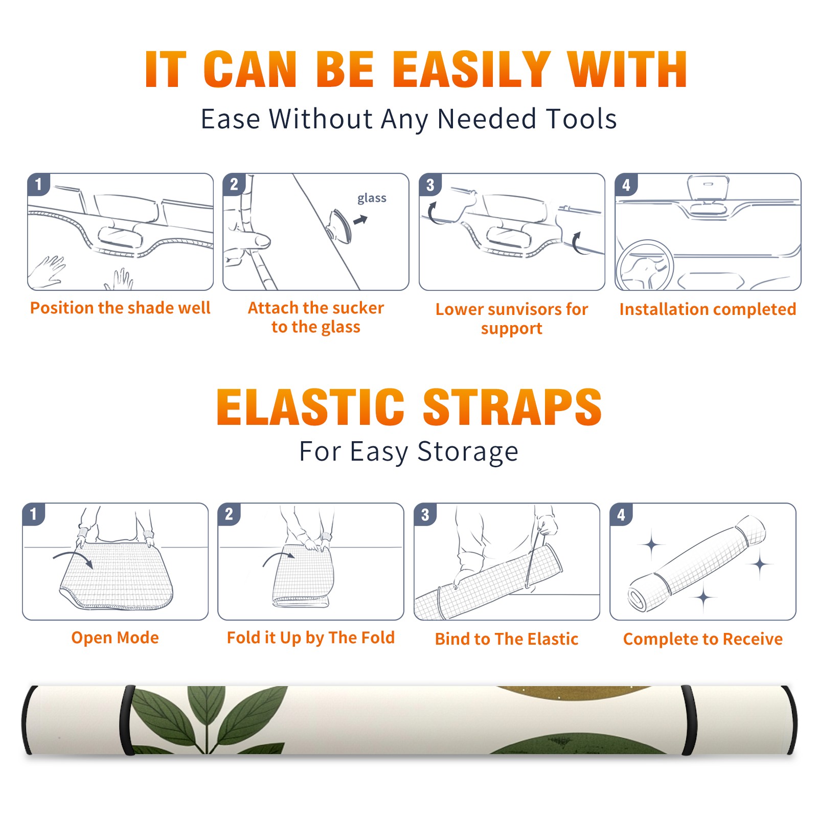 • </b>ZXIVGOQFR Foldable Premium Car Windshield Sunshade is your great solution to reduce your car’s interior temperature dramatically! This is definitely a must-have item for your summer travel! </b> <br> </b>Size: 63"L x 33.5"W </b> <br> </b>Blocking Uv Rays & Heat Insulation</b><br> Our vehicle sunshade provides effective UV, sun, and summer heat protection .Maintains dashboards by preventing fading and cracking <br> </b>Easy-To-Store Folding Design Makes Storage Convenient </b><br> ZXIVGOQFR car sunshades come with removable suction cups and elastic bands that you can install easily and quickly, and the removable suction cups will not leave any marks on your windows when removed. Within seconds, windshield visor can be installed and removed. When not in use,the front windshield can be easily and effectively placed on the door pocket or the dashboard, which is beautiful and does not take up space in the car.<br> <br> </b>PUT UP A 'PROTECTIVE UMBRELLA' FOR YOUR BELOVED CAR!</b>