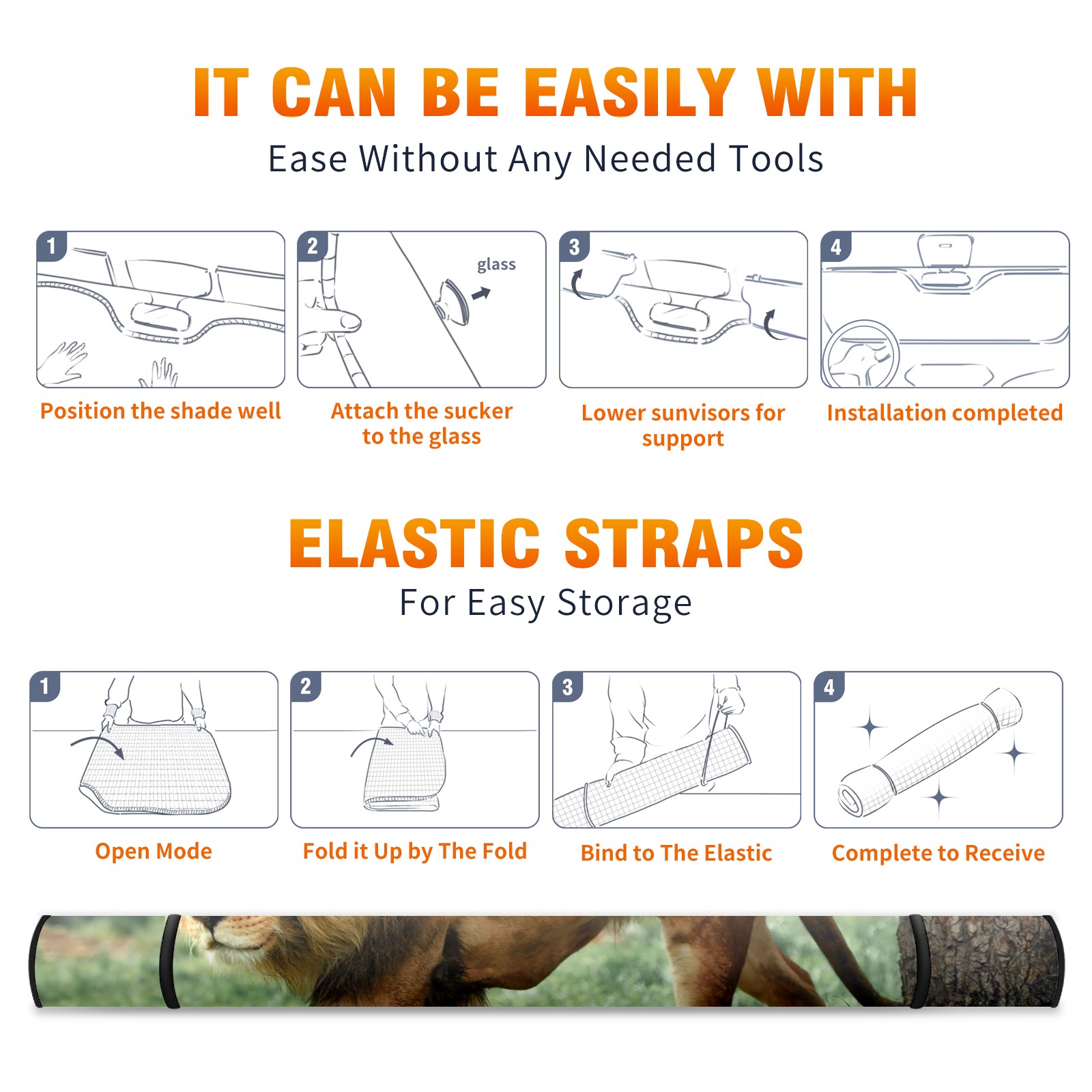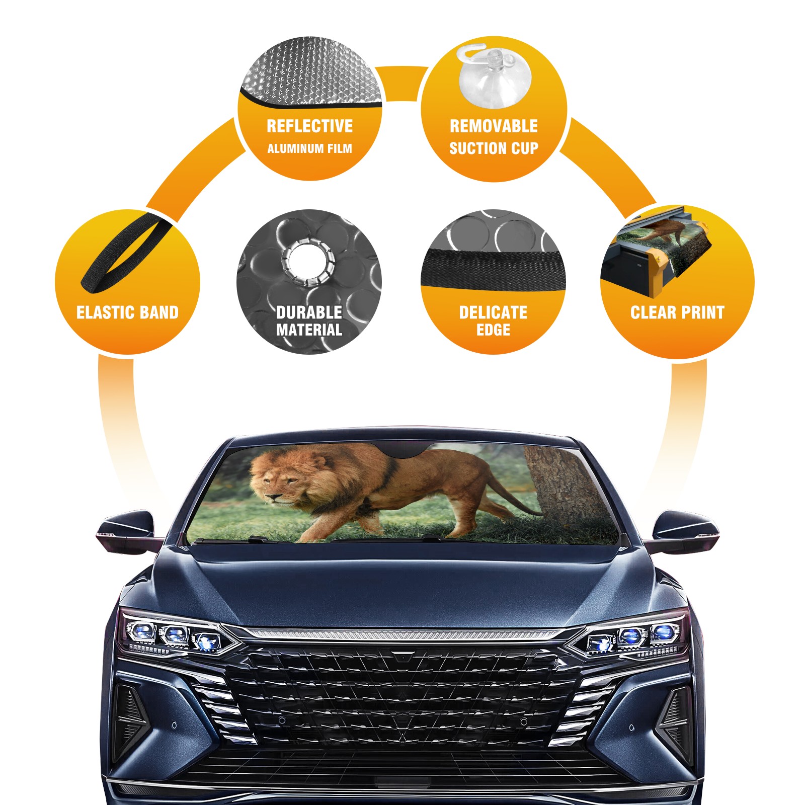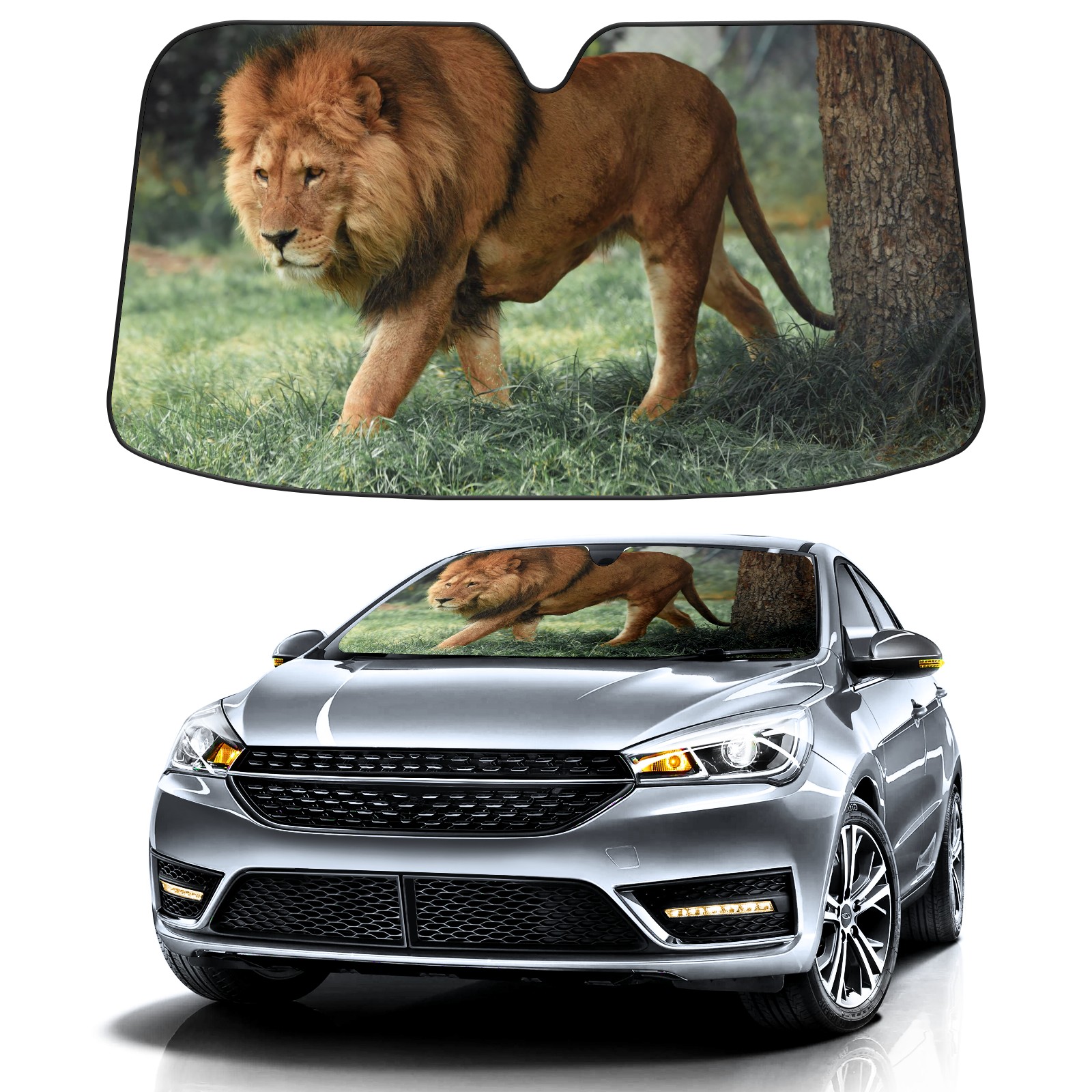 Car Windshield Sun Shade for Front Window Animal Lion(1) Foldable Vehicle Windshield Car Sun Visor Covers Automotive Window Protector Car Privacy Sun Blocker