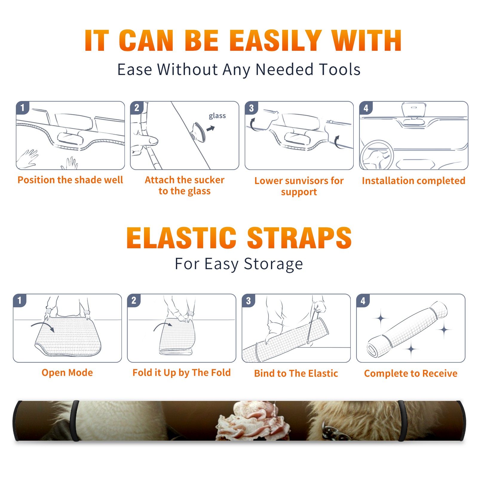 • </b>ZXIVGOQFR Foldable Premium Car Windshield Sunshade is your great solution to reduce your car’s interior temperature dramatically! This is definitely a must-have item for your summer travel! </b> <br> </b>Size: 63"L x 33.5"W </b> <br> </b>Blocking Uv Rays & Heat Insulation</b><br> Our vehicle sunshade provides effective UV, sun, and summer heat protection .Maintains dashboards by preventing fading and cracking <br> </b>Easy-To-Store Folding Design Makes Storage Convenient </b><br> ZXIVGOQFR car sunshades come with removable suction cups and elastic bands that you can install easily and quickly, and the removable suction cups will not leave any marks on your windows when removed. Within seconds, windshield visor can be installed and removed. When not in use,the front windshield can be easily and effectively placed on the door pocket or the dashboard, which is beautiful and does not take up space in the car.<br> <br> </b>PUT UP A 'PROTECTIVE UMBRELLA' FOR YOUR BELOVED CAR!</b>