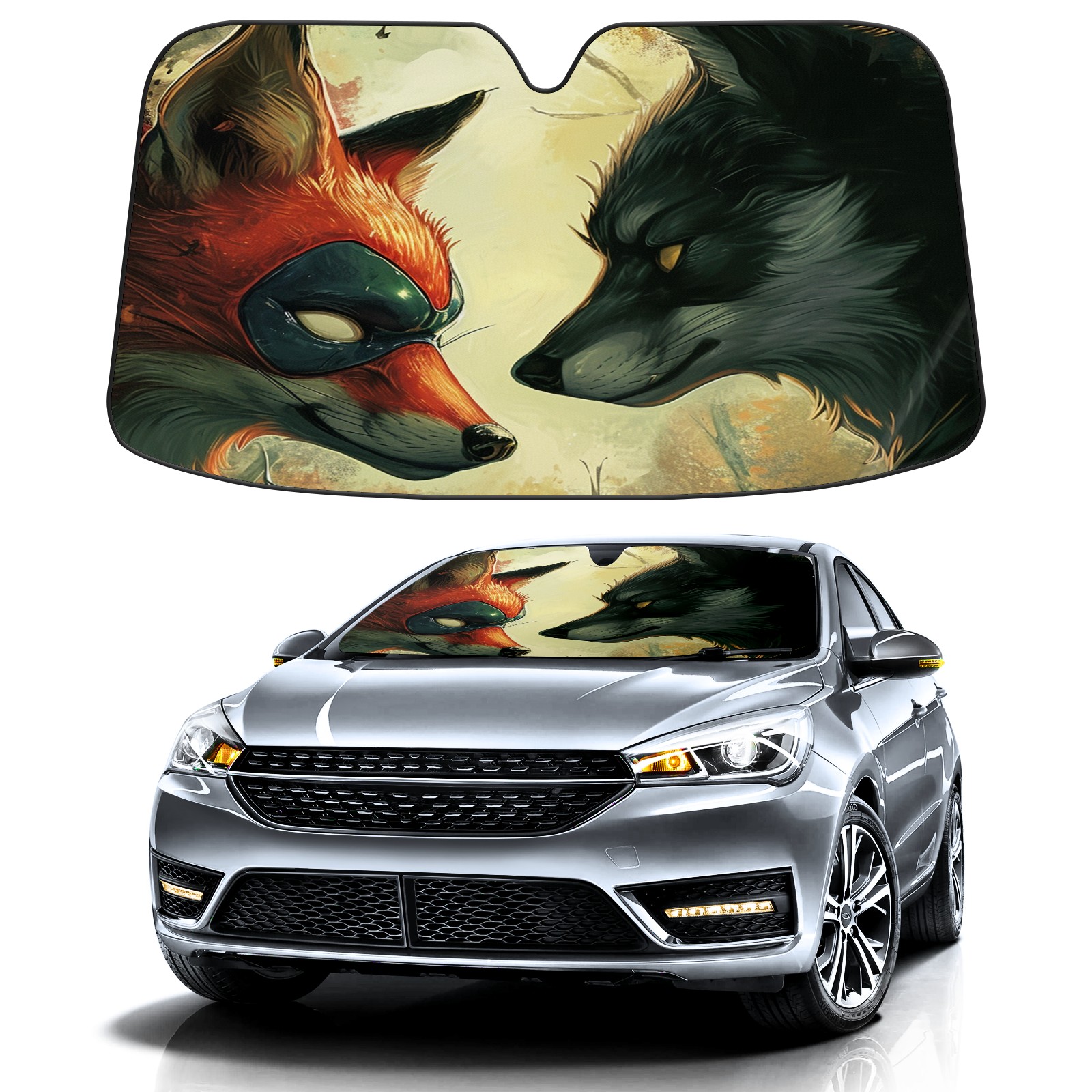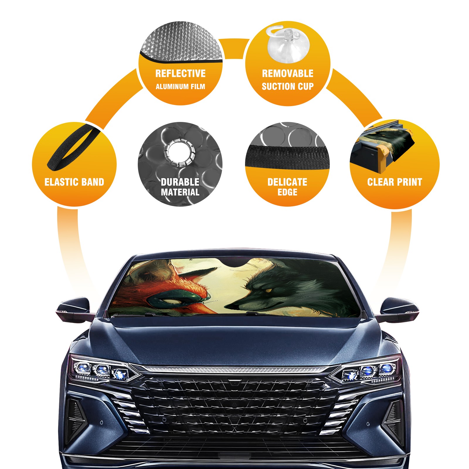 Car Windshield Sun Shade for Front Window Wolf Foldable Vehicle Windshield Car Sun Visor Covers Automotive Window Protector Car Privacy Sun Blocker