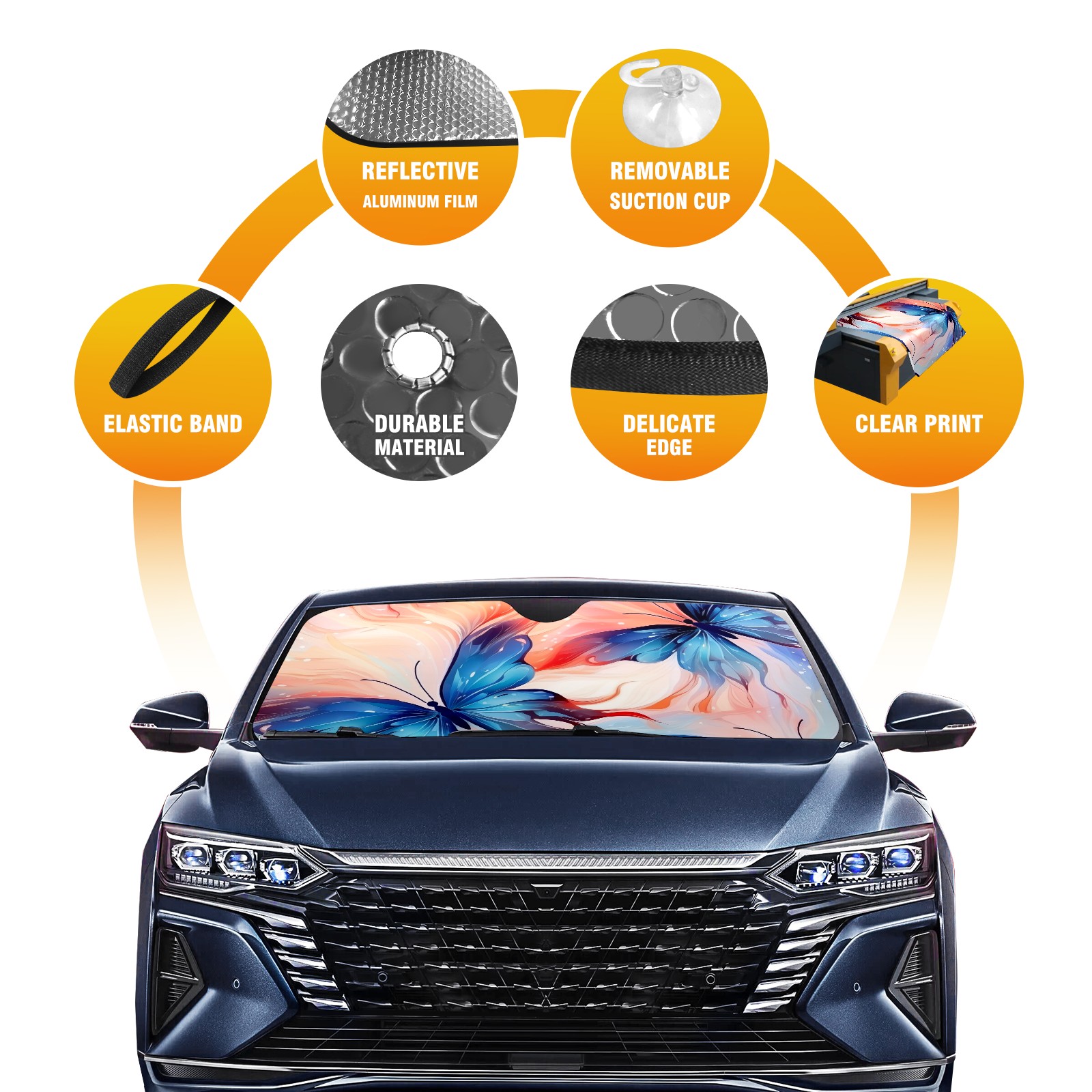 Car Windshield Sun Shade for Front Window Beautiful Butterfly Foldable Vehicle Windshield Car Sun Visor Covers Automotive Window Protector Car Privacy Sun Blocker