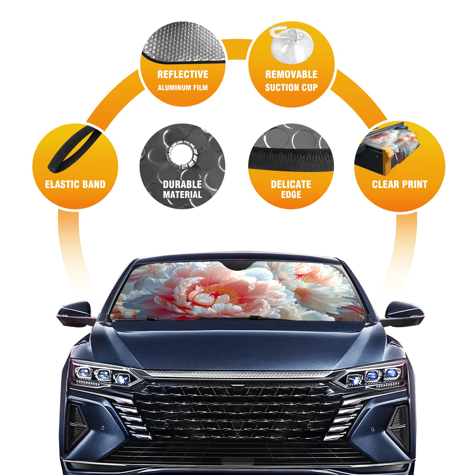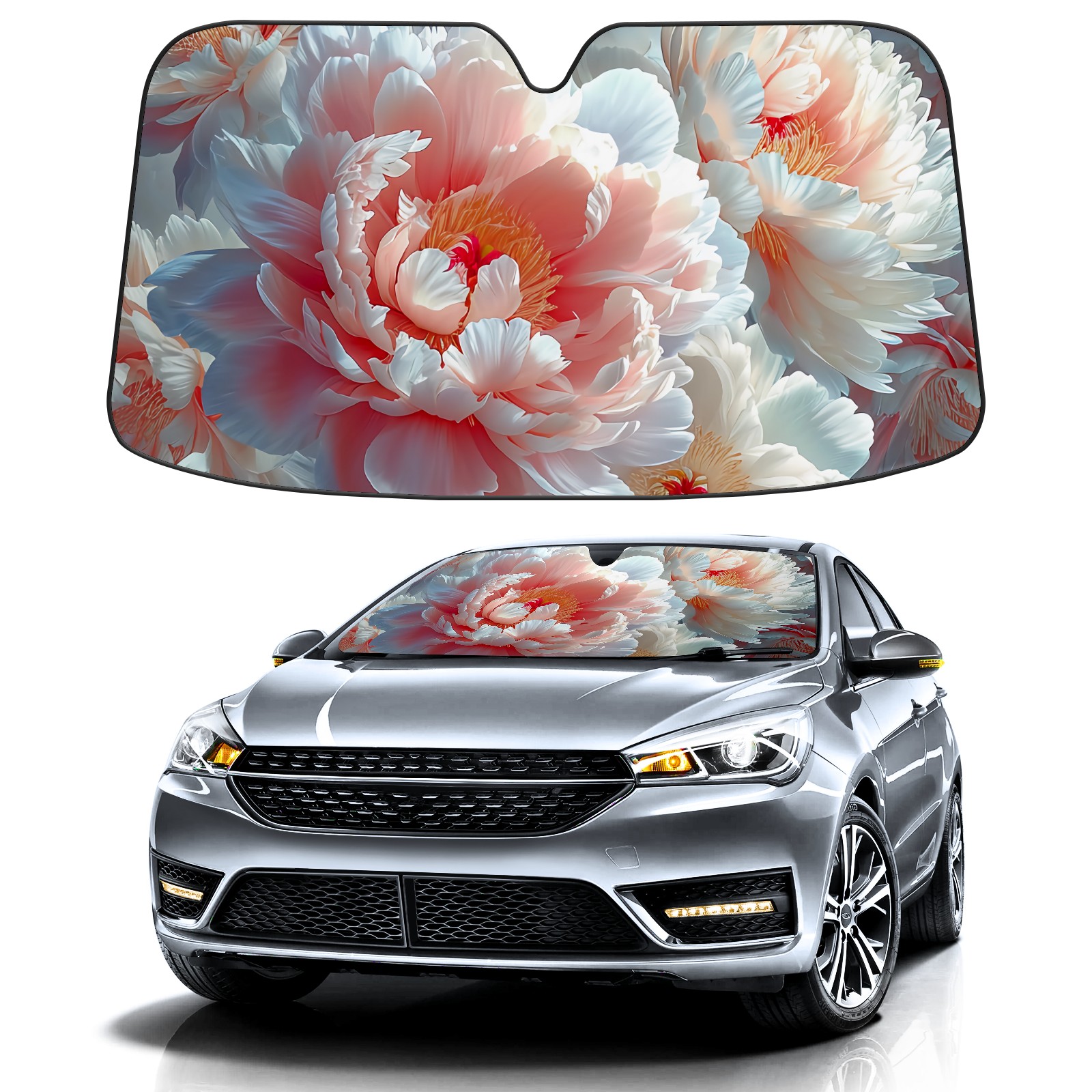 Car Windshield Sun Shade for Front Window Peony Flower D Foldable Vehicle Windshield Car Sun Visor Covers Automotive Window Protector Car Privacy Sun Blocker