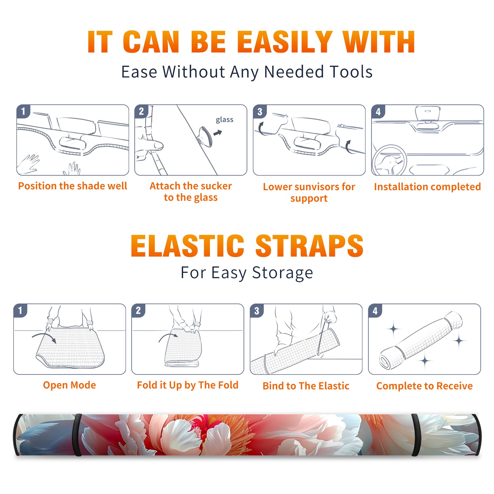 • </b>ZXIVGOQFR Foldable Premium Car Windshield Sunshade is your great solution to reduce your car’s interior temperature dramatically! This is definitely a must-have item for your summer travel! </b> <br> </b>Size: 63"L x 33.5"W </b> <br> </b>Blocking Uv Rays & Heat Insulation</b><br> Our vehicle sunshade provides effective UV, sun, and summer heat protection .Maintains dashboards by preventing fading and cracking <br> </b>Easy-To-Store Folding Design Makes Storage Convenient </b><br> ZXIVGOQFR car sunshades come with removable suction cups and elastic bands that you can install easily and quickly, and the removable suction cups will not leave any marks on your windows when removed. Within seconds, windshield visor can be installed and removed. When not in use,the front windshield can be easily and effectively placed on the door pocket or the dashboard, which is beautiful and does not take up space in the car.<br> <br> </b>PUT UP A 'PROTECTIVE UMBRELLA' FOR YOUR BELOVED CAR!</b>