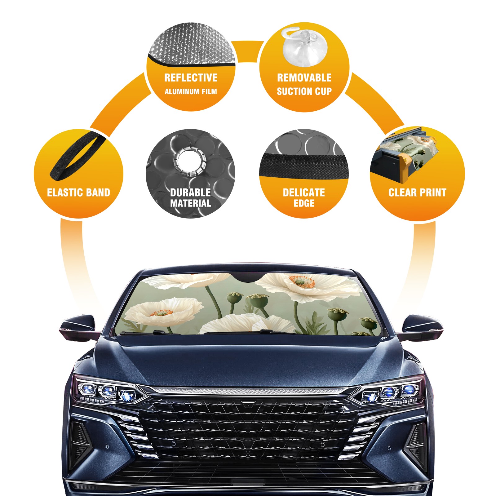 Car Windshield Sun Shade for Front Window Floral Pattern Foldable Vehicle Windshield Car Sun Visor Covers Automotive Window Protector Car Privacy Sun Blocker