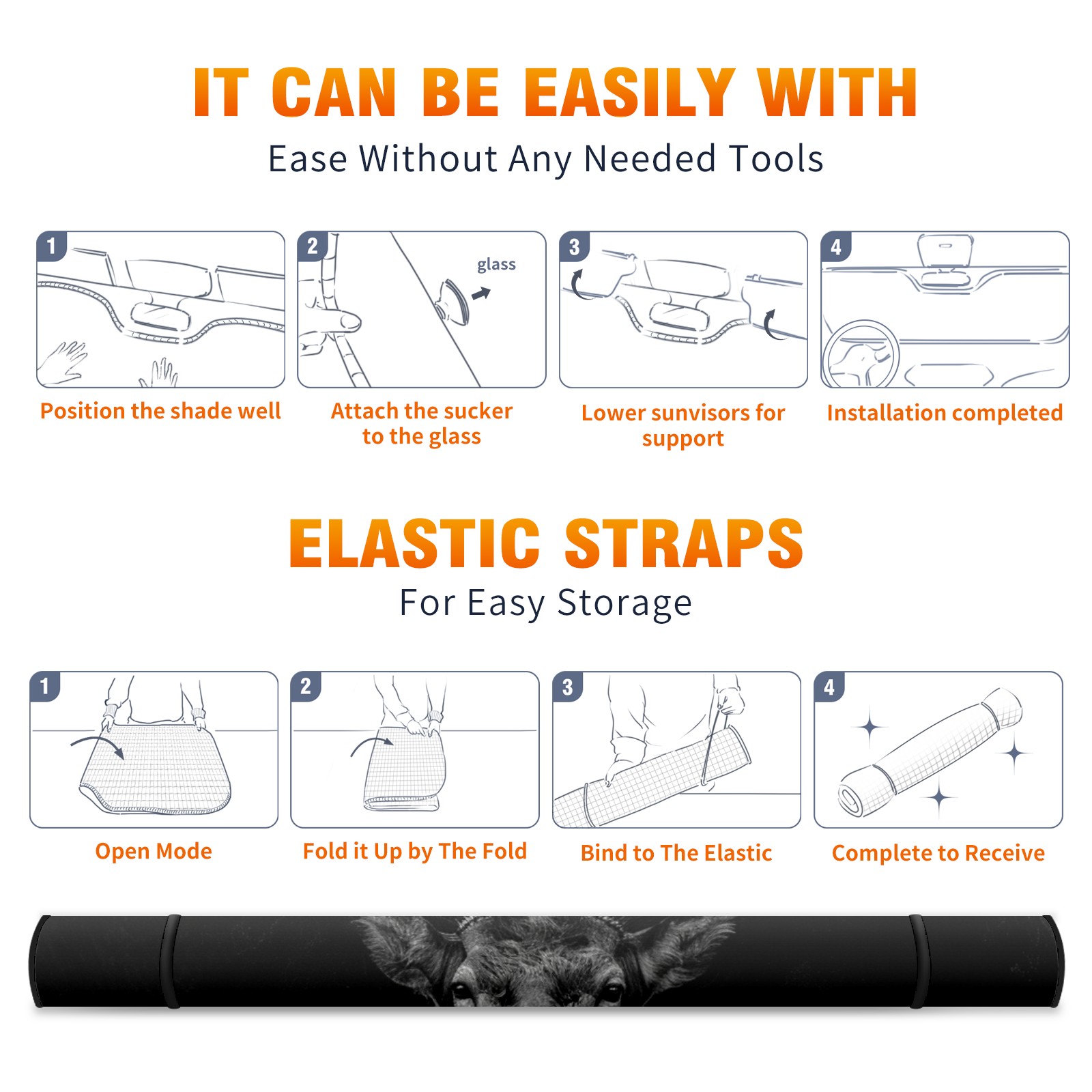 • </b>ZXIVGOQFR Foldable Premium Car Windshield Sunshade is your great solution to reduce your car’s interior temperature dramatically! This is definitely a must-have item for your summer travel! </b> <br> </b>Size: 63"L x 33.5"W </b> <br> </b>Blocking Uv Rays & Heat Insulation</b><br> Our vehicle sunshade provides effective UV, sun, and summer heat protection .Maintains dashboards by preventing fading and cracking <br> </b>Easy-To-Store Folding Design Makes Storage Convenient </b><br> ZXIVGOQFR car sunshades come with removable suction cups and elastic bands that you can install easily and quickly, and the removable suction cups will not leave any marks on your windows when removed. Within seconds, windshield visor can be installed and removed. When not in use,the front windshield can be easily and effectively placed on the door pocket or the dashboard, which is beautiful and does not take up space in the car.<br> <br> </b>PUT UP A 'PROTECTIVE UMBRELLA' FOR YOUR BELOVED CAR!</b>
