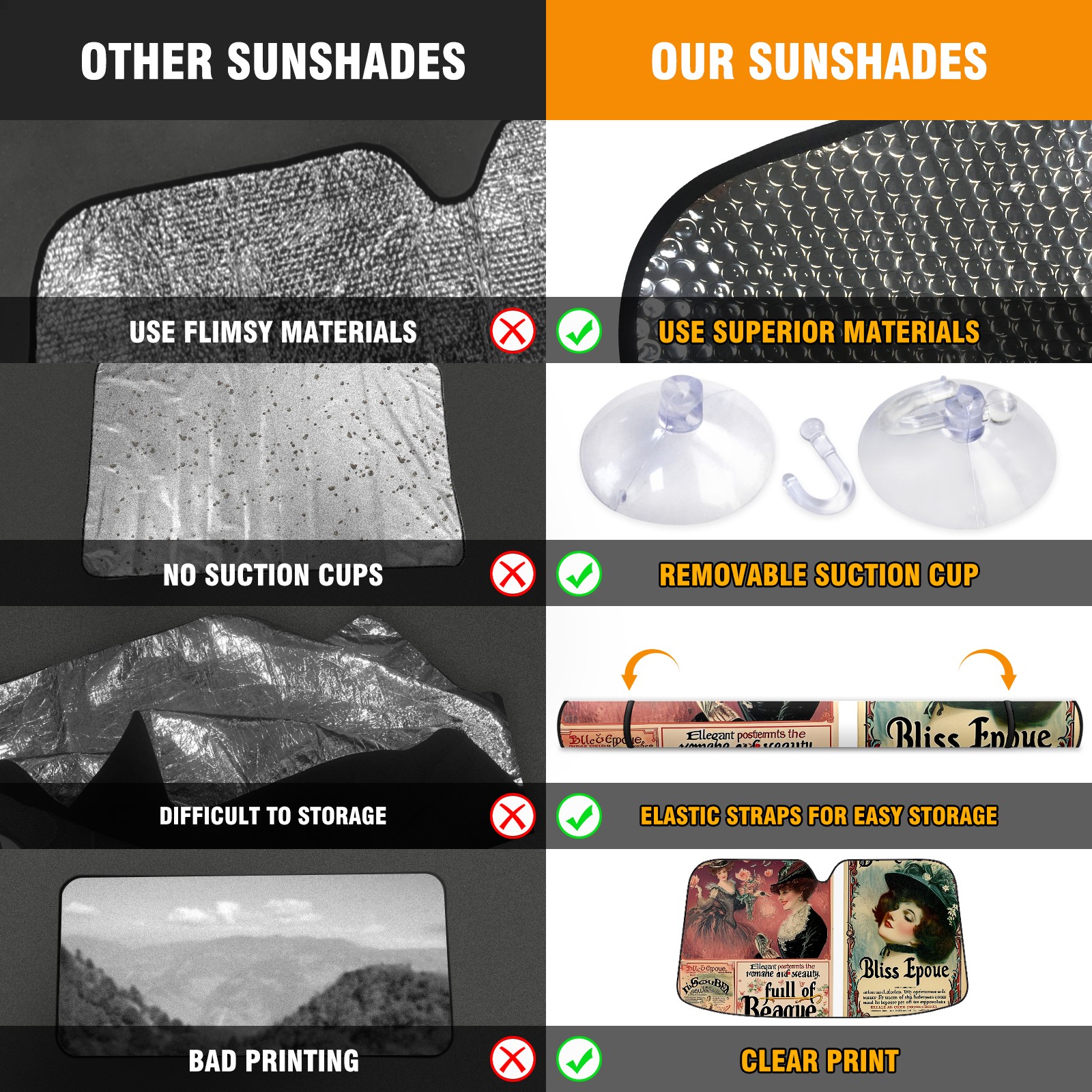 • </b>ZXIVGOQFR Foldable Premium Car Windshield Sunshade is your great solution to reduce your car’s interior temperature dramatically! This is definitely a must-have item for your summer travel! </b> <br> </b>Size: 63"L x 33.5"W </b> <br> </b>Blocking Uv Rays & Heat Insulation</b><br> Our vehicle sunshade provides effective UV, sun, and summer heat protection .Maintains dashboards by preventing fading and cracking <br> </b>Easy-To-Store Folding Design Makes Storage Convenient </b><br> ZXIVGOQFR car sunshades come with removable suction cups and elastic bands that you can install easily and quickly, and the removable suction cups will not leave any marks on your windows when removed. Within seconds, windshield visor can be installed and removed. When not in use,the front windshield can be easily and effectively placed on the door pocket or the dashboard, which is beautiful and does not take up space in the car.<br> <br> </b>PUT UP A 'PROTECTIVE UMBRELLA' FOR YOUR BELOVED CAR!</b>