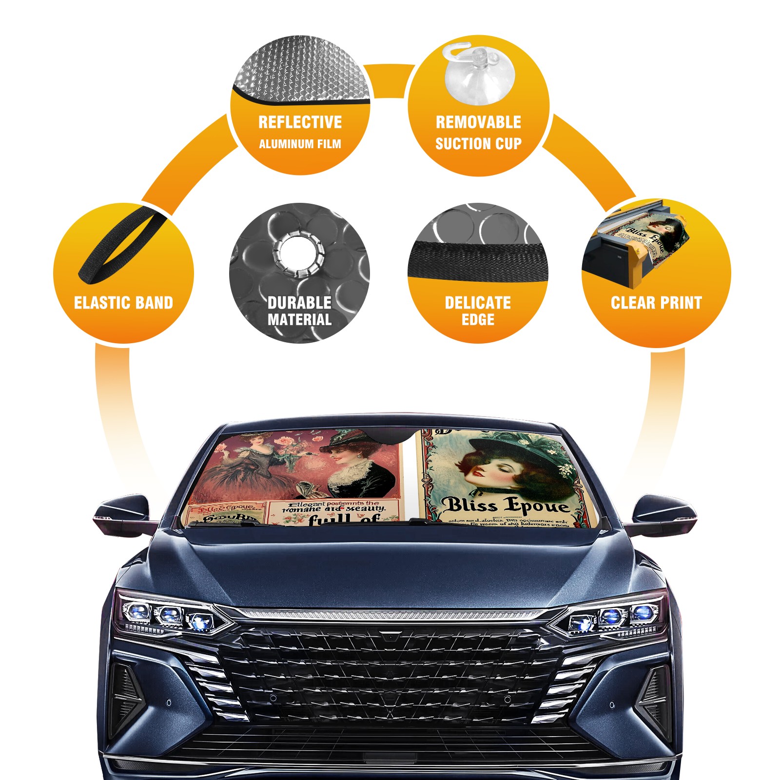 </b>ZXIVGOQFR Foldable Premium Car Windshield Sunshade is your great solution to reduce your car’s interior temperature dramatically! This is definitely a must-have item for your summer travel! </b> <br> </b>Size: 63"L x 33.5"W </b> <br> </b>Blocking Uv Rays & Heat Insulation</b><br> Our vehicle sunshade provides effective UV, sun, and summer heat protection .Maintains dashboards by preventing fading and cracking <br> </b>Easy-To-Store Folding Design Makes Storage Convenient </b><br> ZXIVGOQFR car sunshades come with removable suction cups and elastic bands that you can install easily and quickly, and the removable suction cups will not leave any marks on your windows when removed. Within seconds, windshield visor can be installed and removed. When not in use,the front windshield can be easily and effectively placed on the door pocket or the dashboard, which is beautiful and does not take up space in the car.<br> <br> </b>PUT UP A 'PROTECTIVE UMBRELLA' FOR YOUR BELOVED CAR!</b>