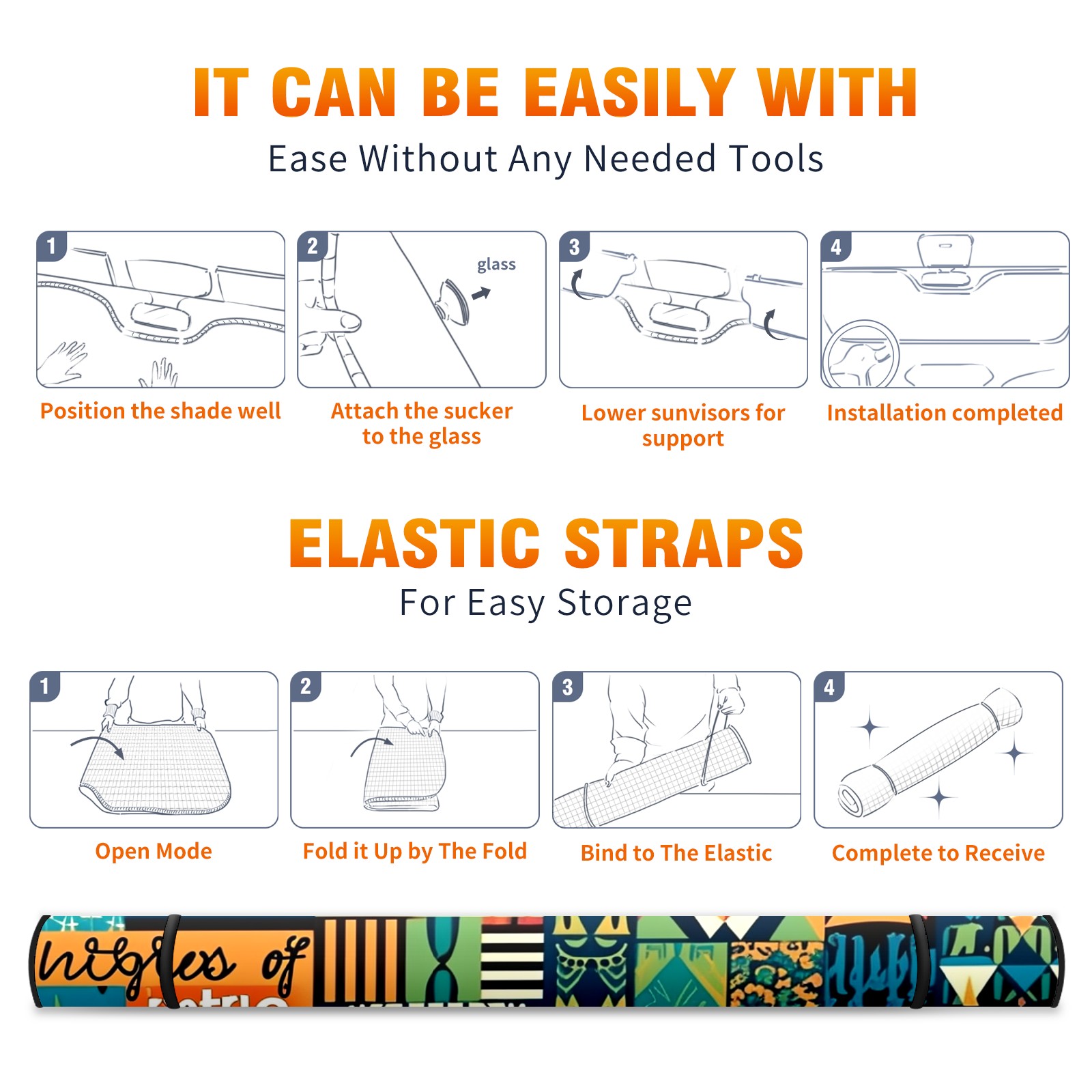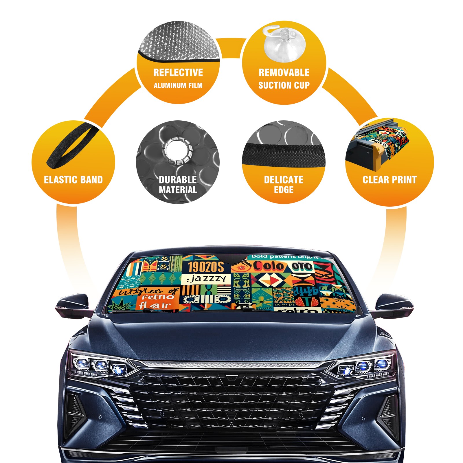 Car Windshield Sun Shade for Front Window Printing Foldable Vehicle Windshield Car Sun Visor Covers Automotive Window Protector Car Privacy Sun Blocker