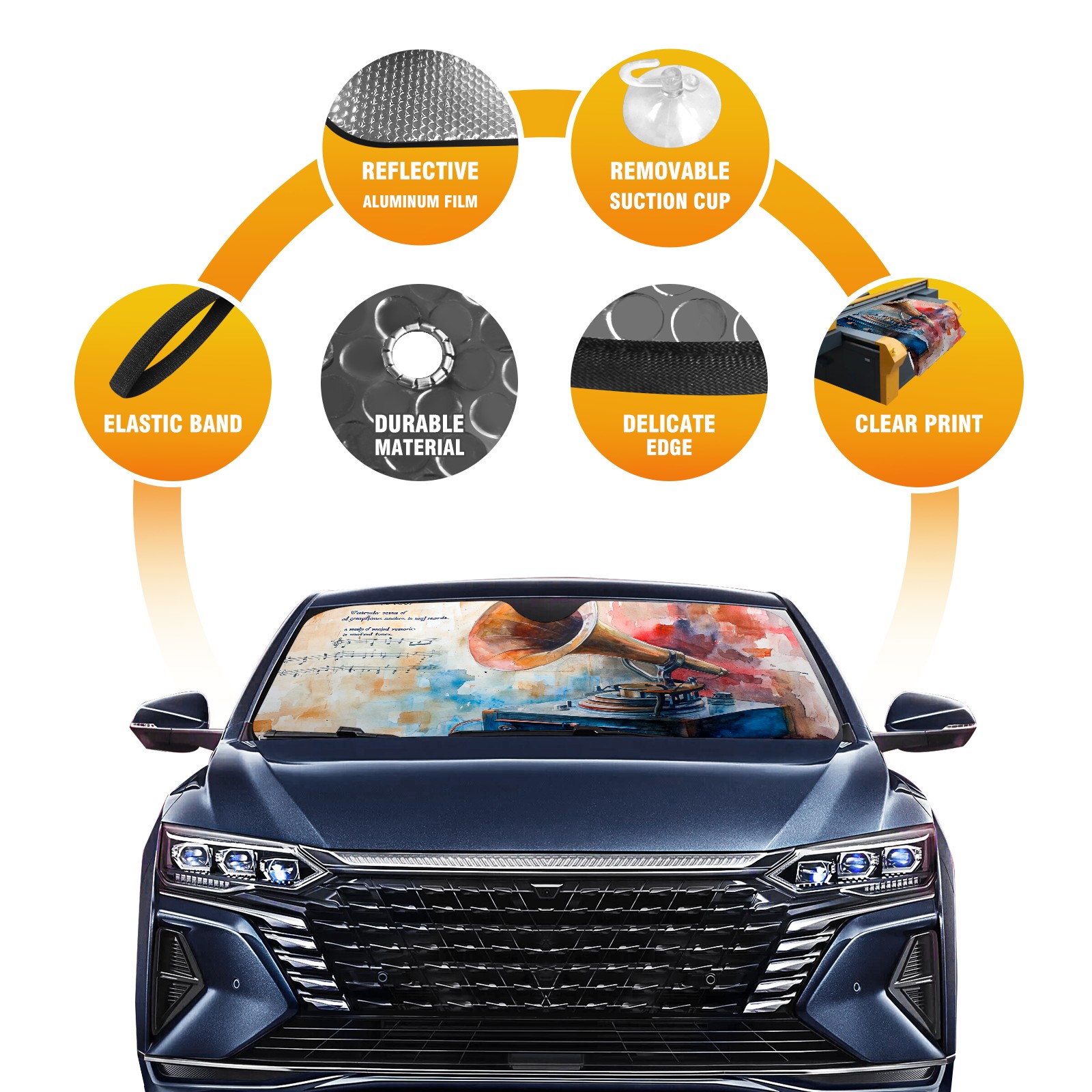 </b>ZXIVGOQFR Foldable Premium Car Windshield Sunshade is your great solution to reduce your car’s interior temperature dramatically! This is definitely a must-have item for your summer travel! </b> <br> </b>Size: 63"L x 33.5"W </b> <br> </b>Blocking Uv Rays & Heat Insulation</b><br> Our vehicle sunshade provides effective UV, sun, and summer heat protection .Maintains dashboards by preventing fading and cracking <br> </b>Easy-To-Store Folding Design Makes Storage Convenient </b><br> ZXIVGOQFR car sunshades come with removable suction cups and elastic bands that you can install easily and quickly, and the removable suction cups will not leave any marks on your windows when removed. Within seconds, windshield visor can be installed and removed. When not in use,the front windshield can be easily and effectively placed on the door pocket or the dashboard, which is beautiful and does not take up space in the car.<br> <br> </b>PUT UP A 'PROTECTIVE UMBRELLA' FOR YOUR BELOVED CAR!</b>