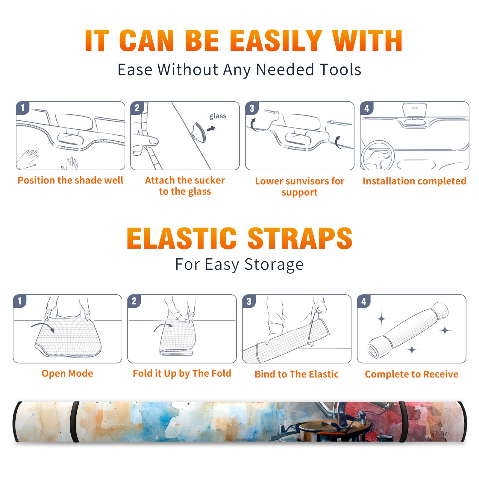 • </b>ZXIVGOQFR Foldable Premium Car Windshield Sunshade is your great solution to reduce your car’s interior temperature dramatically! This is definitely a must-have item for your summer travel! </b> <br> </b>Size: 63"L x 33.5"W </b> <br> </b>Blocking Uv Rays & Heat Insulation</b><br> Our vehicle sunshade provides effective UV, sun, and summer heat protection .Maintains dashboards by preventing fading and cracking <br> </b>Easy-To-Store Folding Design Makes Storage Convenient </b><br> ZXIVGOQFR car sunshades come with removable suction cups and elastic bands that you can install easily and quickly, and the removable suction cups will not leave any marks on your windows when removed. Within seconds, windshield visor can be installed and removed. When not in use,the front windshield can be easily and effectively placed on the door pocket or the dashboard, which is beautiful and does not take up space in the car.<br> <br> </b>PUT UP A 'PROTECTIVE UMBRELLA' FOR YOUR BELOVED CAR!</b>