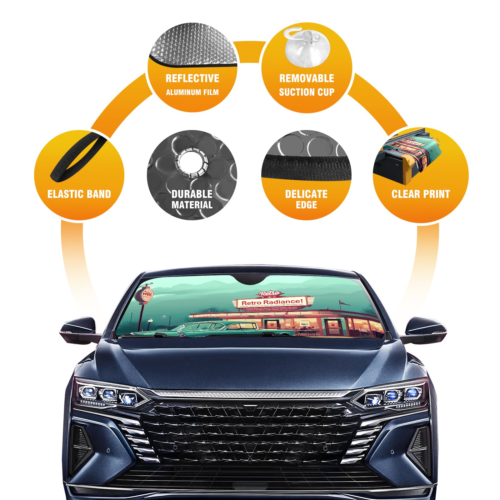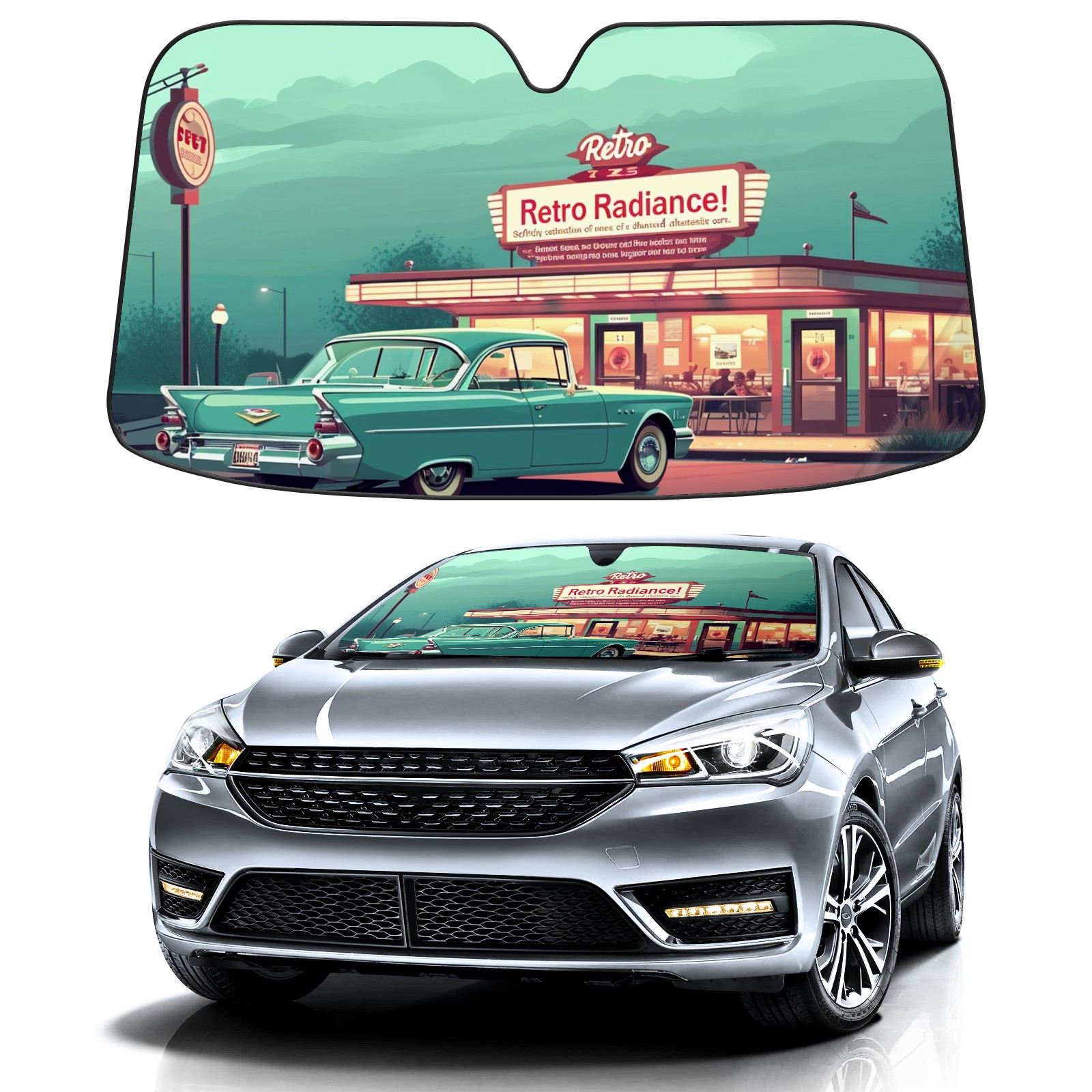 </b>ZXIVGOQFR Foldable Premium Car Windshield Sunshade is your great solution to reduce your car’s interior temperature dramatically! This is definitely a must-have item for your summer travel! </b> <br> </b>Size: 63"L x 33.5"W </b> <br> </b>Blocking Uv Rays & Heat Insulation</b><br> Our vehicle sunshade provides effective UV, sun, and summer heat protection .Maintains dashboards by preventing fading and cracking <br> </b>Easy-To-Store Folding Design Makes Storage Convenient </b><br> ZXIVGOQFR car sunshades come with removable suction cups and elastic bands that you can install easily and quickly, and the removable suction cups will not leave any marks on your windows when removed. Within seconds, windshield visor can be installed and removed. When not in use,the front windshield can be easily and effectively placed on the door pocket or the dashboard, which is beautiful and does not take up space in the car.<br> <br> </b>PUT UP A 'PROTECTIVE UMBRELLA' FOR YOUR BELOVED CAR!</b>