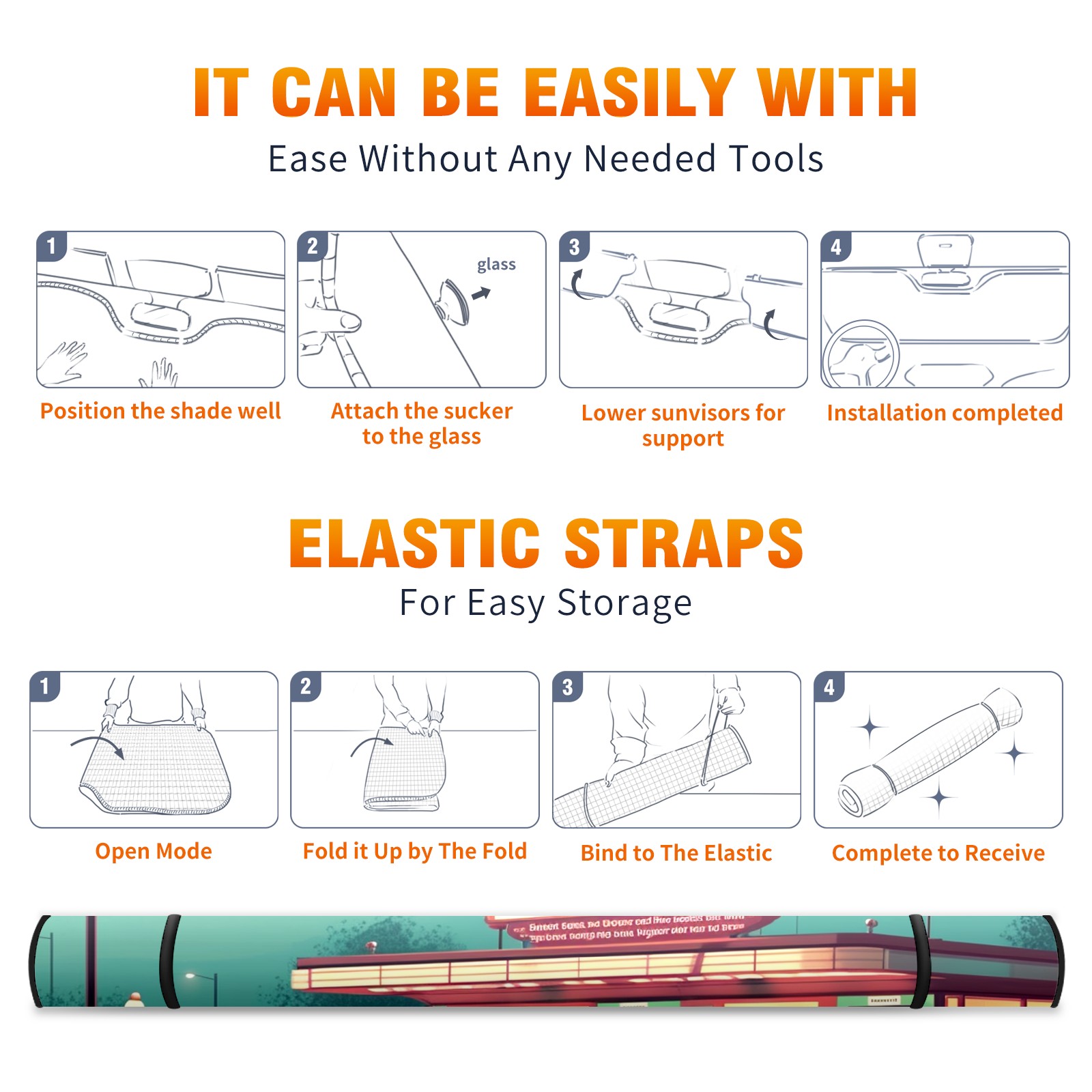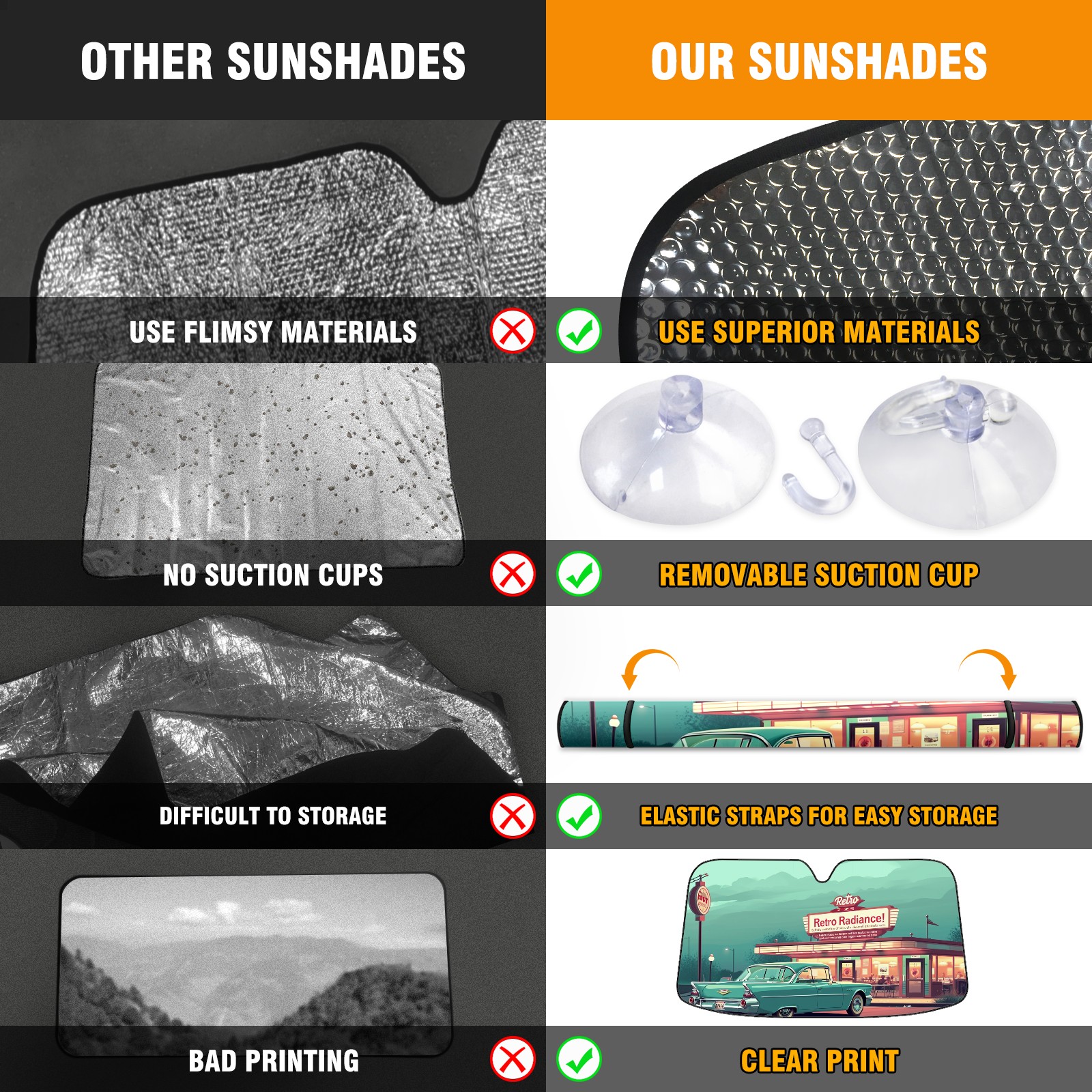• </b>ZXIVGOQFR Foldable Premium Car Windshield Sunshade is your great solution to reduce your car’s interior temperature dramatically! This is definitely a must-have item for your summer travel! </b> <br> </b>Size: 63"L x 33.5"W </b> <br> </b>Blocking Uv Rays & Heat Insulation</b><br> Our vehicle sunshade provides effective UV, sun, and summer heat protection .Maintains dashboards by preventing fading and cracking <br> </b>Easy-To-Store Folding Design Makes Storage Convenient </b><br> ZXIVGOQFR car sunshades come with removable suction cups and elastic bands that you can install easily and quickly, and the removable suction cups will not leave any marks on your windows when removed. Within seconds, windshield visor can be installed and removed. When not in use,the front windshield can be easily and effectively placed on the door pocket or the dashboard, which is beautiful and does not take up space in the car.<br> <br> </b>PUT UP A 'PROTECTIVE UMBRELLA' FOR YOUR BELOVED CAR!</b>