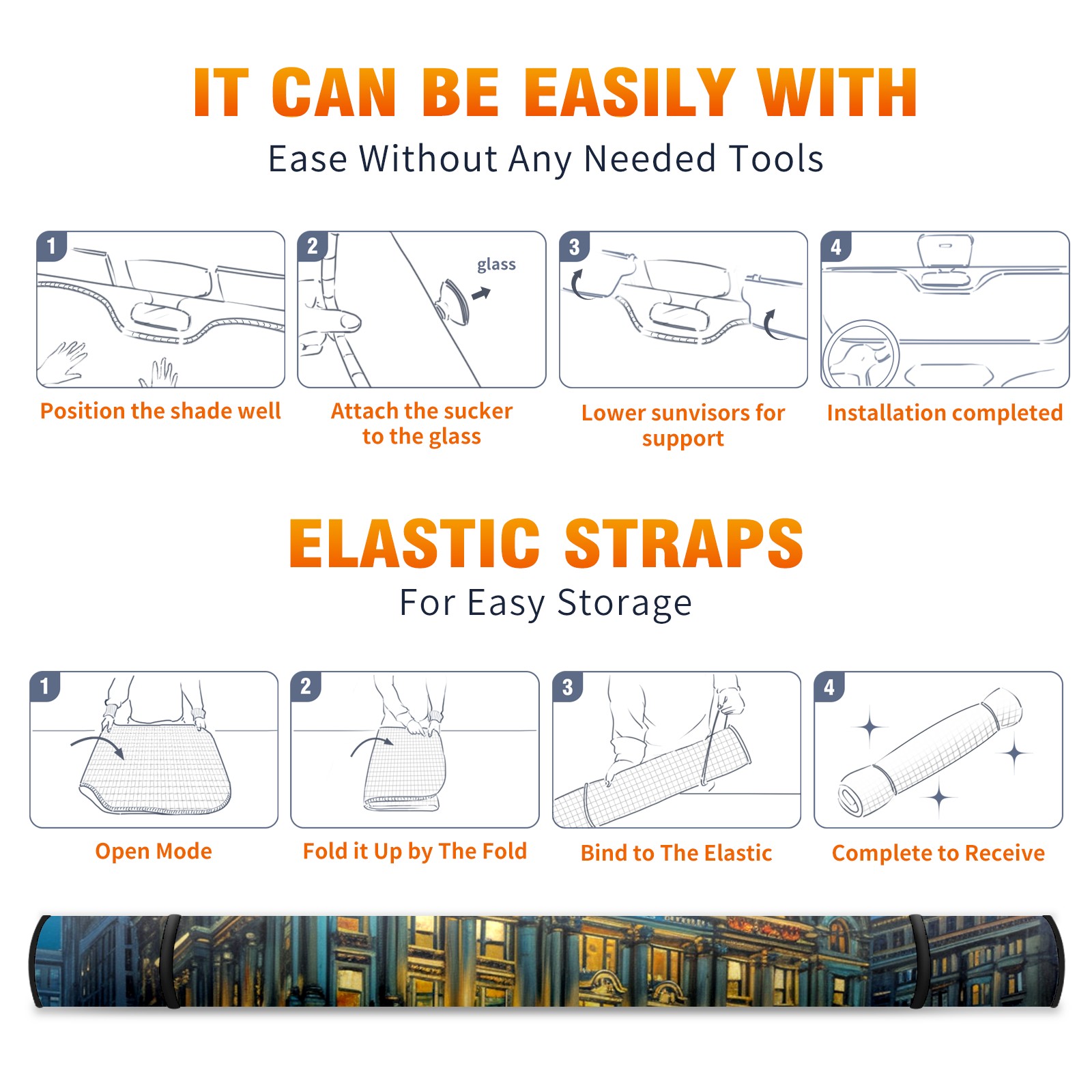 • </b>ZXIVGOQFR Foldable Premium Car Windshield Sunshade is your great solution to reduce your car’s interior temperature dramatically! This is definitely a must-have item for your summer travel! </b> <br> </b>Size: 63"L x 33.5"W </b> <br> </b>Blocking Uv Rays & Heat Insulation</b><br> Our vehicle sunshade provides effective UV, sun, and summer heat protection .Maintains dashboards by preventing fading and cracking <br> </b>Easy-To-Store Folding Design Makes Storage Convenient </b><br> ZXIVGOQFR car sunshades come with removable suction cups and elastic bands that you can install easily and quickly, and the removable suction cups will not leave any marks on your windows when removed. Within seconds, windshield visor can be installed and removed. When not in use,the front windshield can be easily and effectively placed on the door pocket or the dashboard, which is beautiful and does not take up space in the car.<br> <br> </b>PUT UP A 'PROTECTIVE UMBRELLA' FOR YOUR BELOVED CAR!</b>
