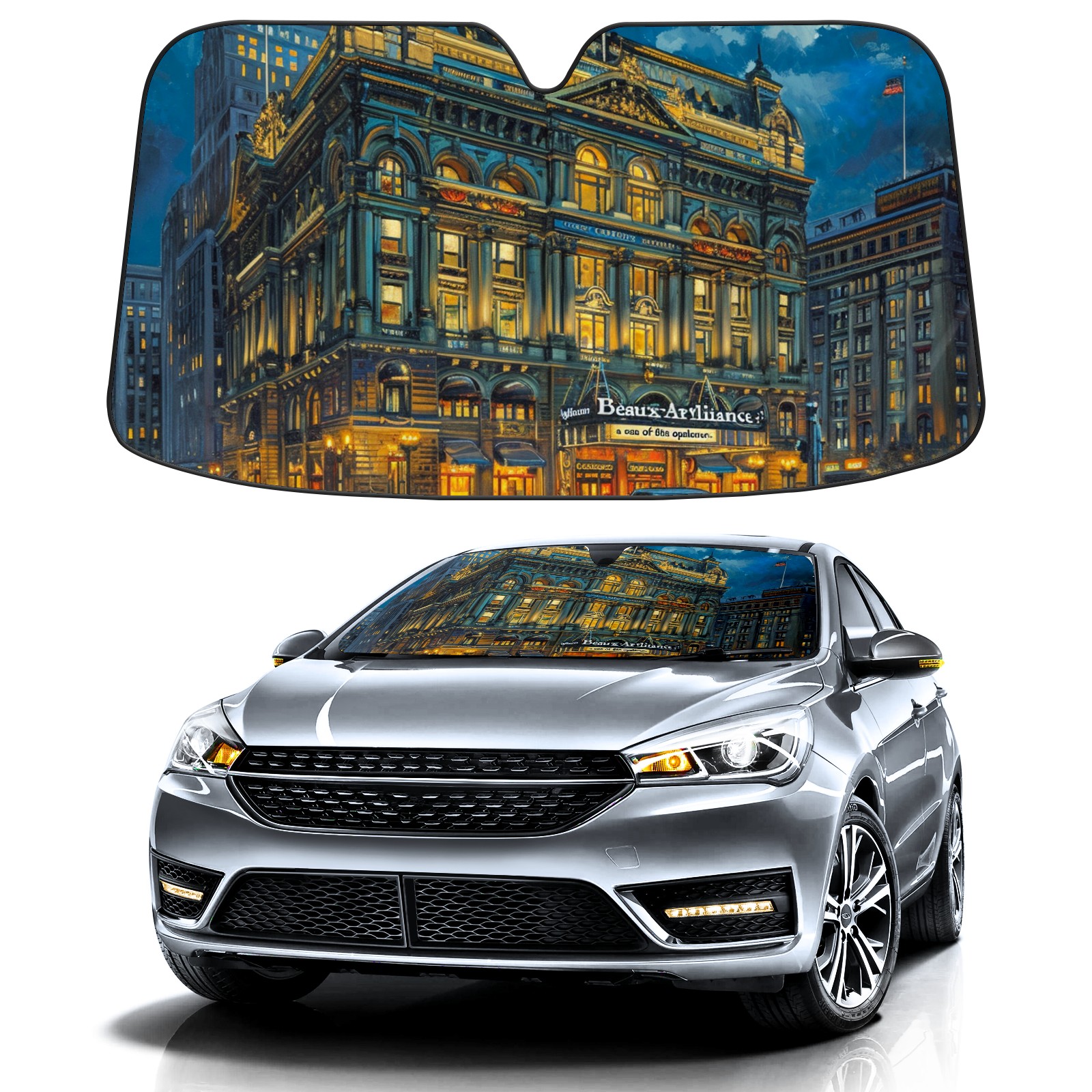 </b>ZXIVGOQFR Foldable Premium Car Windshield Sunshade is your great solution to reduce your car’s interior temperature dramatically! This is definitely a must-have item for your summer travel! </b> <br> </b>Size: 63"L x 33.5"W </b> <br> </b>Blocking Uv Rays & Heat Insulation</b><br> Our vehicle sunshade provides effective UV, sun, and summer heat protection .Maintains dashboards by preventing fading and cracking <br> </b>Easy-To-Store Folding Design Makes Storage Convenient </b><br> ZXIVGOQFR car sunshades come with removable suction cups and elastic bands that you can install easily and quickly, and the removable suction cups will not leave any marks on your windows when removed. Within seconds, windshield visor can be installed and removed. When not in use,the front windshield can be easily and effectively placed on the door pocket or the dashboard, which is beautiful and does not take up space in the car.<br> <br> </b>PUT UP A 'PROTECTIVE UMBRELLA' FOR YOUR BELOVED CAR!</b>