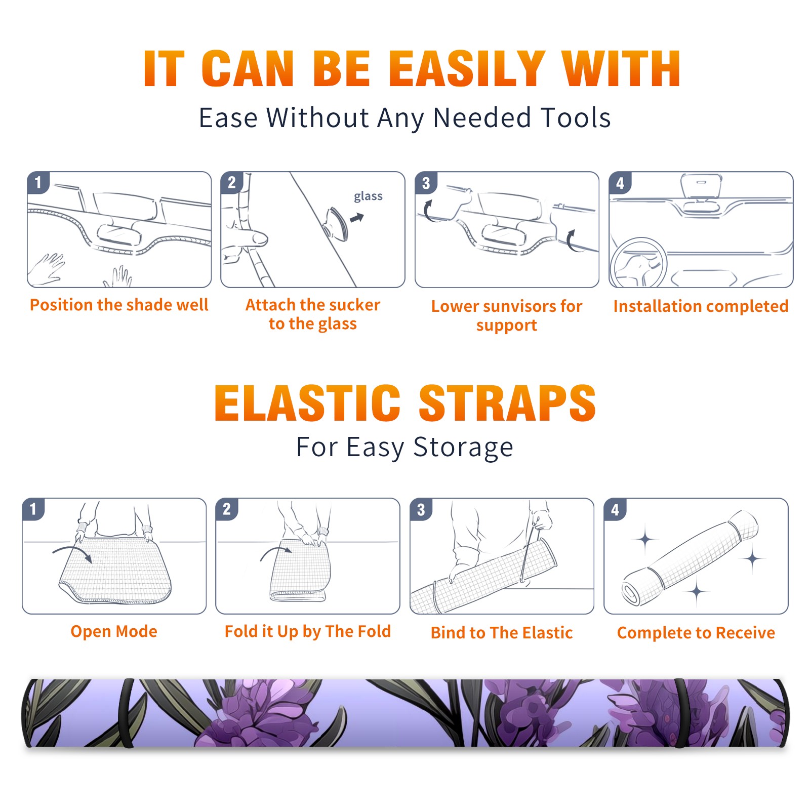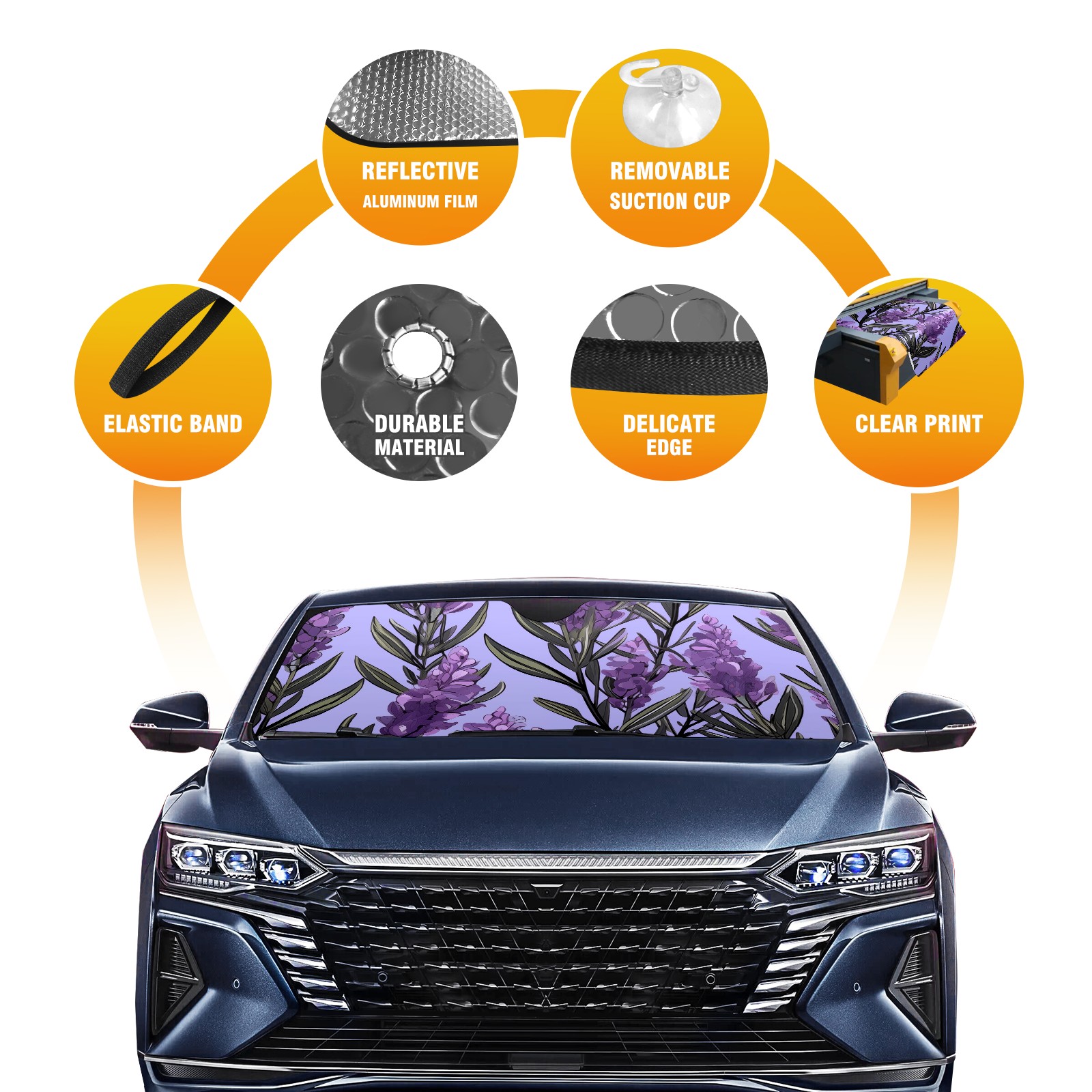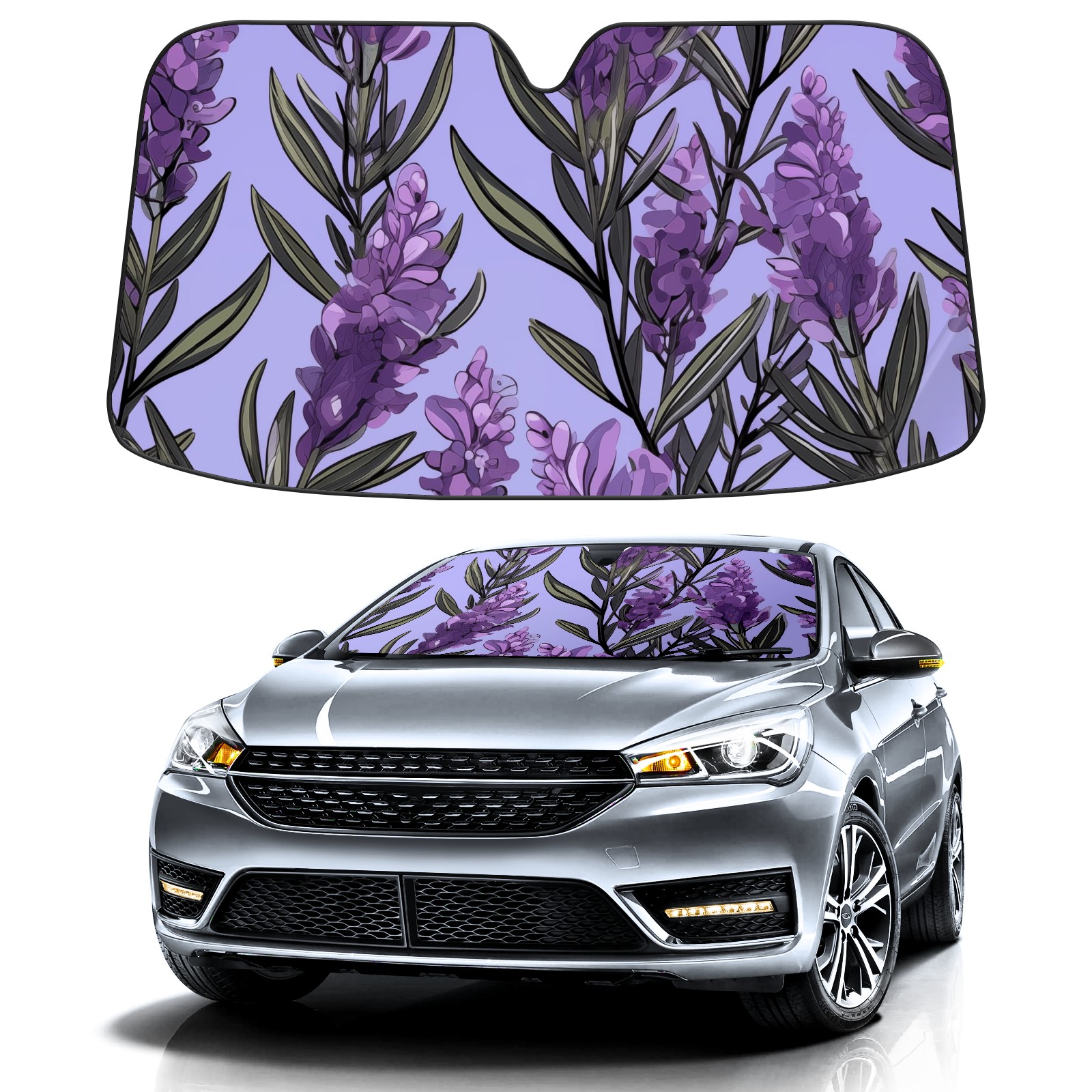 Car Windshield Sun Shade for Front Window Purple Lavender Foldable Vehicle Windshield Car Sun Visor Covers Automotive Window Protector Car Privacy Sun Blocker
