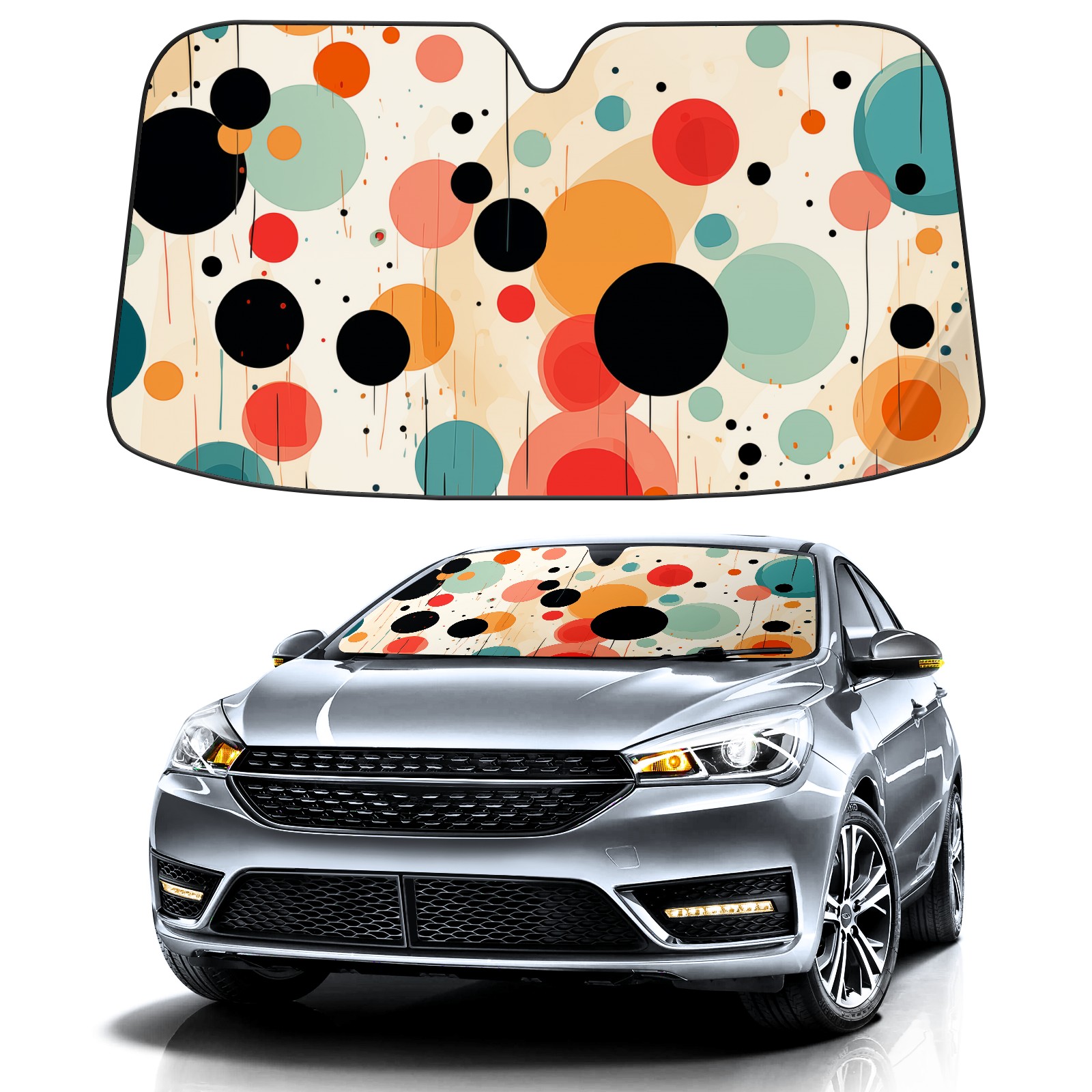 Car Windshield Sun Shade for Front Window Polka Dot Foldable Vehicle Windshield Car Sun Visor Covers Automotive Window Protector Car Privacy Sun Blocker