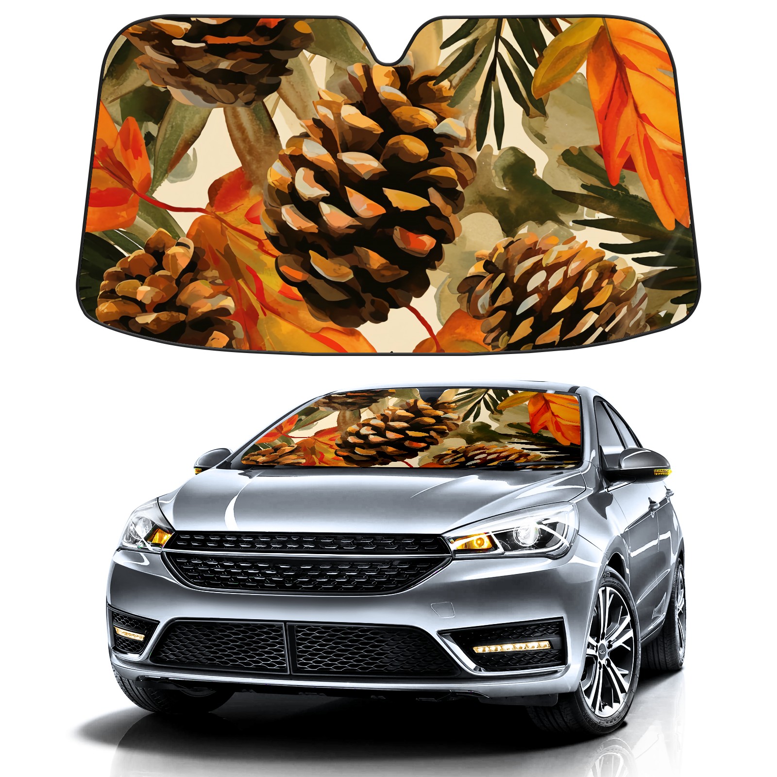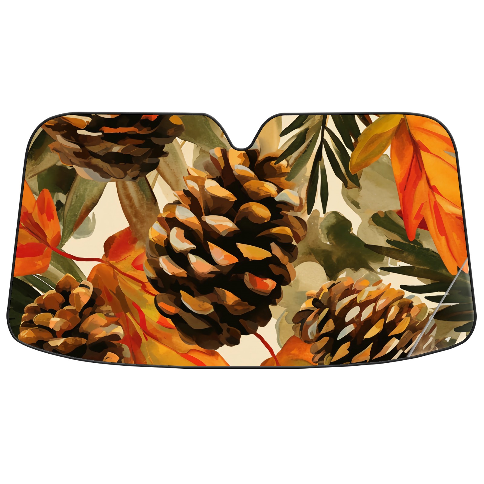 Car Windshield Sun Shade for Front Window Autumn Pinecone Foldable Vehicle Windshield Car Sun Visor Covers Automotive Window Protector Car Privacy Sun Blocker