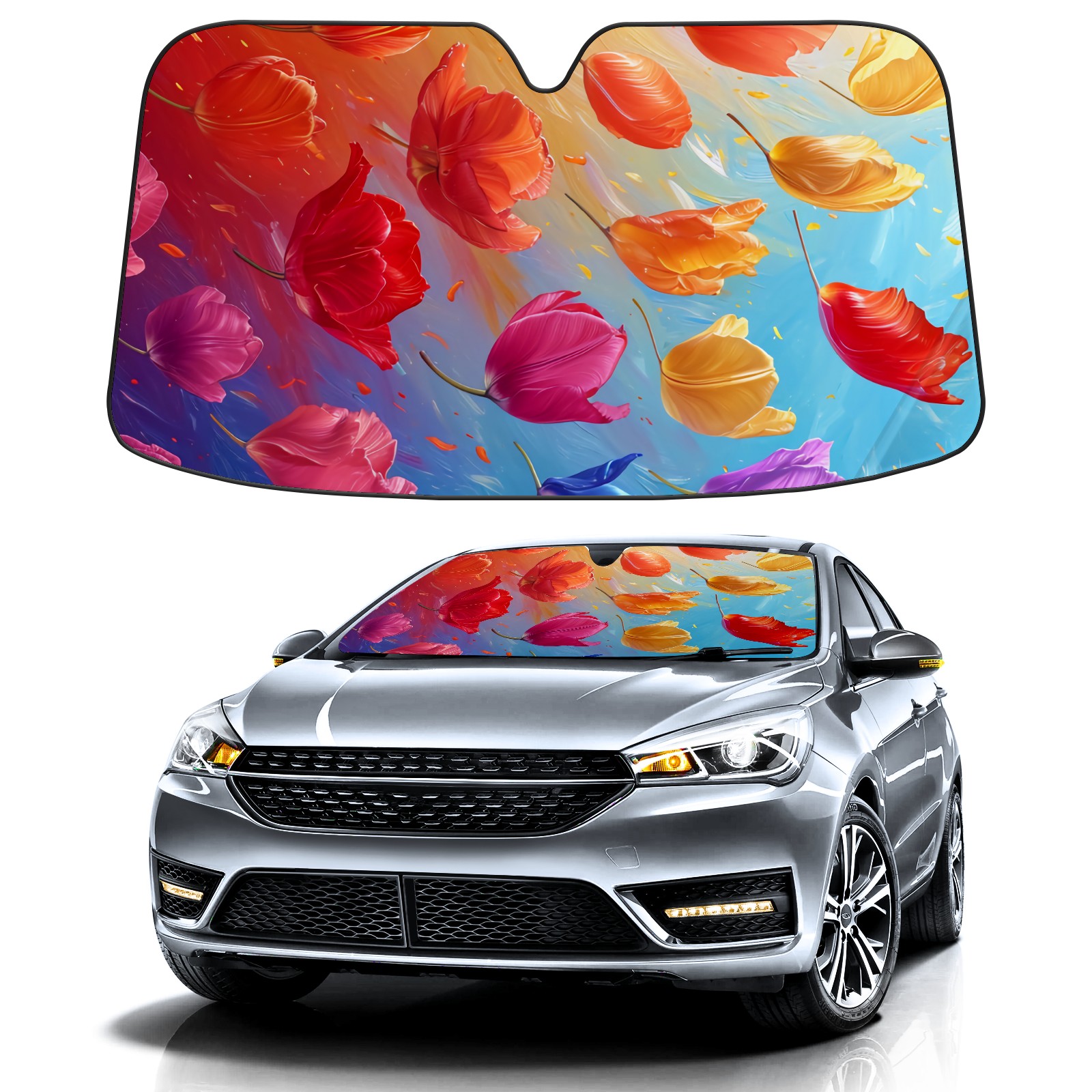Car Windshield Sun Shade for Front Window Tulip Bouquet B Foldable Vehicle Windshield Car Sun Visor Covers Automotive Window Protector Car Privacy Sun Blocker