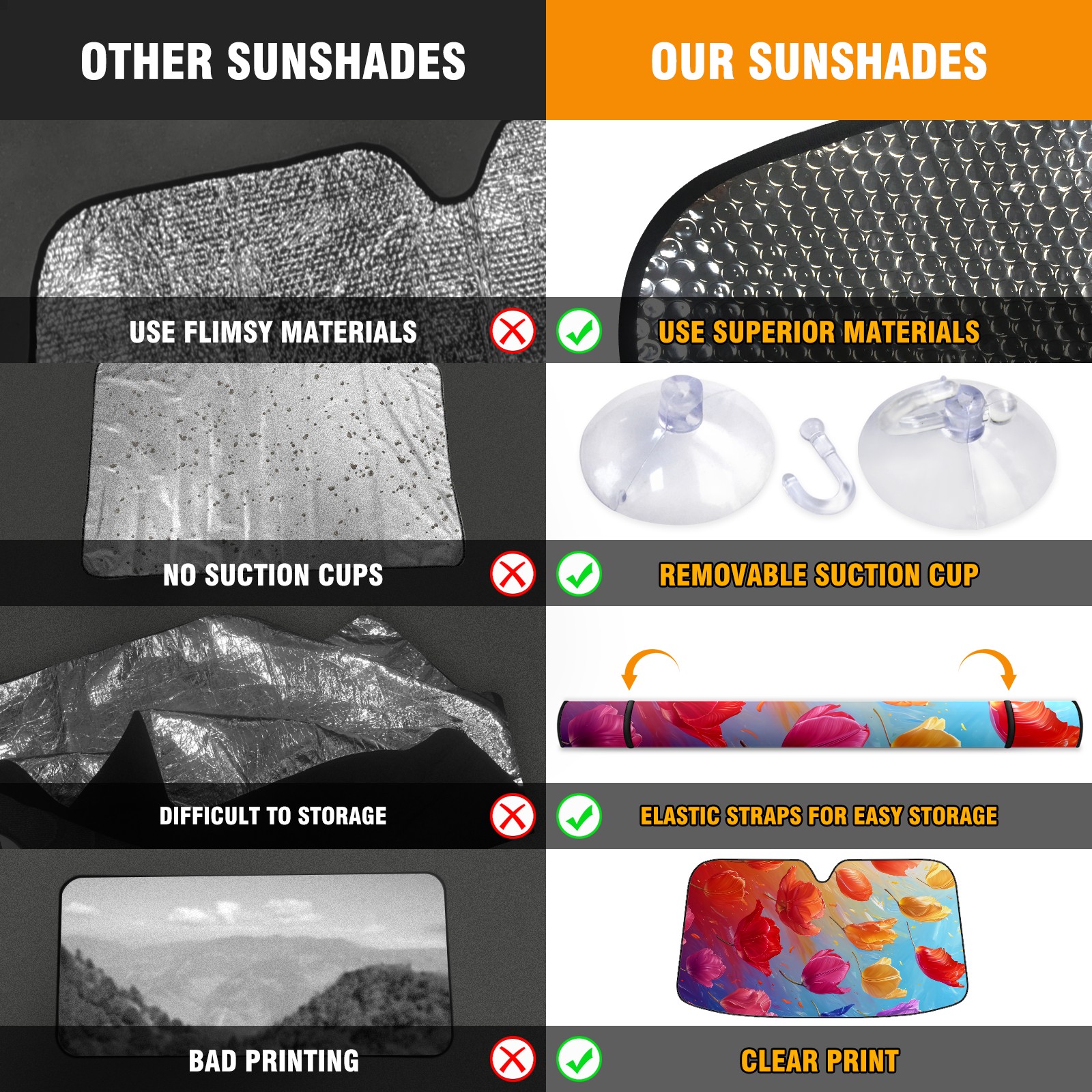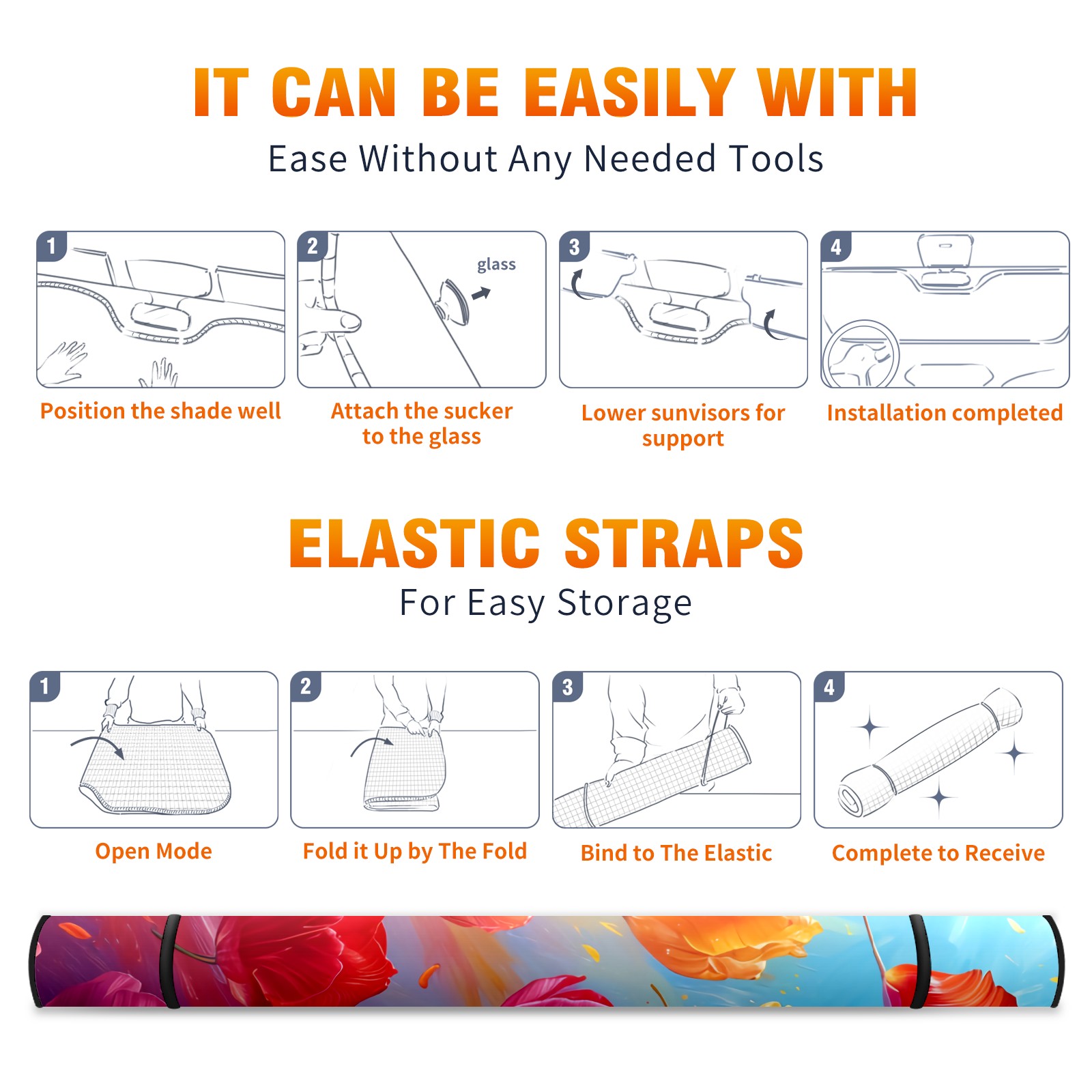 • </b>ZXIVGOQFR Foldable Premium Car Windshield Sunshade is your great solution to reduce your car’s interior temperature dramatically! This is definitely a must-have item for your summer travel! </b> <br> </b>Size: 63"L x 33.5"W </b> <br> </b>Blocking Uv Rays & Heat Insulation</b><br> Our vehicle sunshade provides effective UV, sun, and summer heat protection .Maintains dashboards by preventing fading and cracking <br> </b>Easy-To-Store Folding Design Makes Storage Convenient </b><br> ZXIVGOQFR car sunshades come with removable suction cups and elastic bands that you can install easily and quickly, and the removable suction cups will not leave any marks on your windows when removed. Within seconds, windshield visor can be installed and removed. When not in use,the front windshield can be easily and effectively placed on the door pocket or the dashboard, which is beautiful and does not take up space in the car.<br> <br> </b>PUT UP A 'PROTECTIVE UMBRELLA' FOR YOUR BELOVED CAR!</b>