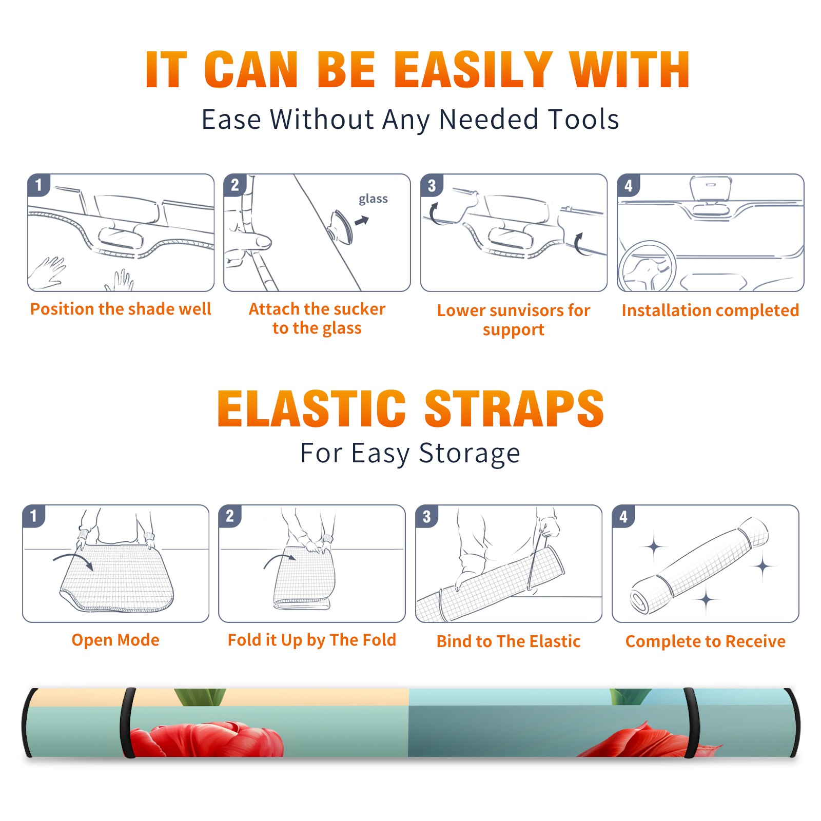 • </b>ZXIVGOQFR Foldable Premium Car Windshield Sunshade is your great solution to reduce your car’s interior temperature dramatically! This is definitely a must-have item for your summer travel! </b> <br> </b>Size: 63"L x 33.5"W </b> <br> </b>Blocking Uv Rays & Heat Insulation</b><br> Our vehicle sunshade provides effective UV, sun, and summer heat protection .Maintains dashboards by preventing fading and cracking <br> </b>Easy-To-Store Folding Design Makes Storage Convenient </b><br> ZXIVGOQFR car sunshades come with removable suction cups and elastic bands that you can install easily and quickly, and the removable suction cups will not leave any marks on your windows when removed. Within seconds, windshield visor can be installed and removed. When not in use,the front windshield can be easily and effectively placed on the door pocket or the dashboard, which is beautiful and does not take up space in the car.<br> <br> </b>PUT UP A 'PROTECTIVE UMBRELLA' FOR YOUR BELOVED CAR!</b>