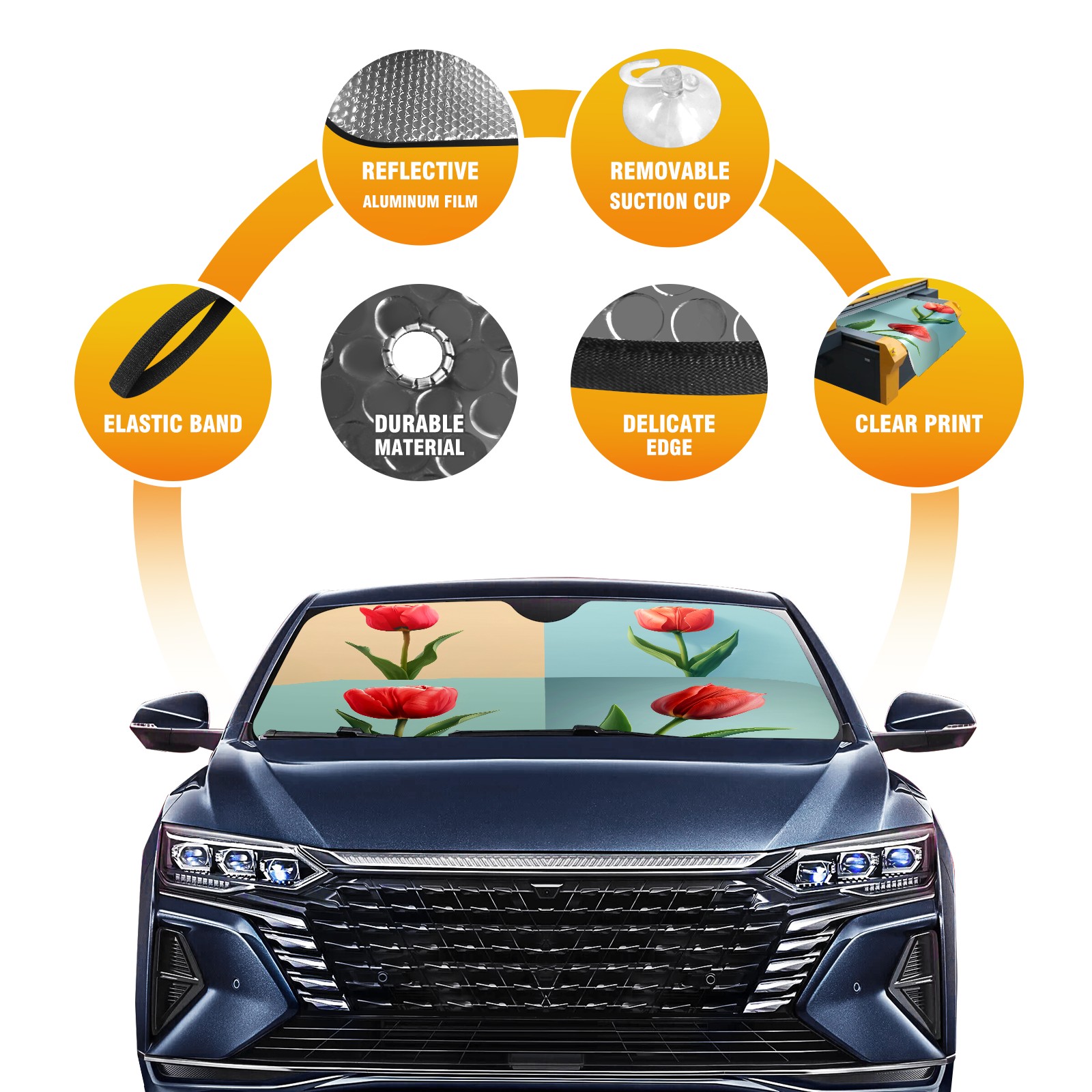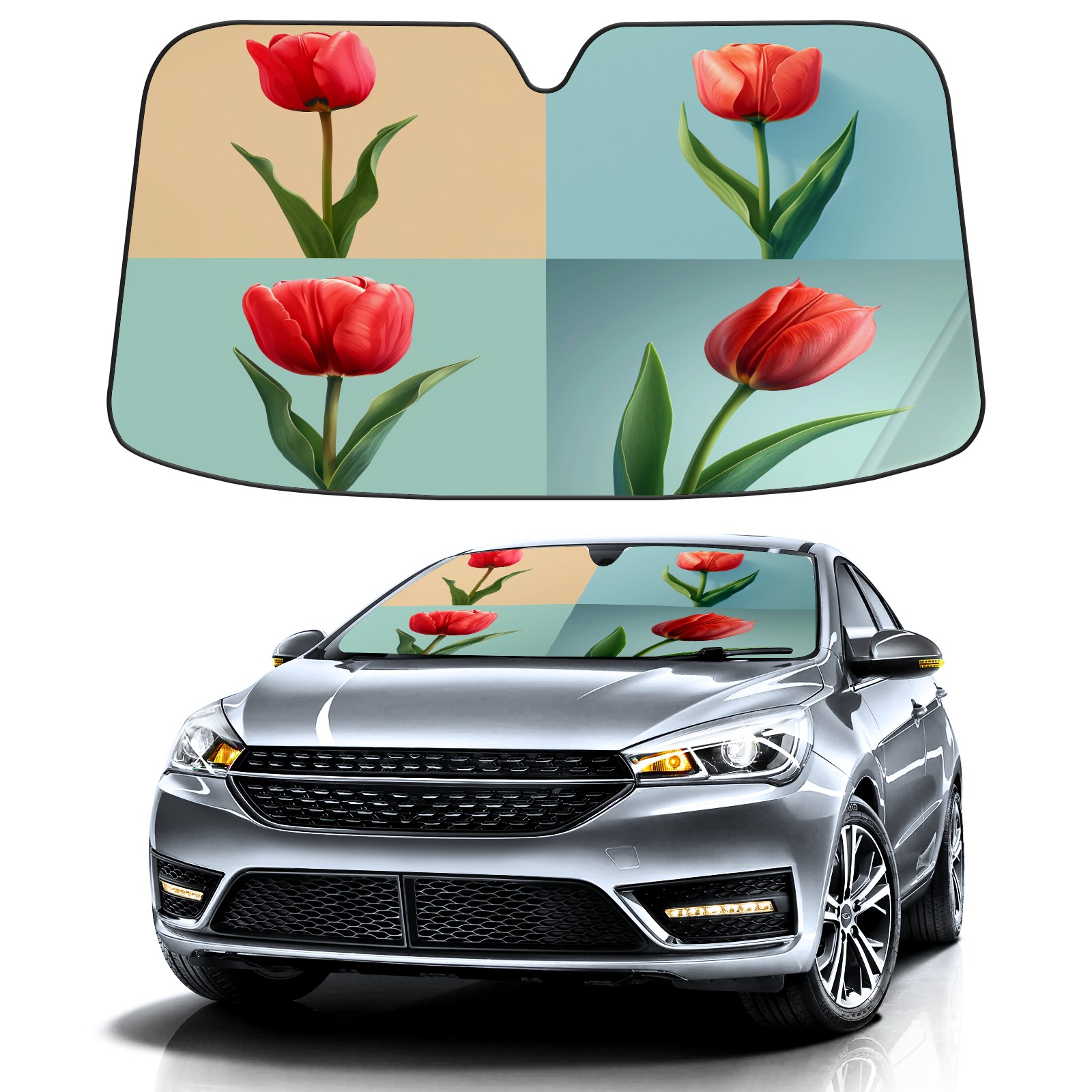 Car Windshield Sun Shade for Front Window Tulip Tree B Foldable Vehicle Windshield Car Sun Visor Covers Automotive Window Protector Car Privacy Sun Blocker