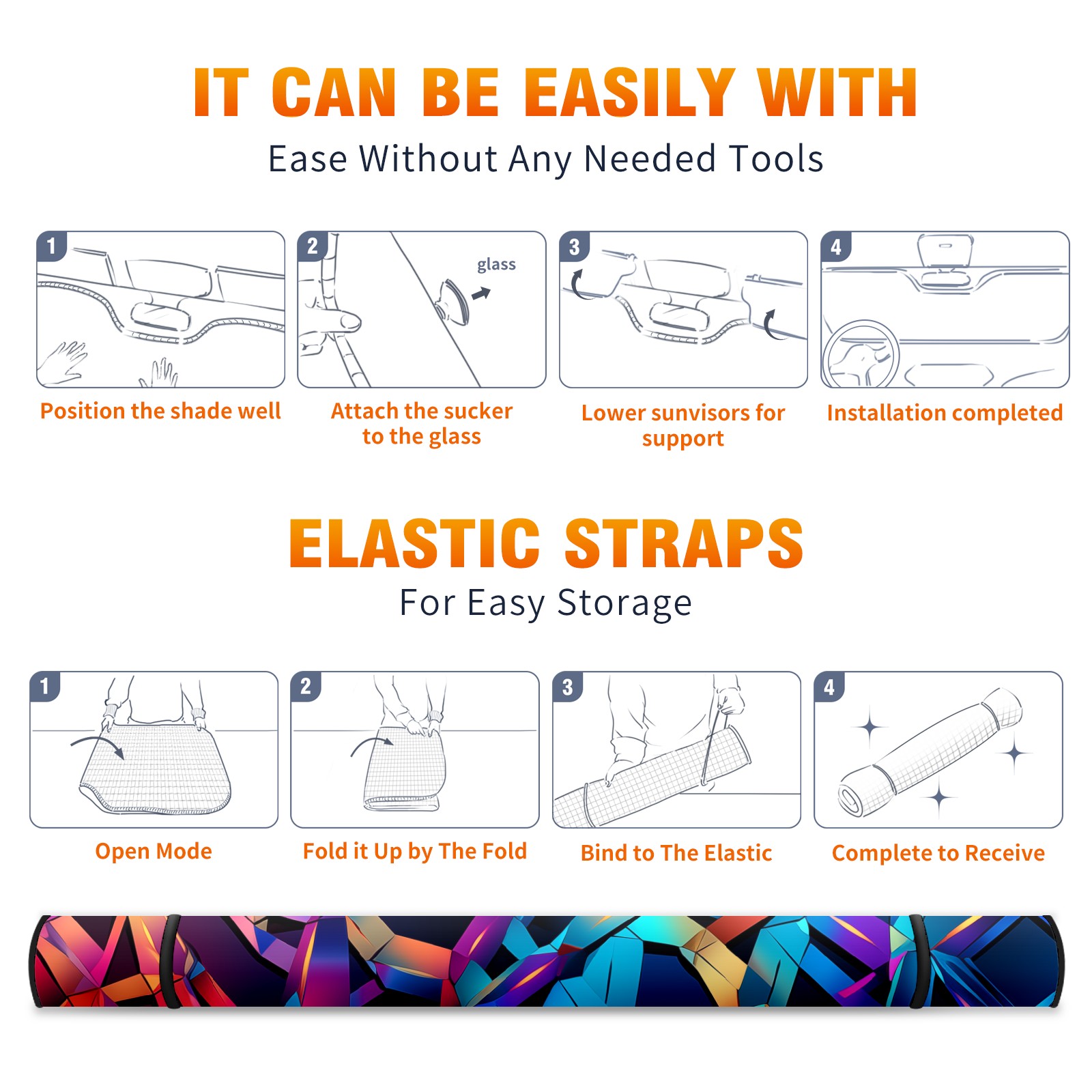 • </b>ZXIVGOQFR Foldable Premium Car Windshield Sunshade is your great solution to reduce your car’s interior temperature dramatically! This is definitely a must-have item for your summer travel! </b> <br> </b>Size: 63"L x 33.5"W </b> <br> </b>Blocking Uv Rays & Heat Insulation</b><br> Our vehicle sunshade provides effective UV, sun, and summer heat protection .Maintains dashboards by preventing fading and cracking <br> </b>Easy-To-Store Folding Design Makes Storage Convenient </b><br> ZXIVGOQFR car sunshades come with removable suction cups and elastic bands that you can install easily and quickly, and the removable suction cups will not leave any marks on your windows when removed. Within seconds, windshield visor can be installed and removed. When not in use,the front windshield can be easily and effectively placed on the door pocket or the dashboard, which is beautiful and does not take up space in the car.<br> <br> </b>PUT UP A 'PROTECTIVE UMBRELLA' FOR YOUR BELOVED CAR!</b>